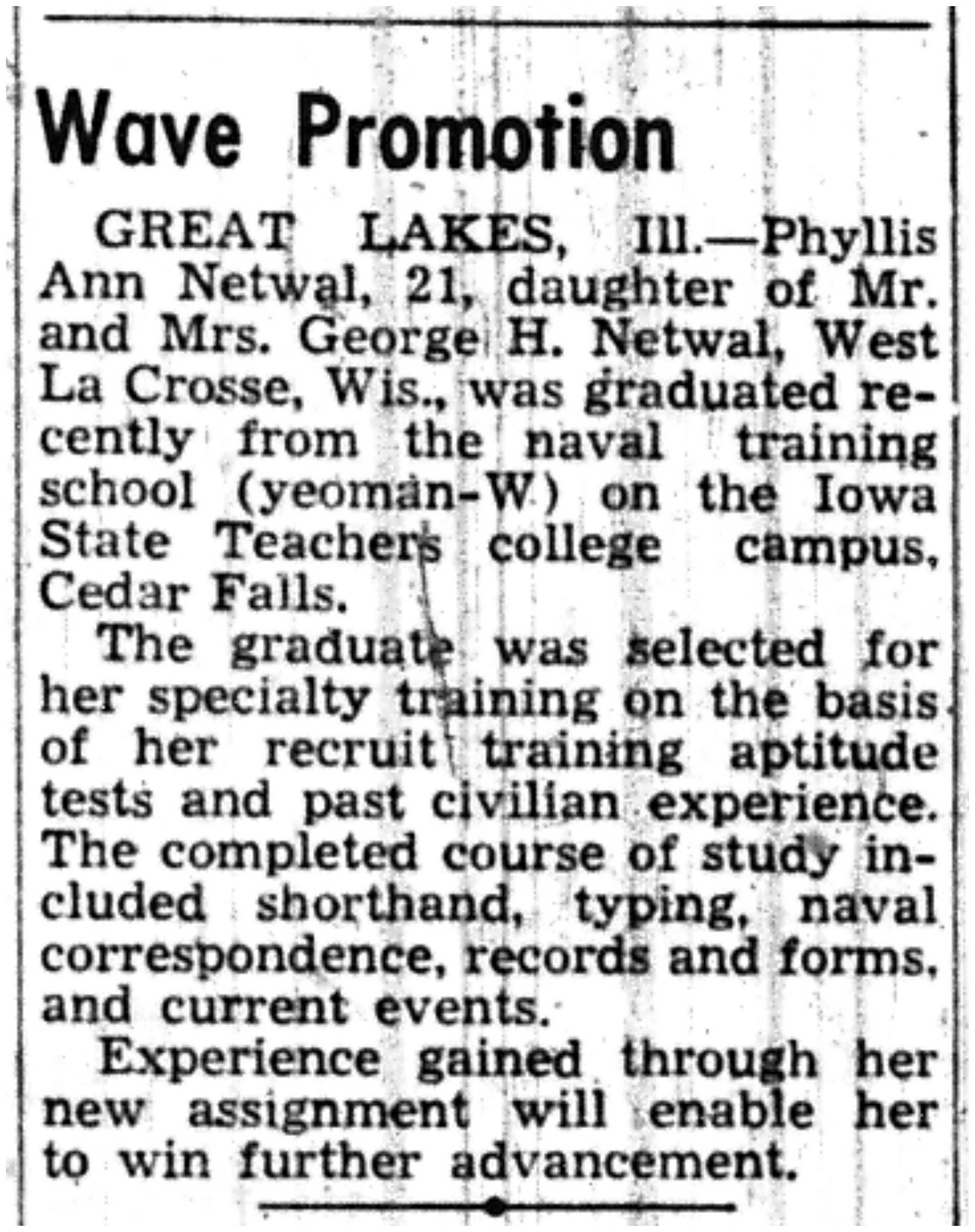 | 1945-3-25 | La Crosse Tribune p11 | |