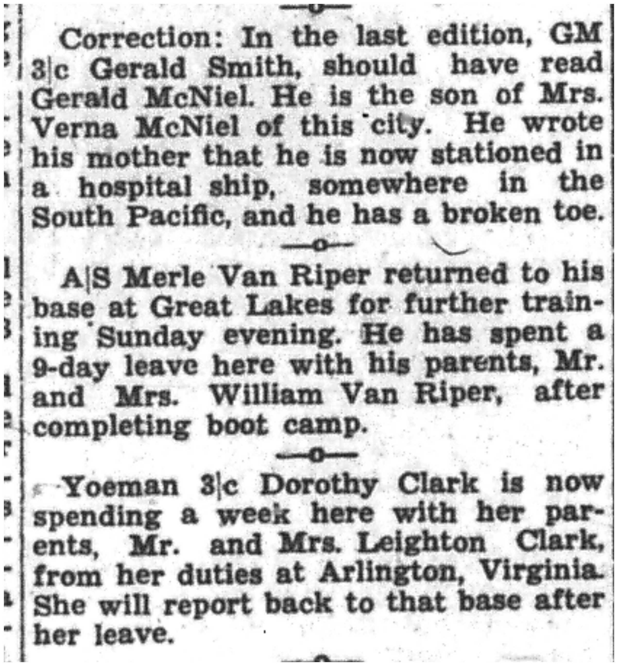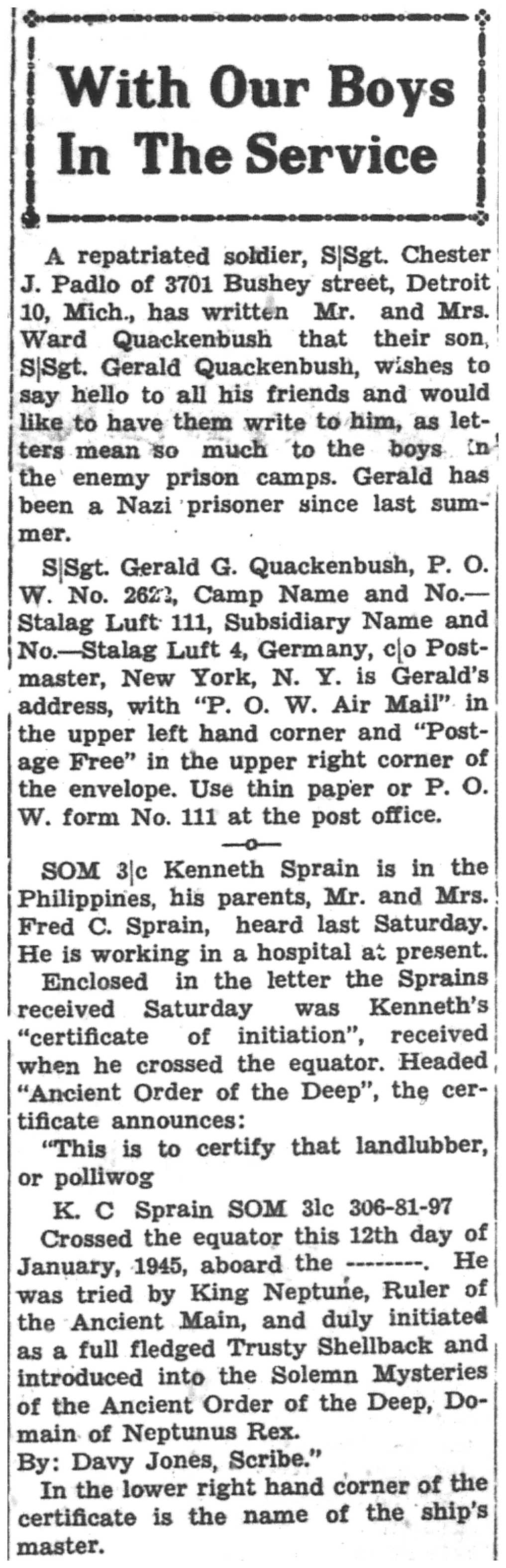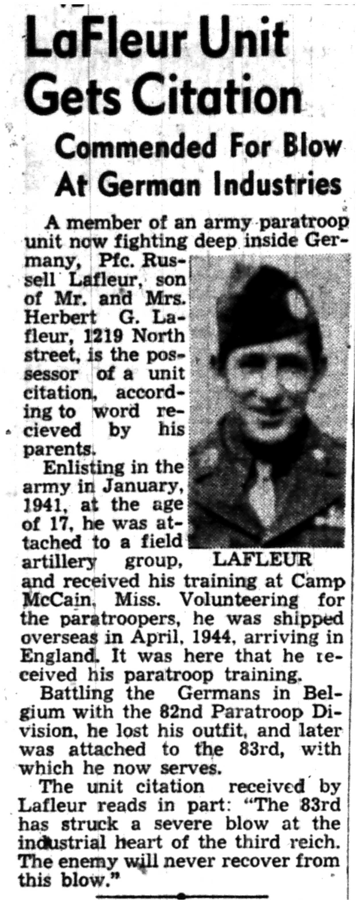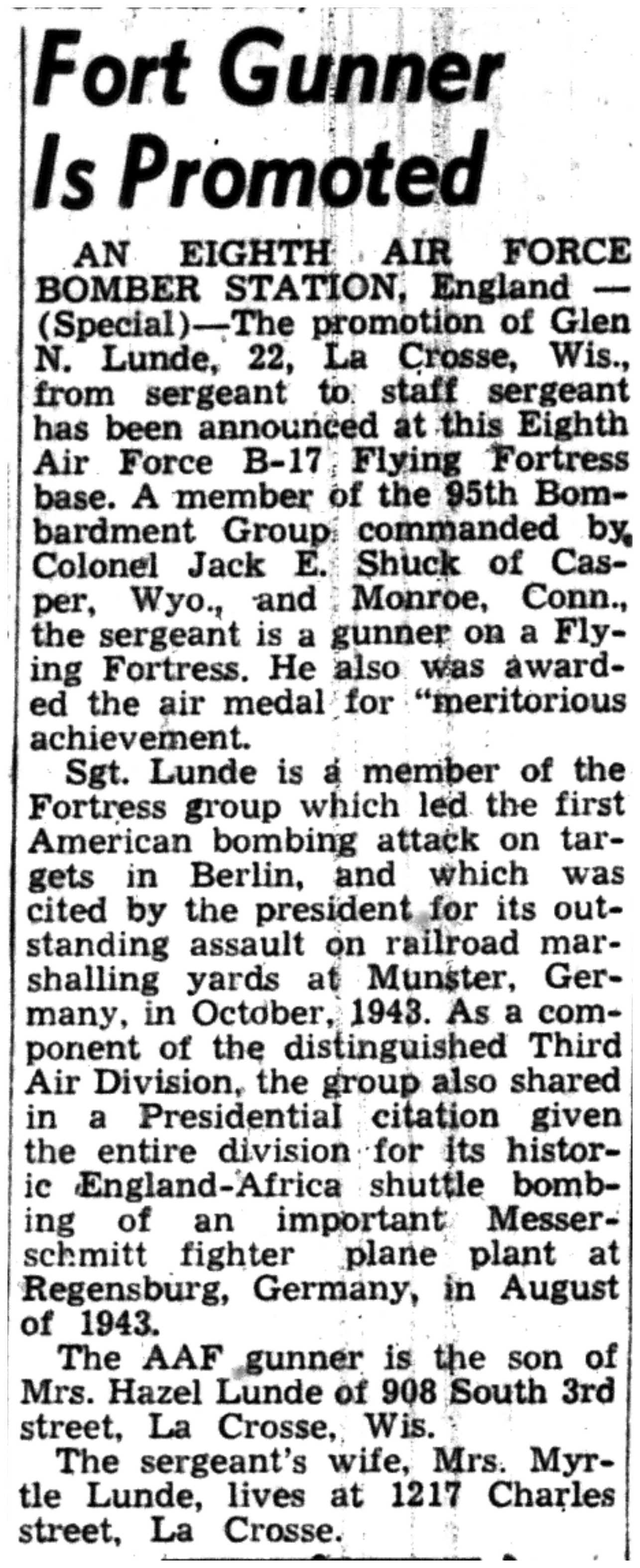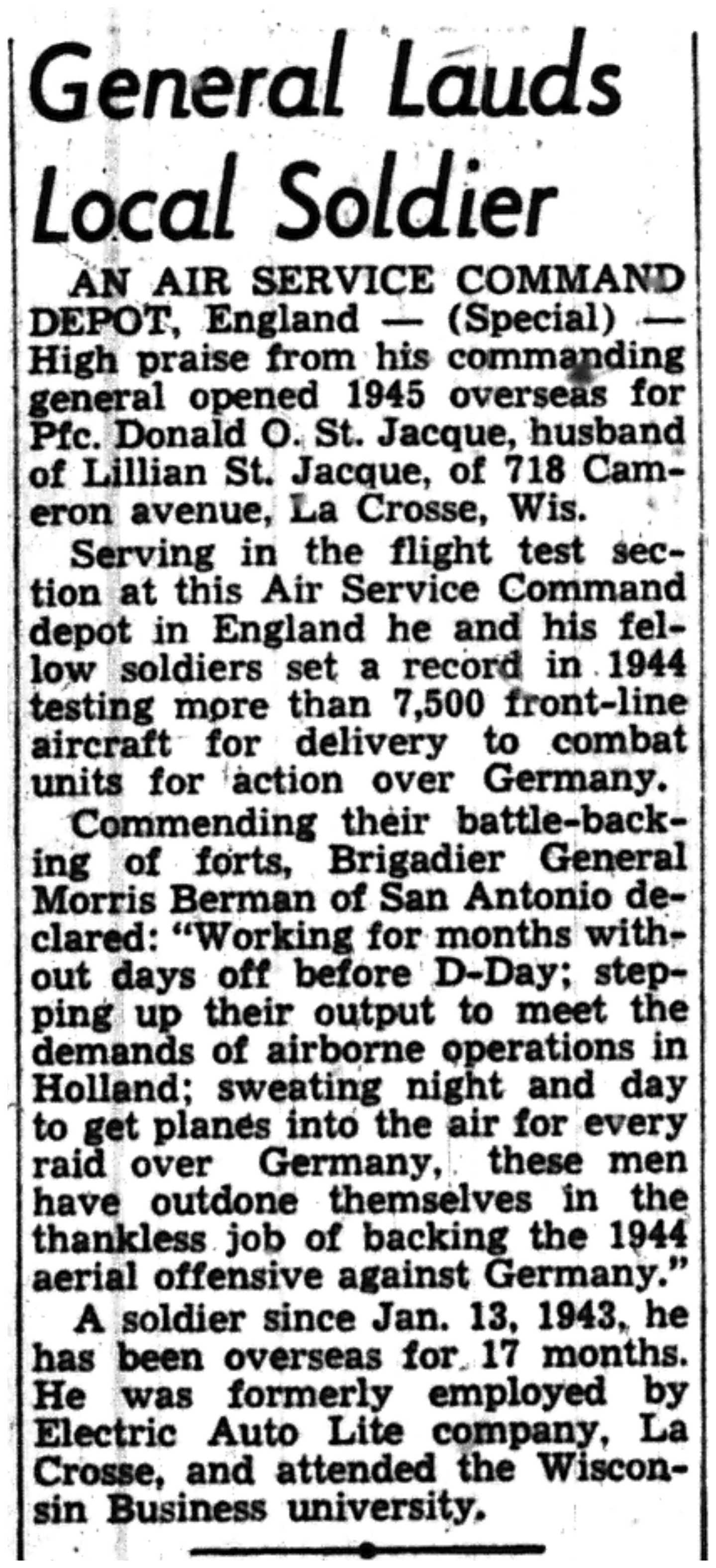 | 1945-3-7 | La Crosse Tribune p10 | |