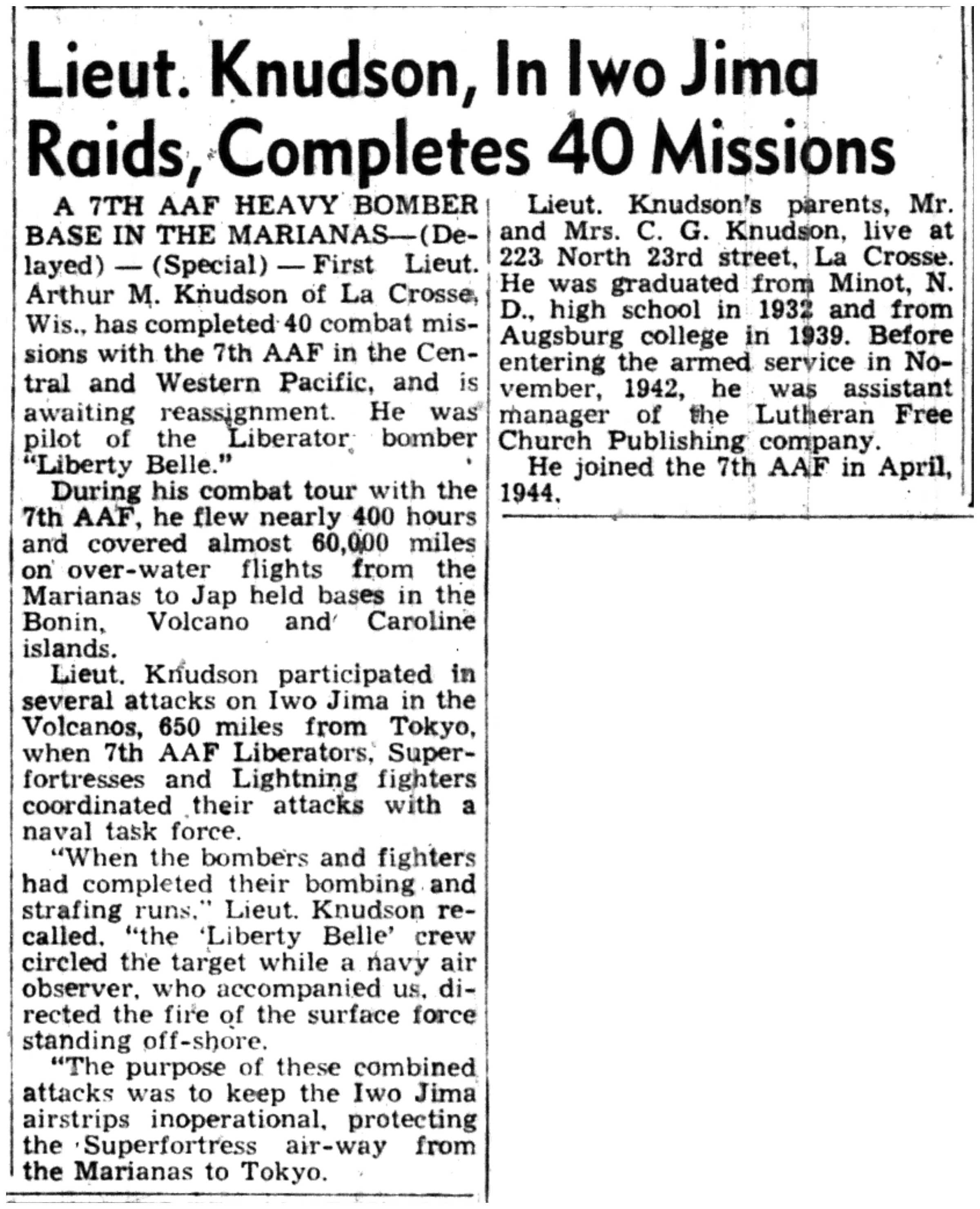 | 1945-3-7 | La Crosse Tribune p7 | |