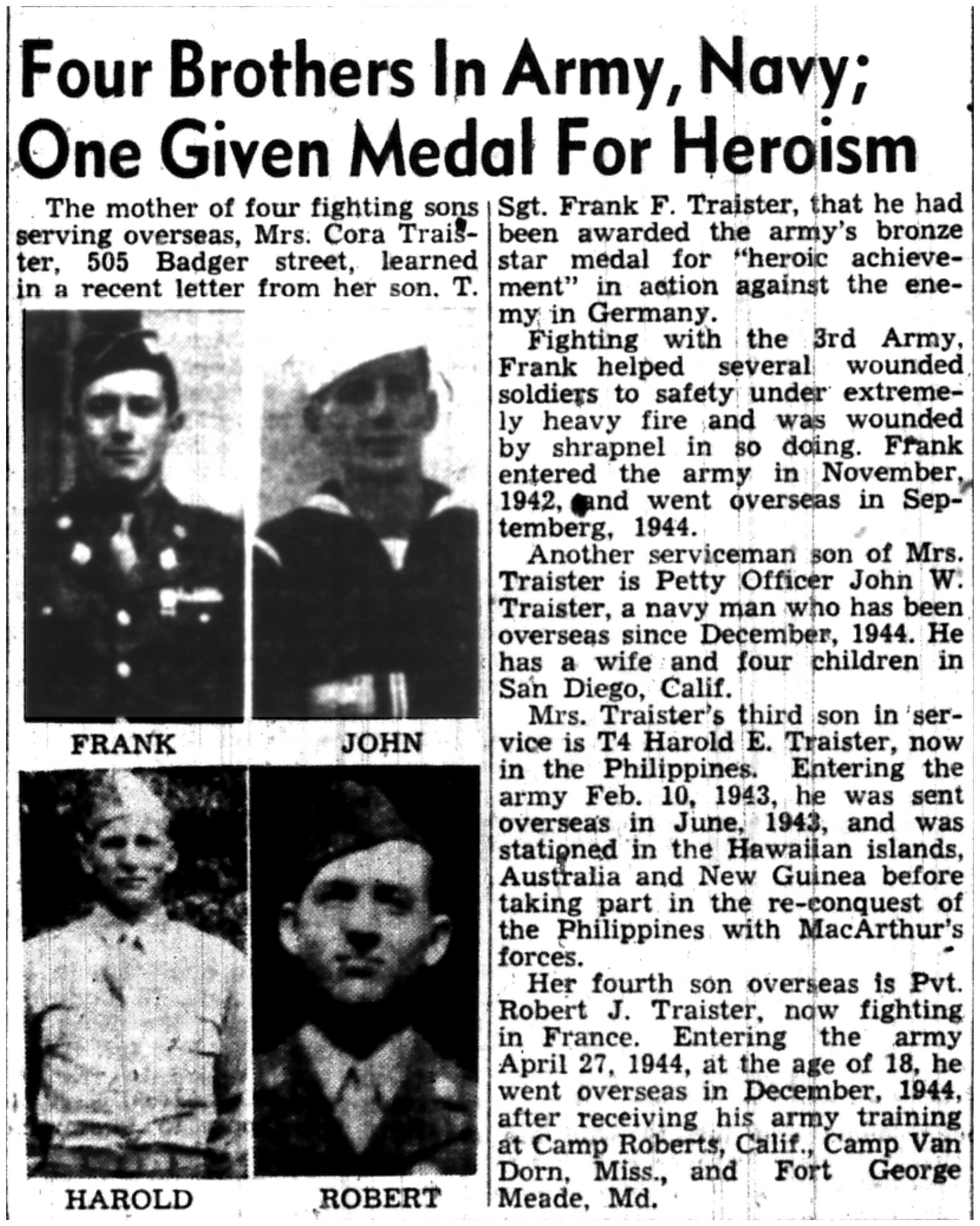 Frank Traister; John Traister; Harold Traister; Robert Traister FEATURE STORY - Brothers in Arms |