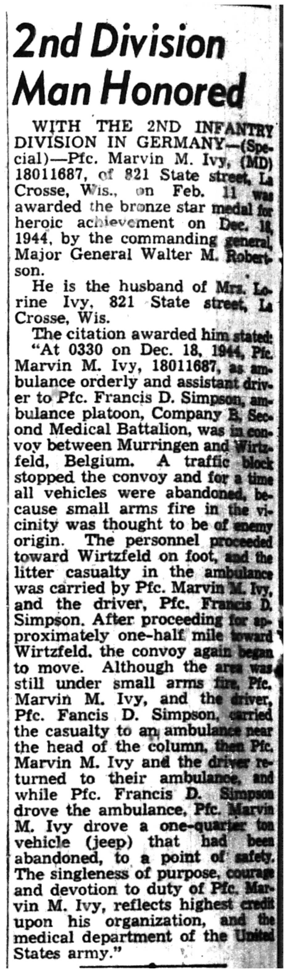 | 1945-3-22 | La Crosse Tribune p18 | |