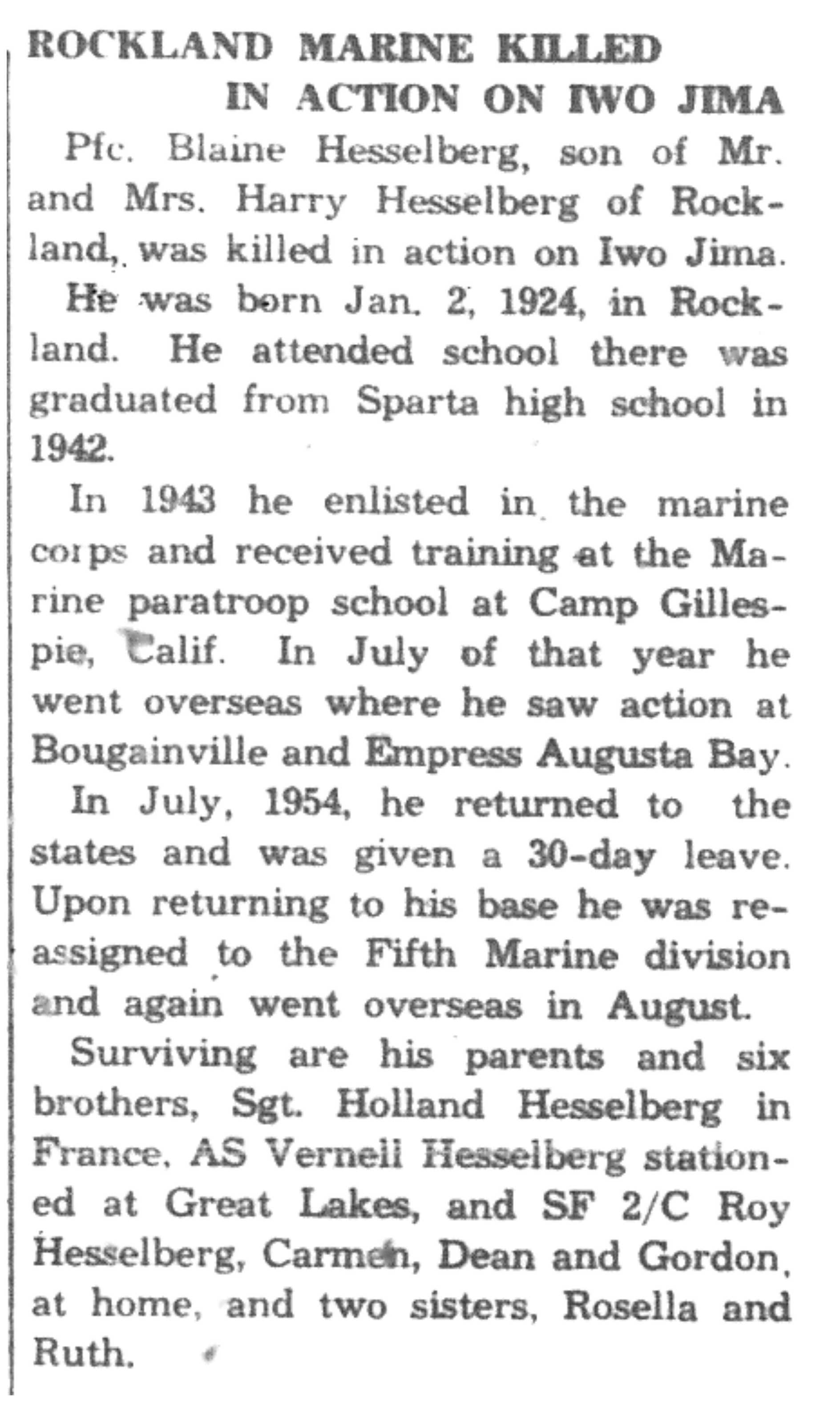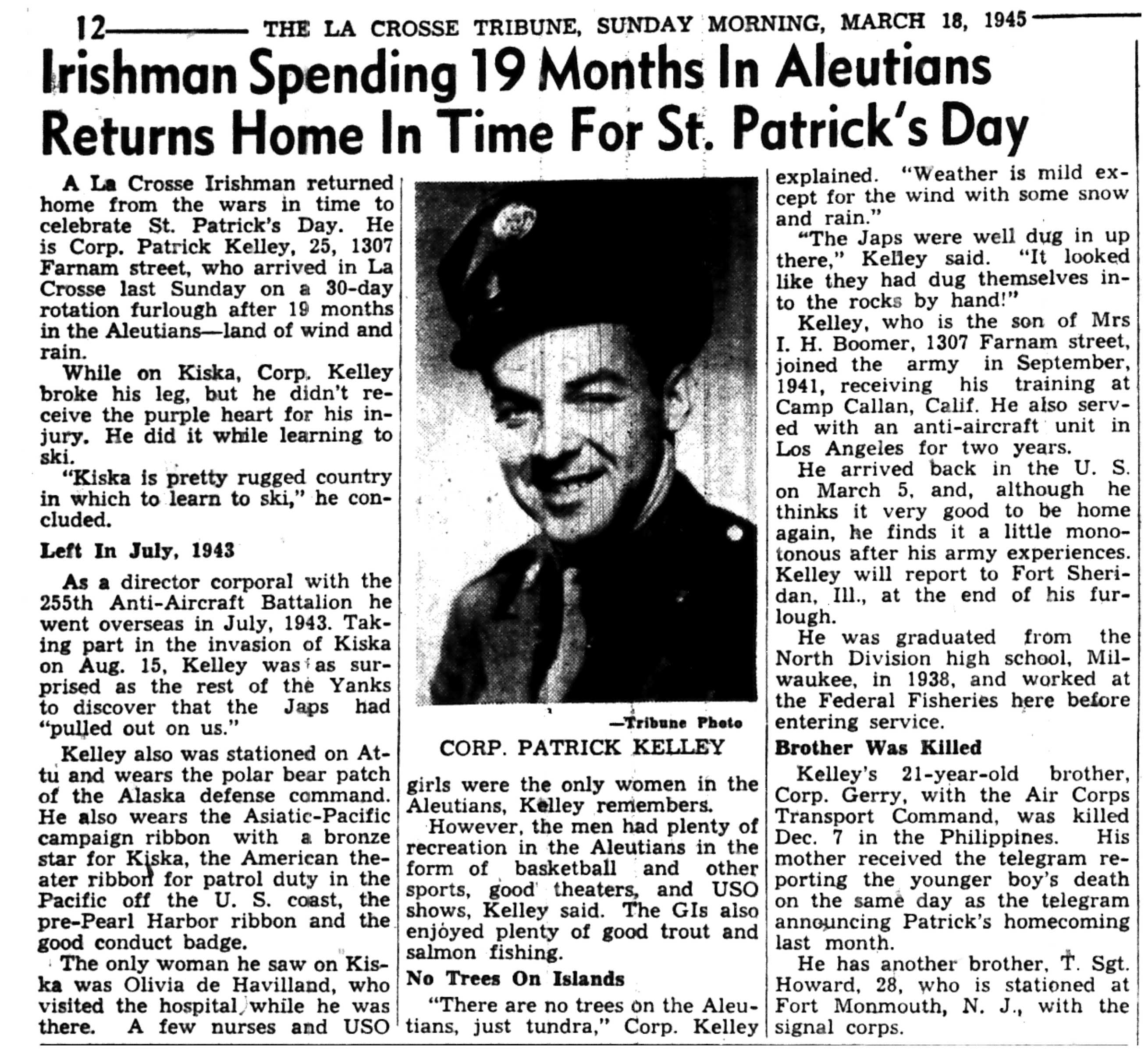 | 1945-3-5 | La Crosse Tribune p2 | |