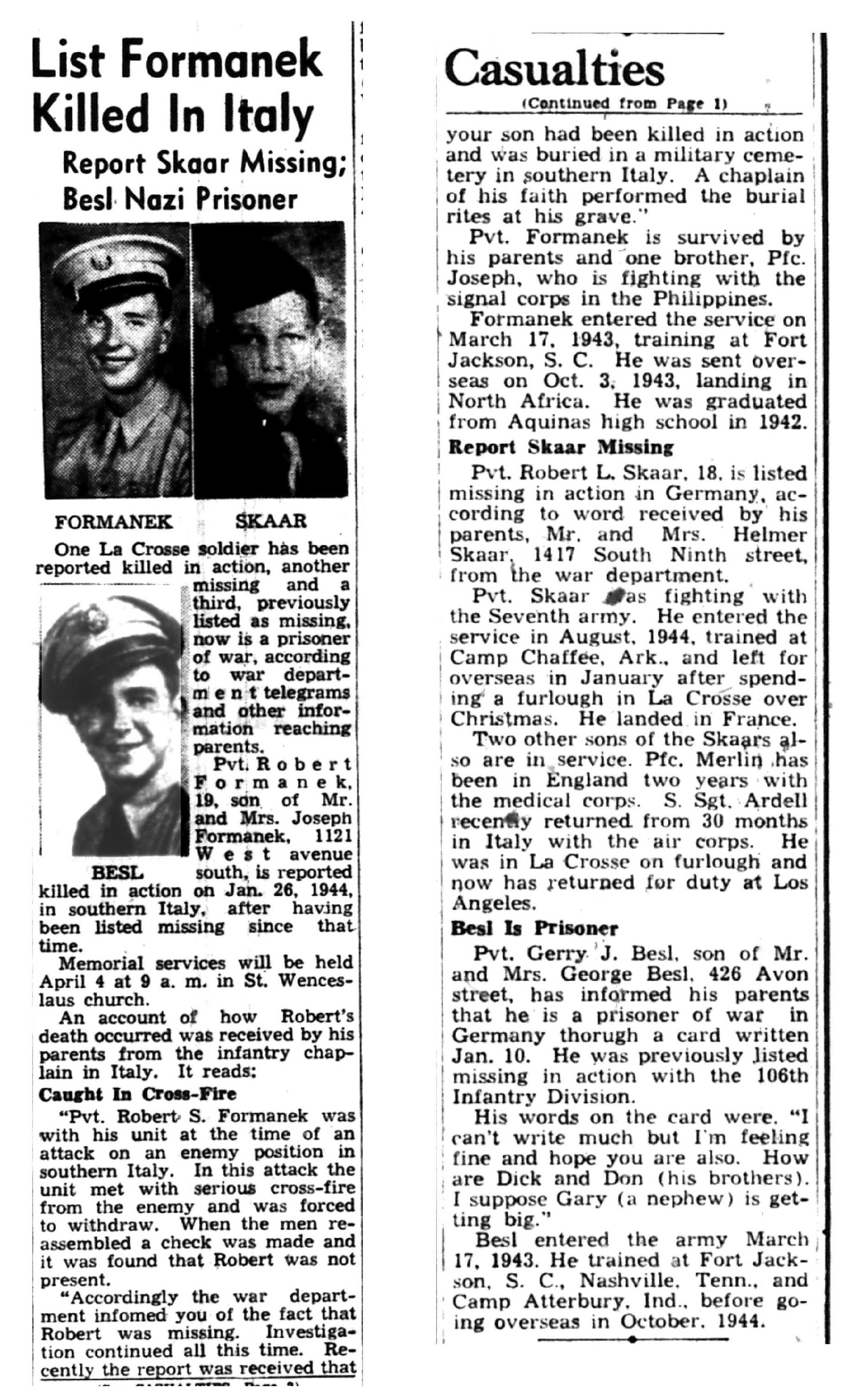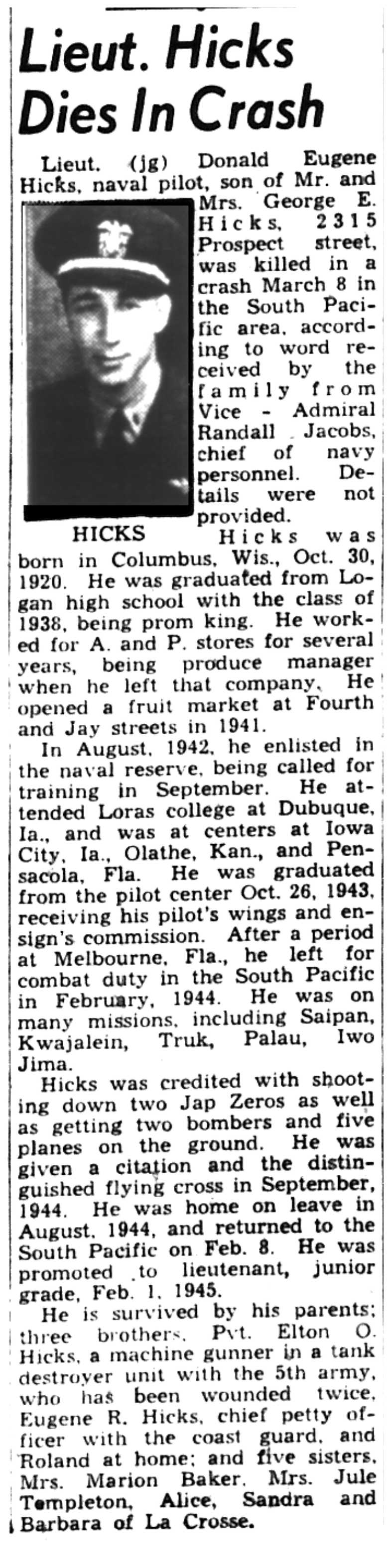 | 1945-3-31 | La Crosse Tribune p6 |