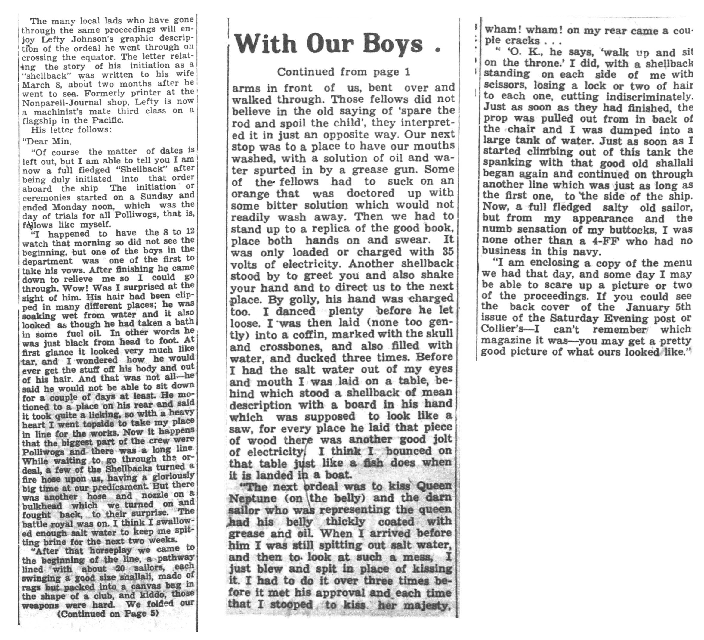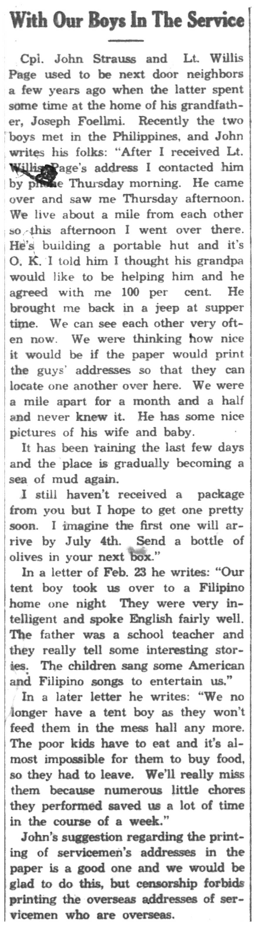 | 1945-3-22 | Non-Pareil Journal p4 | |
