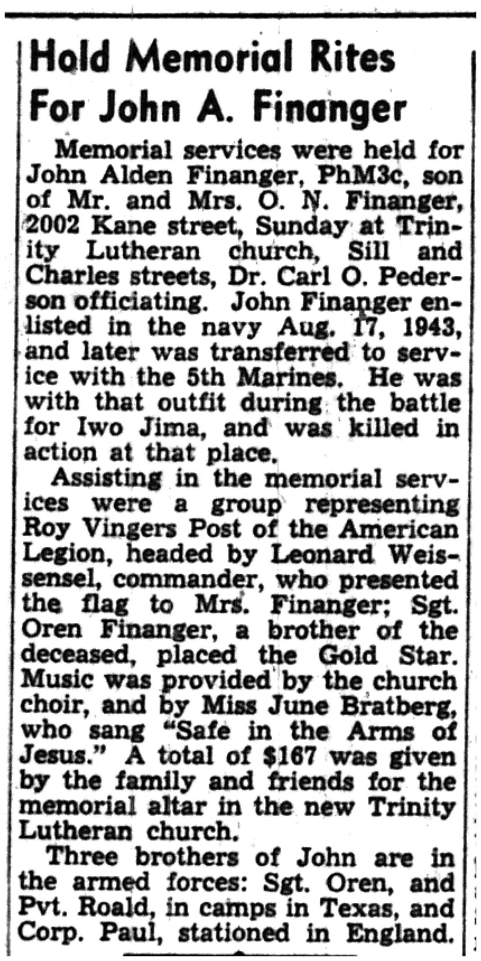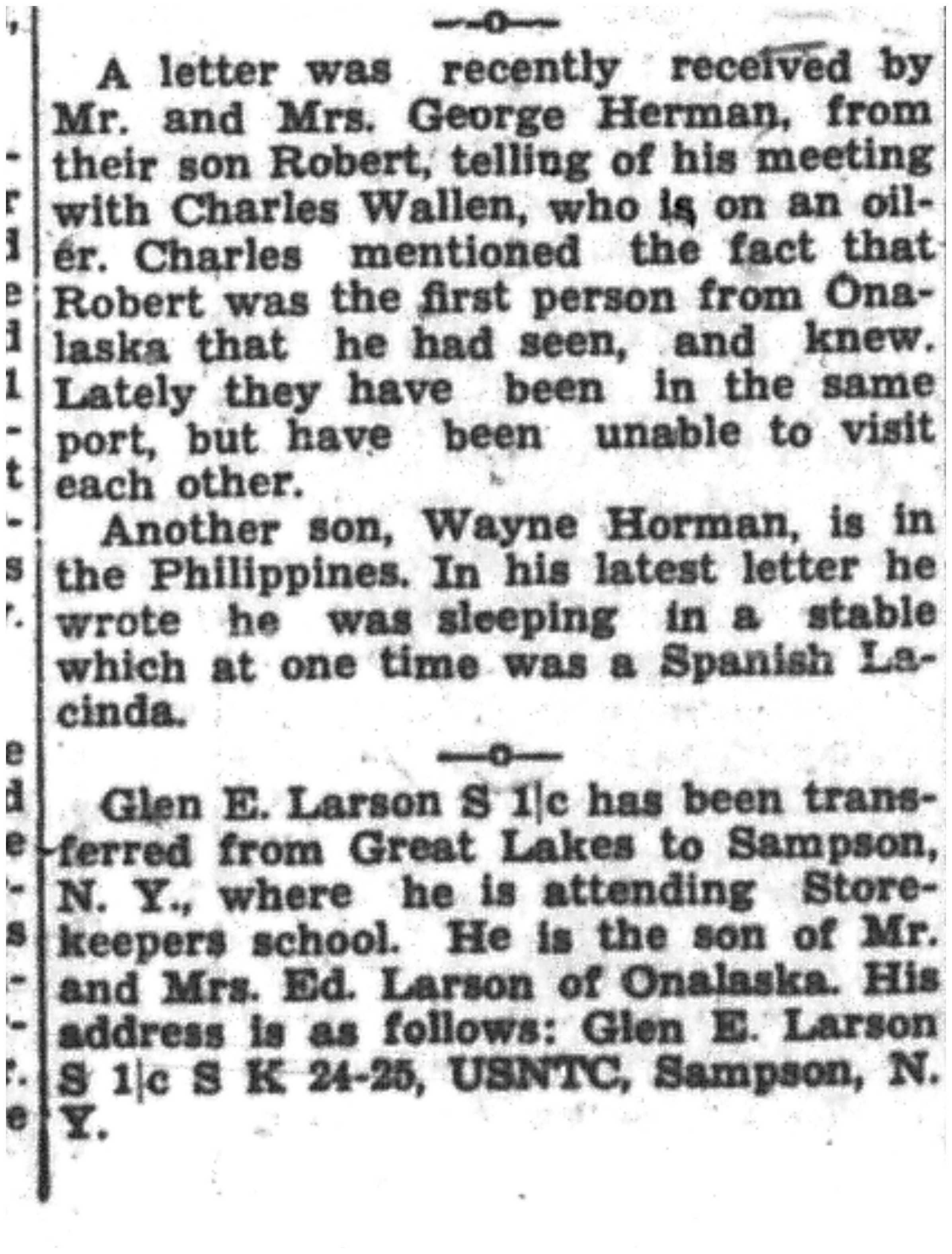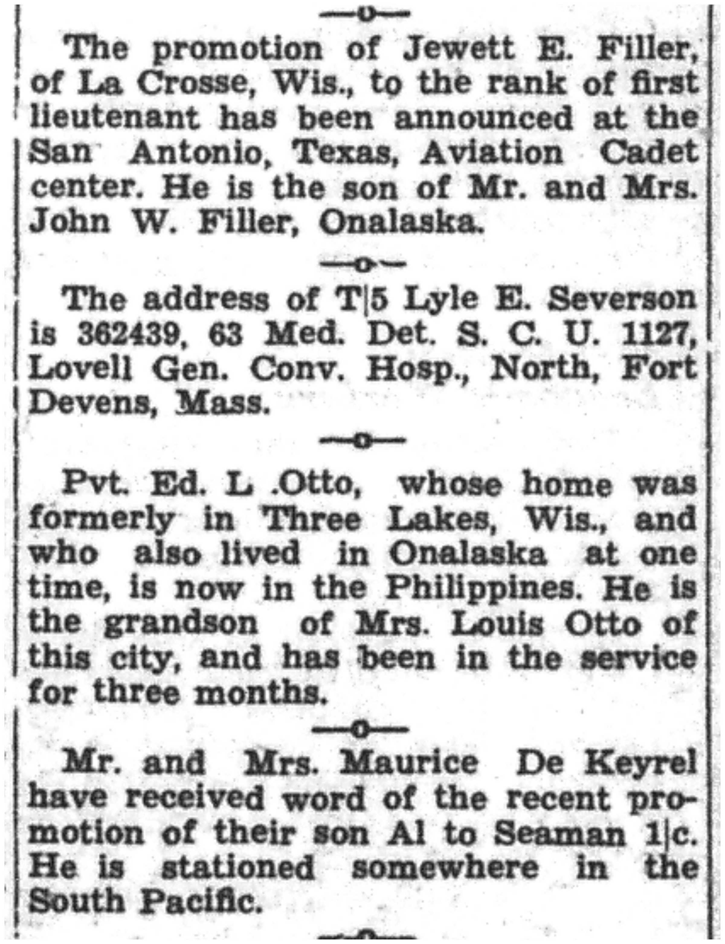 | 1945-3-30 | La Crosse Tribune p4 | |