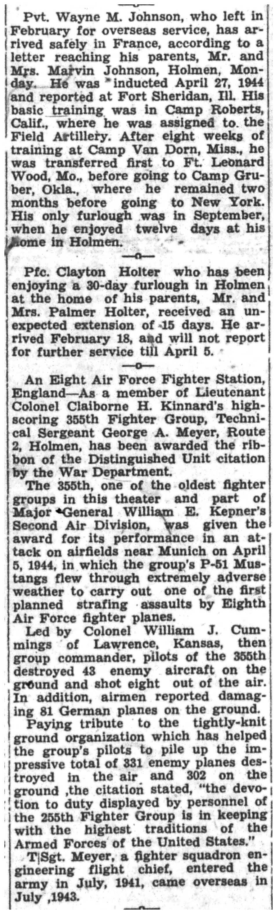 | 1945-3-7 | La Crosse Tribune p4 | |