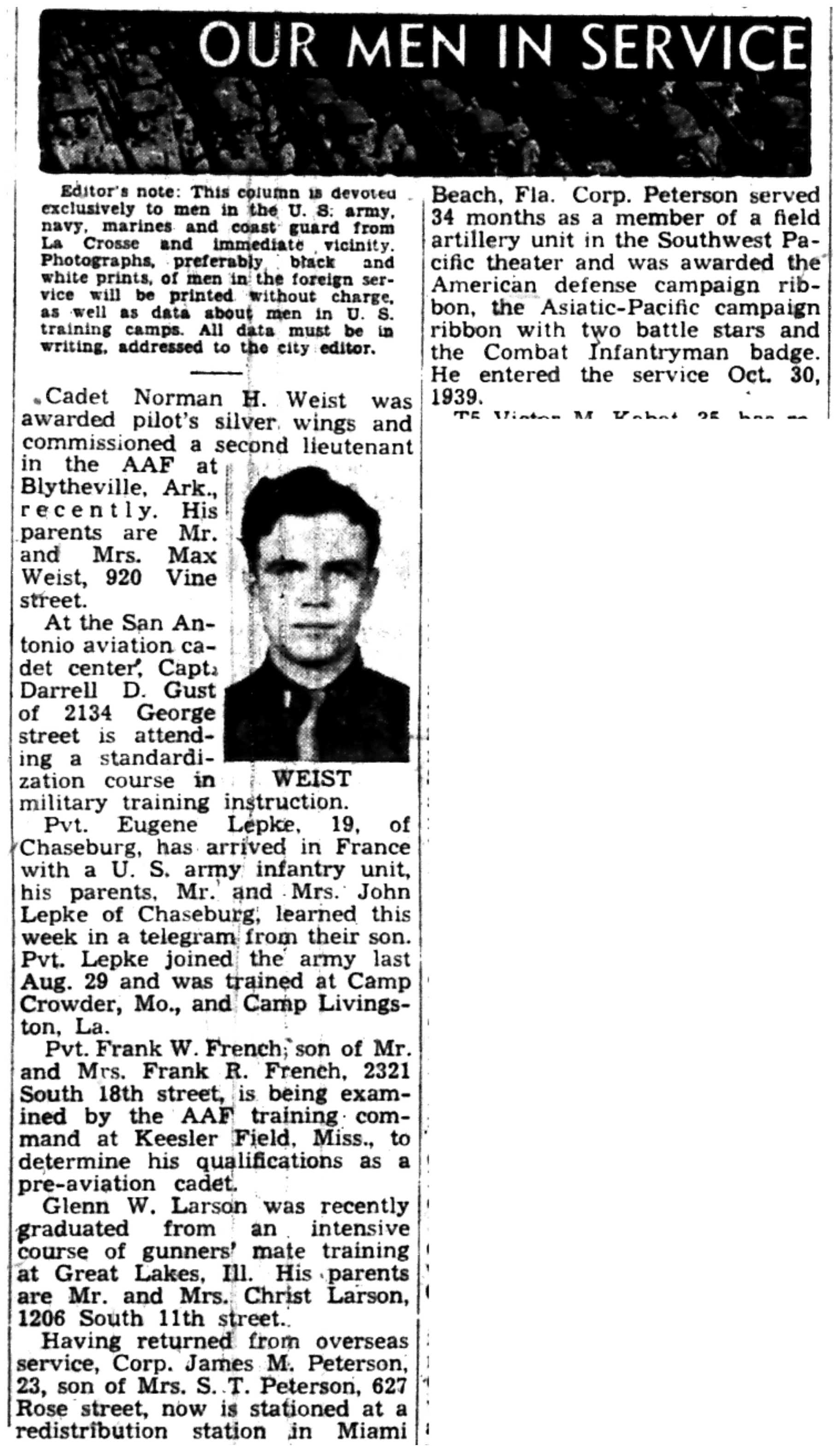 | 1945-3-7 | La Crosse Tribune p4 |