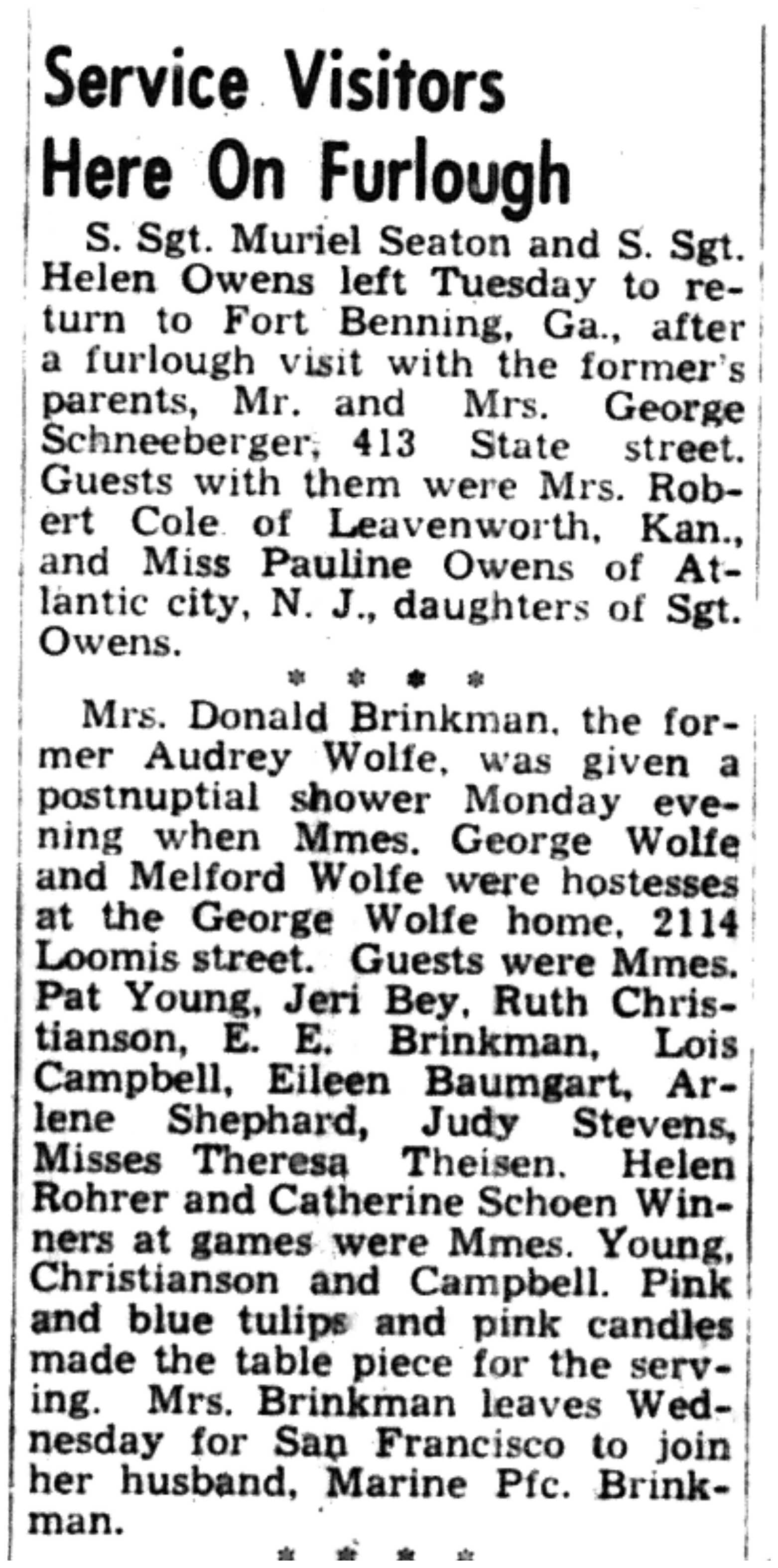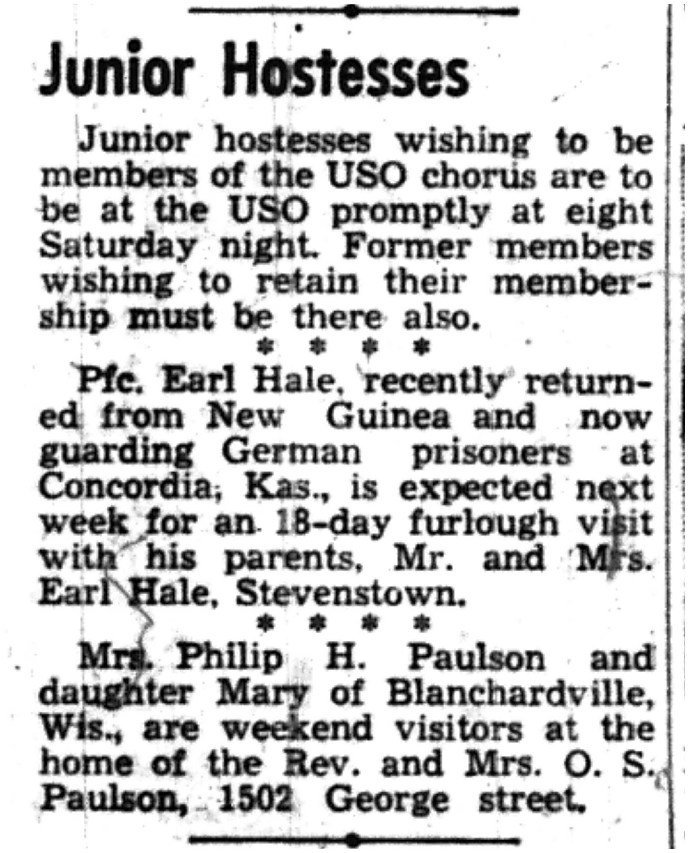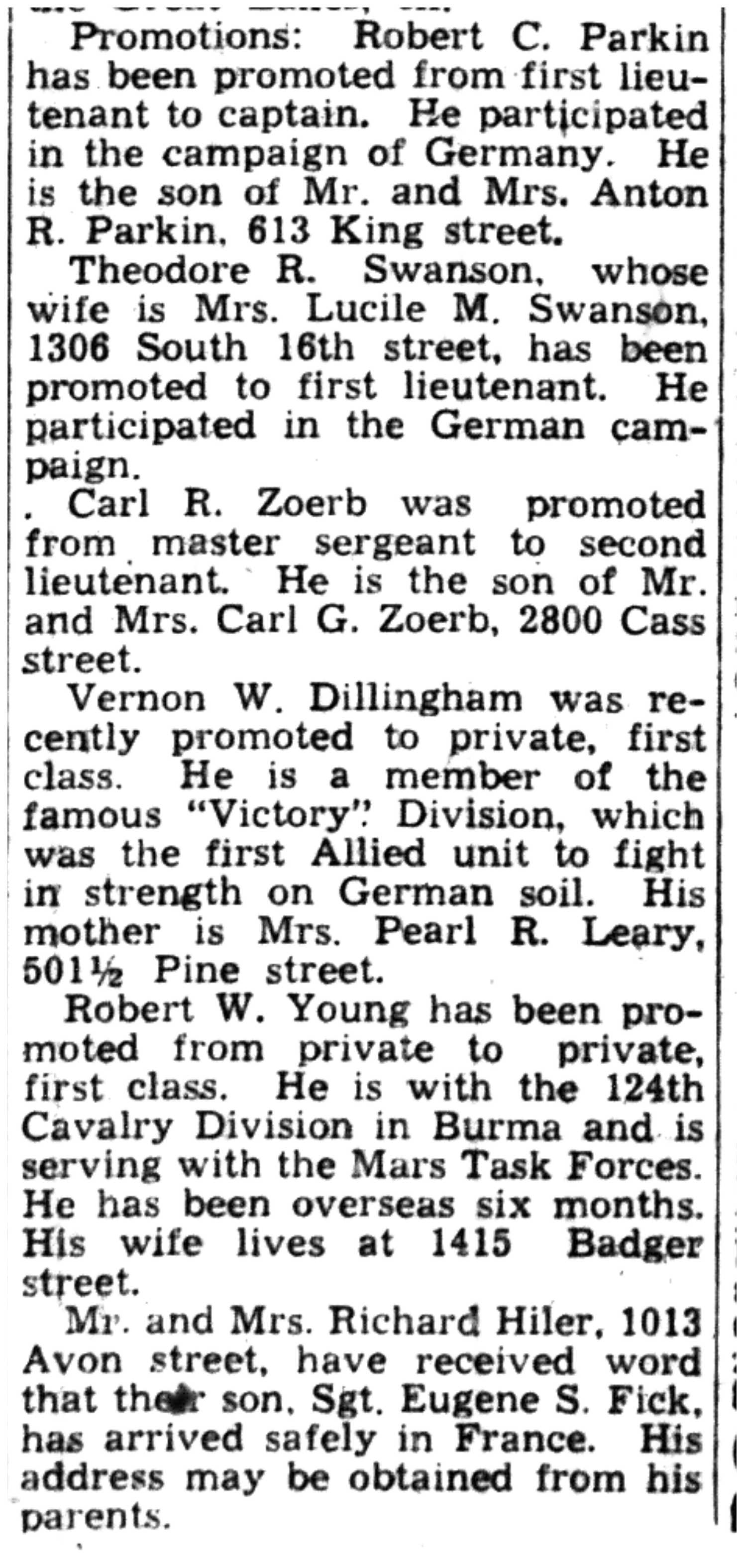 | 1945-3-27 | La Crosse Tribune p10 | |