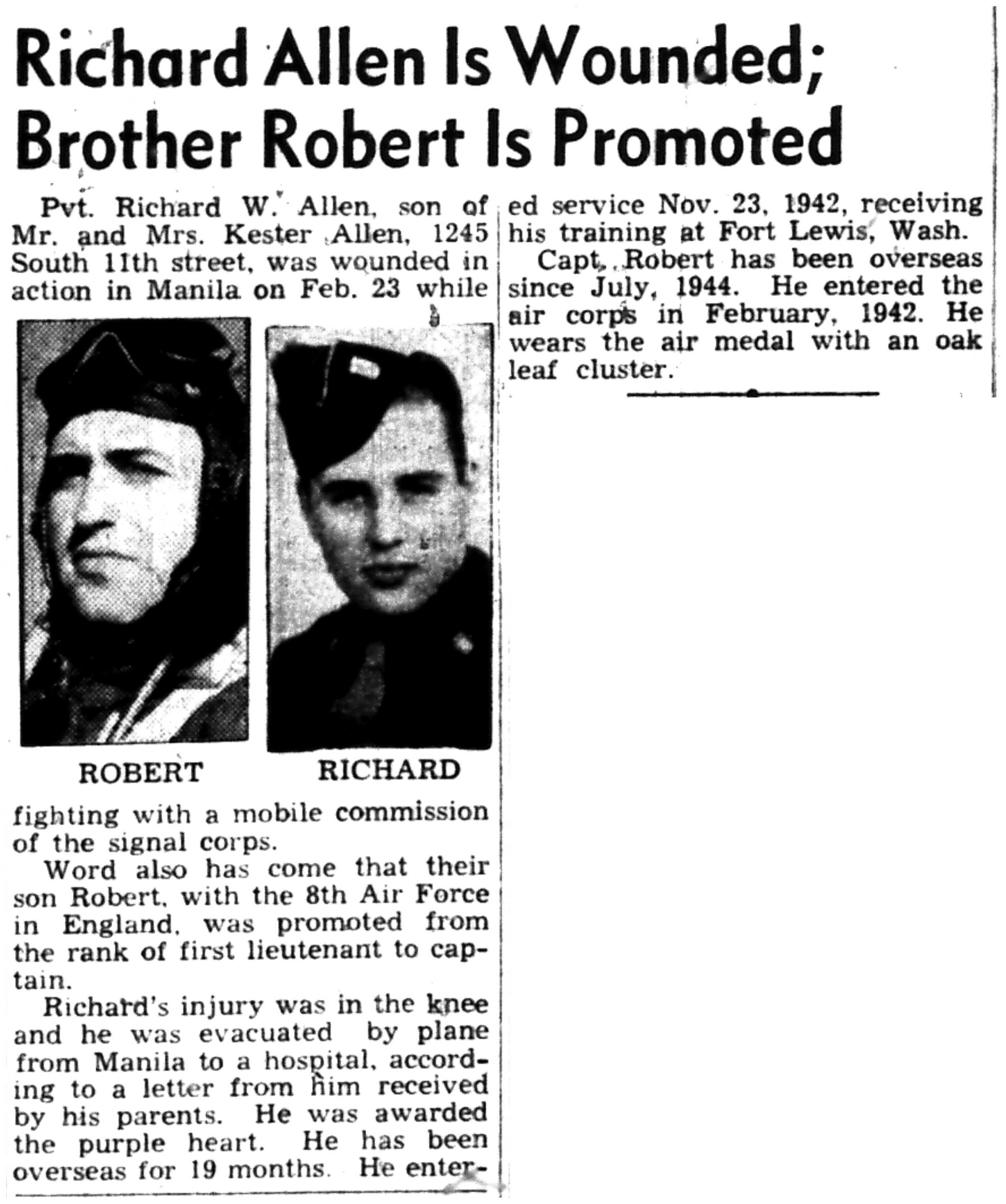 | 1945-3-8 | Non-Pareil Journal p2 | |