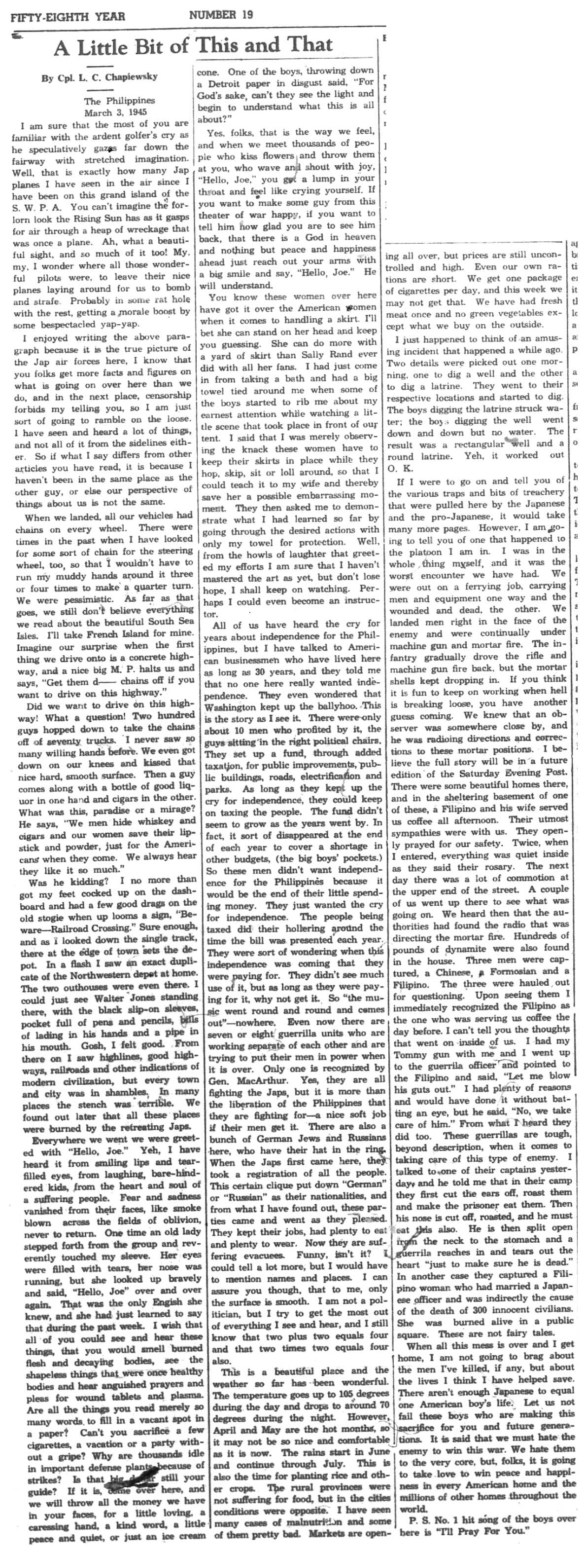 | 1945-3-19 | La Crosse Tribune p10 | |