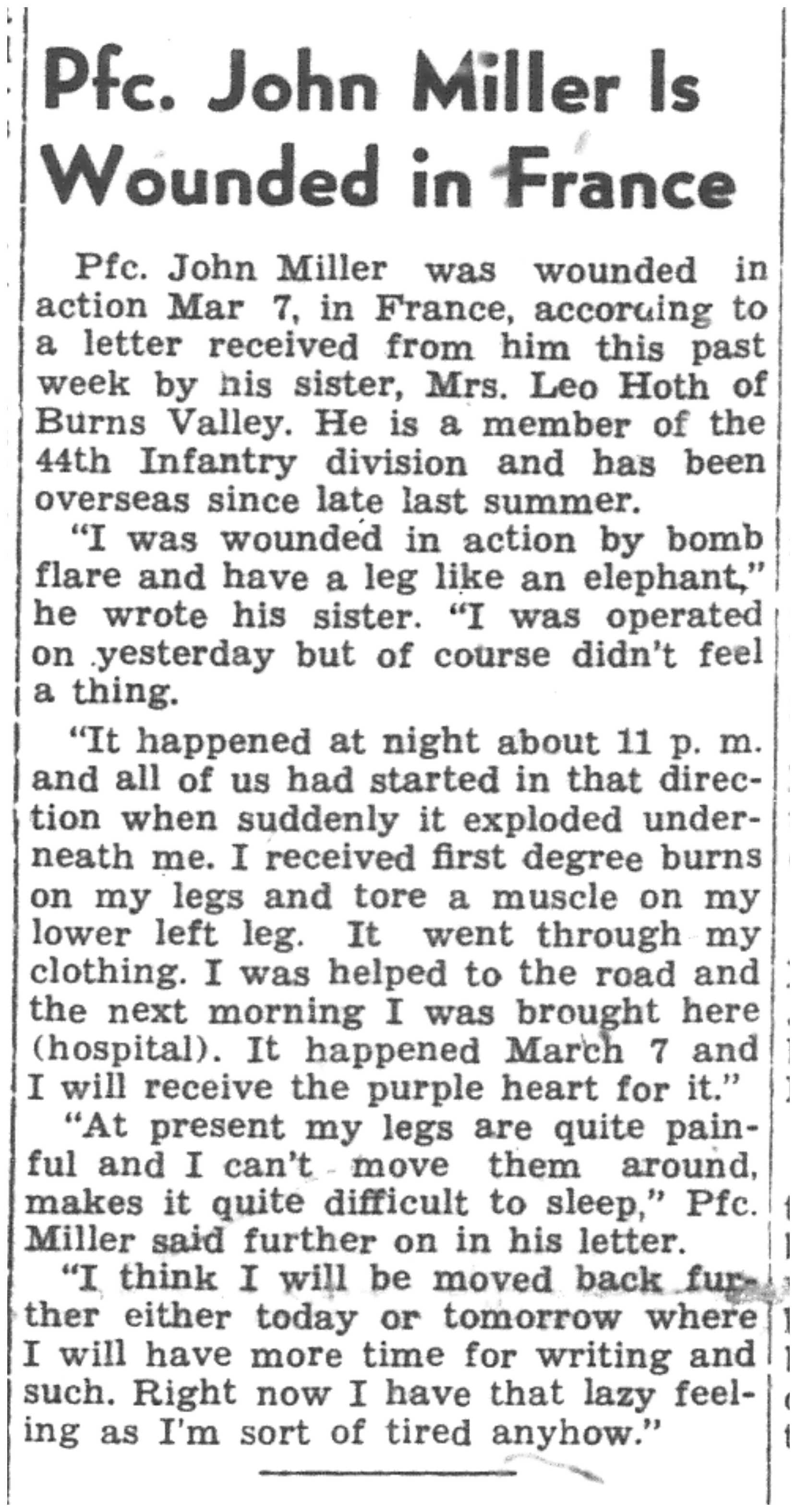 | 1945-3-29 | Non-Pareil Journal p5 | |