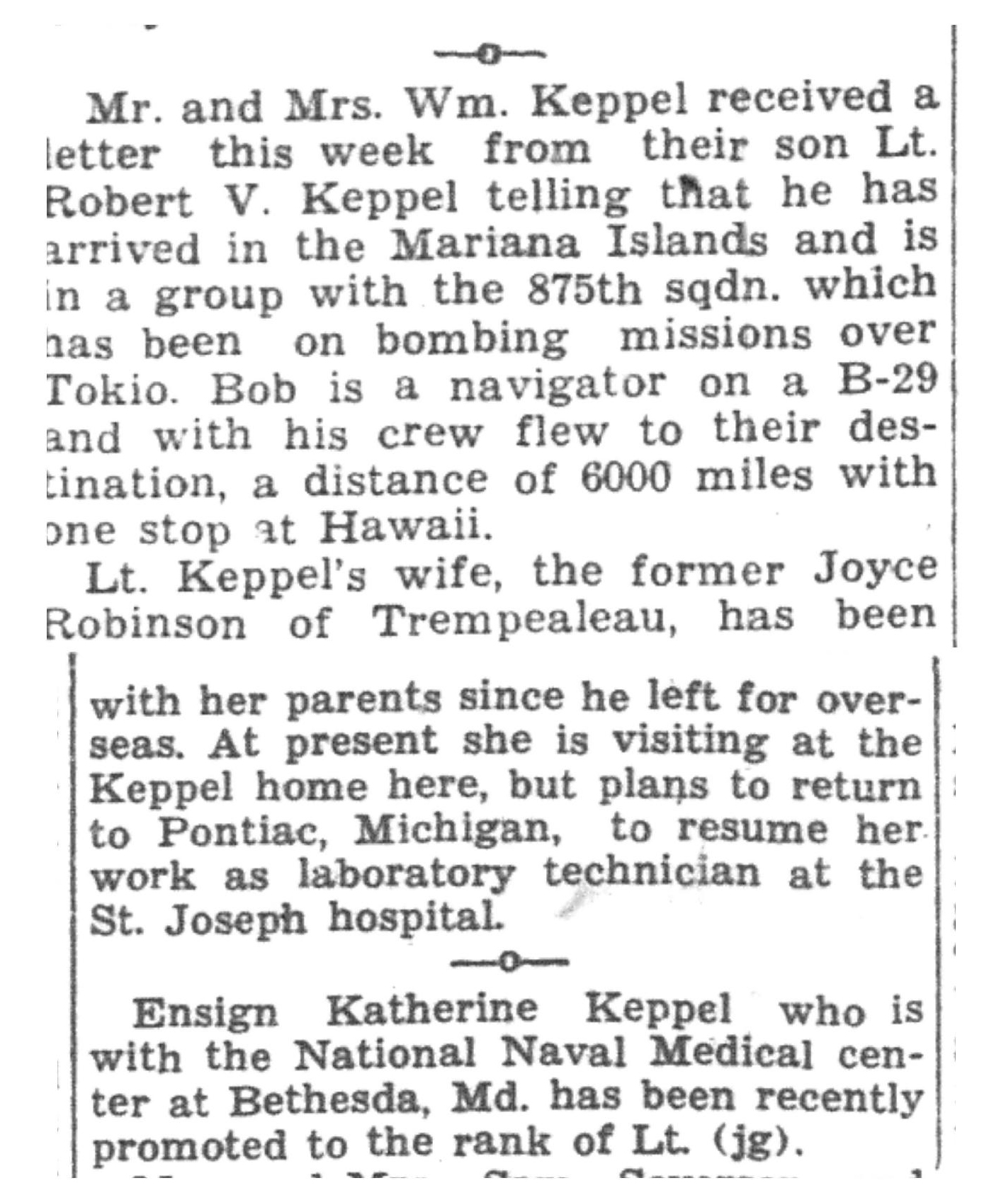 | 1945-3-18 | La Crosse Tribune p9 | |