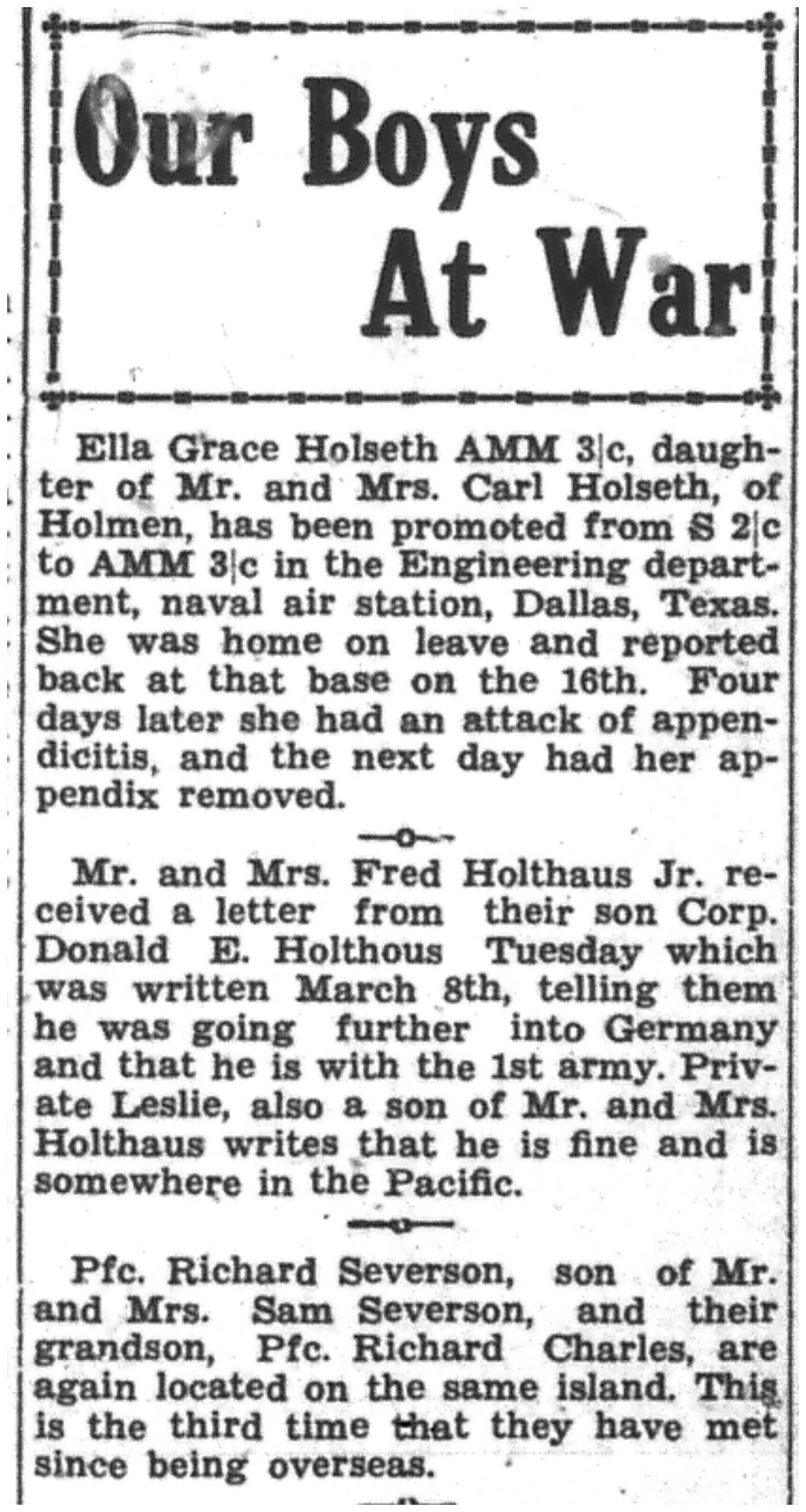 | 1945-3-13 | La Crosse Tribune p4 | |