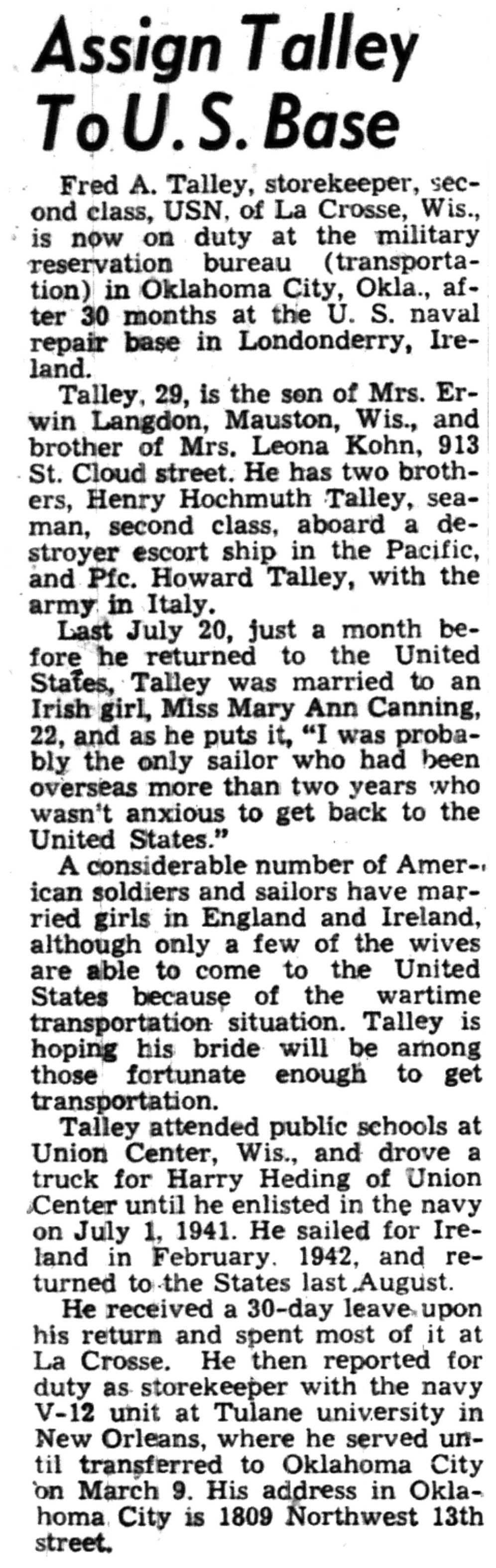 | 1945-3-22 | La Crosse Tribune p13 | |