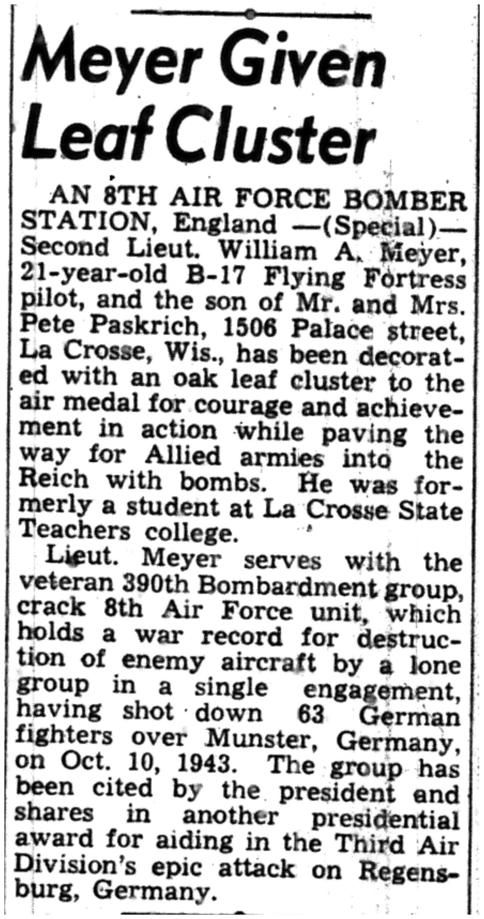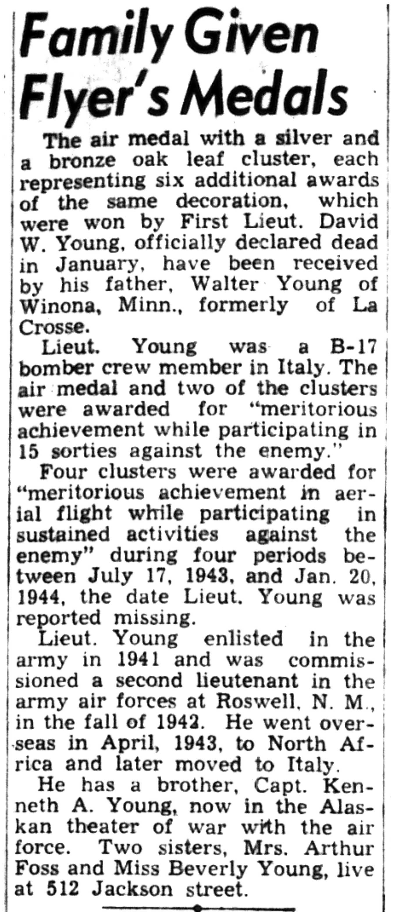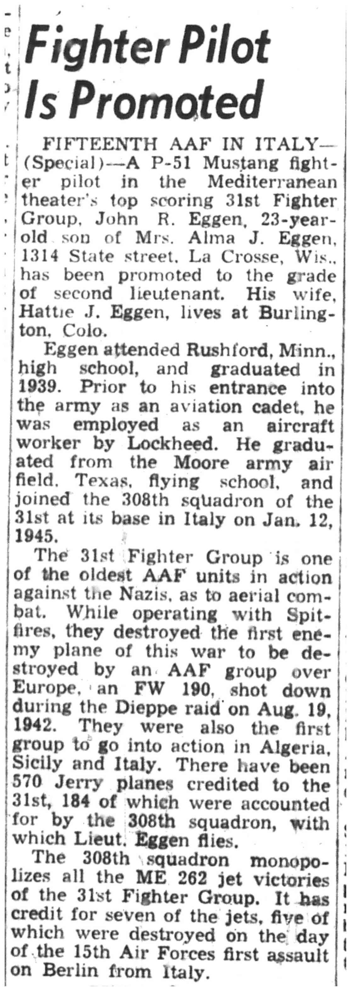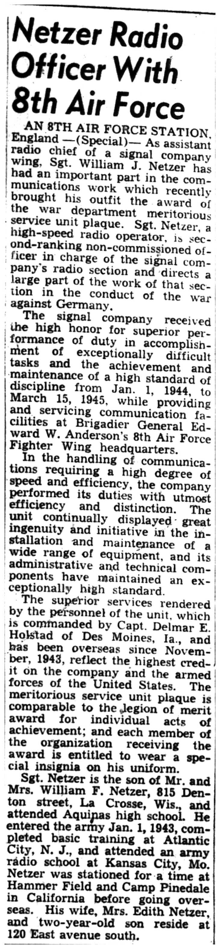 | 1945-5-2 | La Crosse Tribune p9 | |