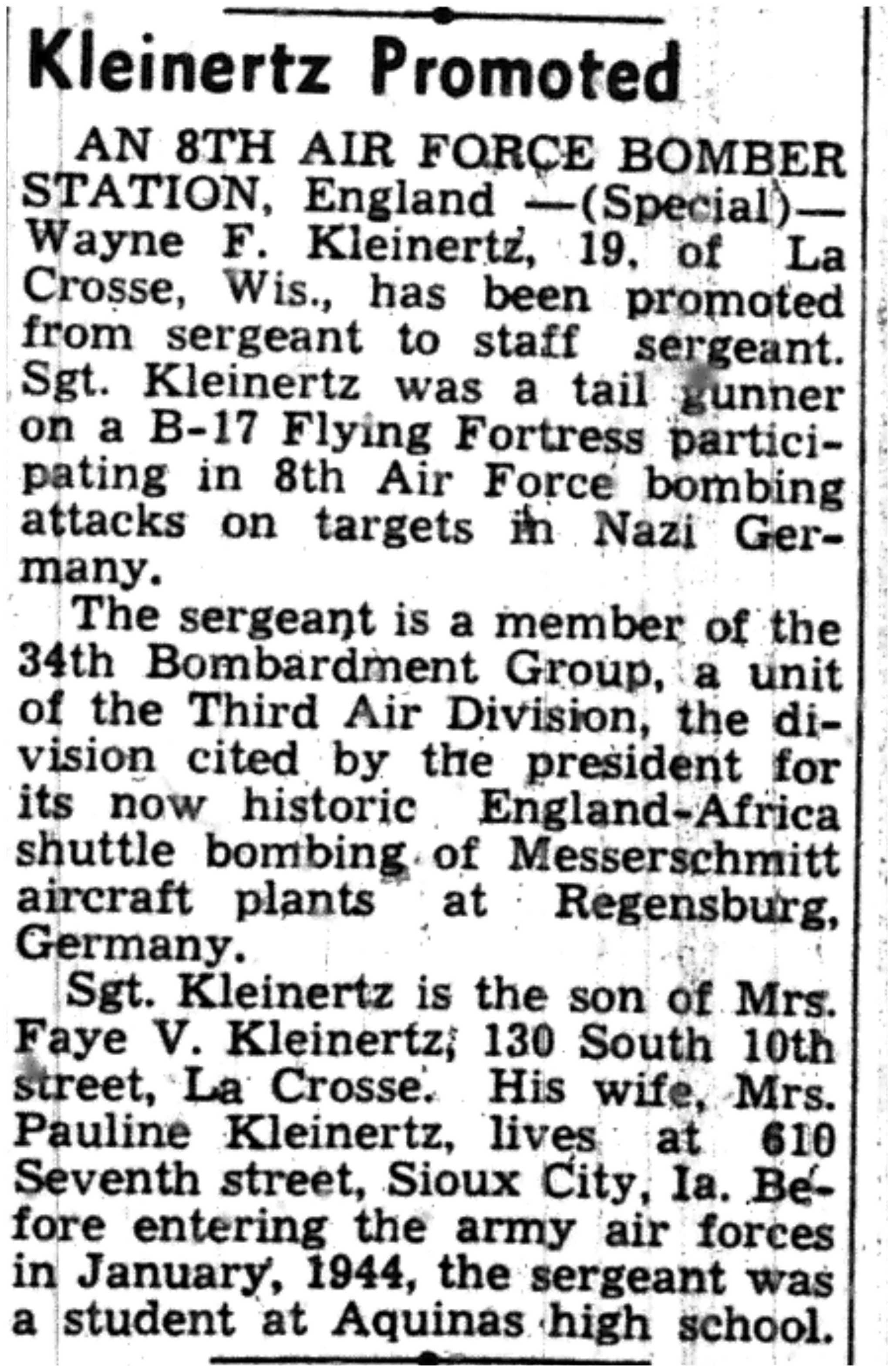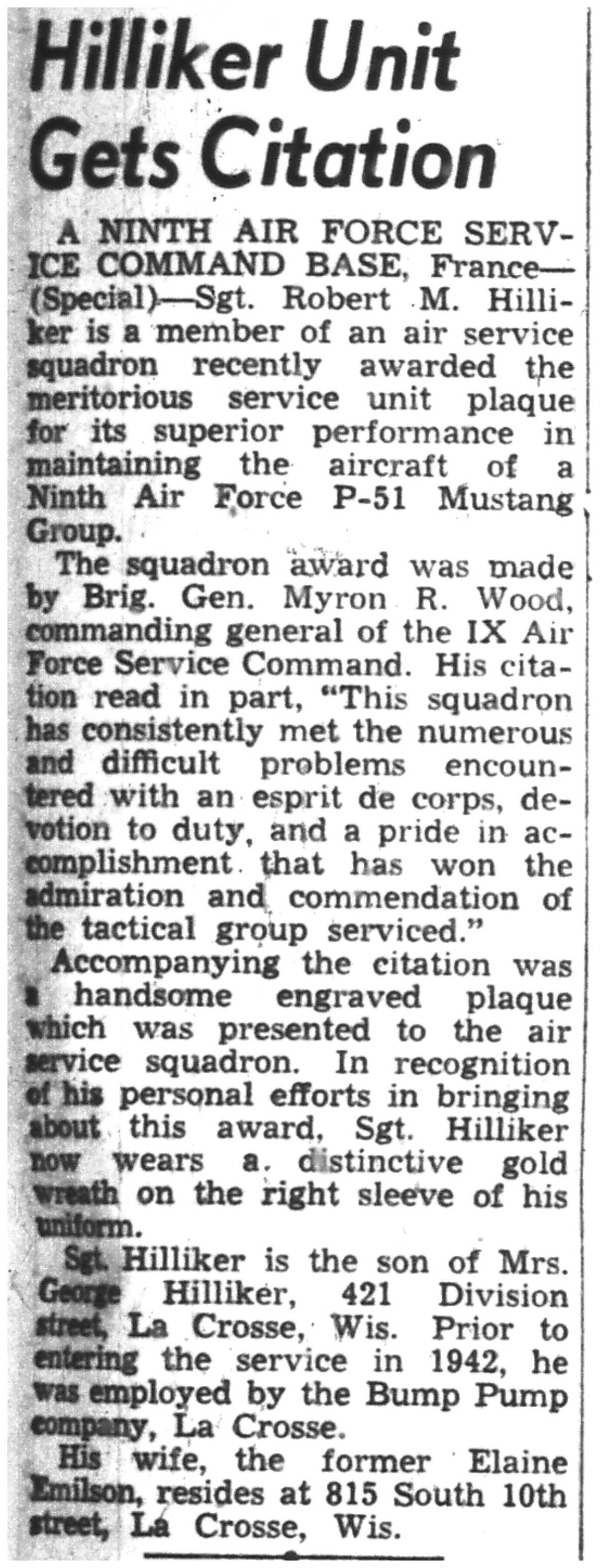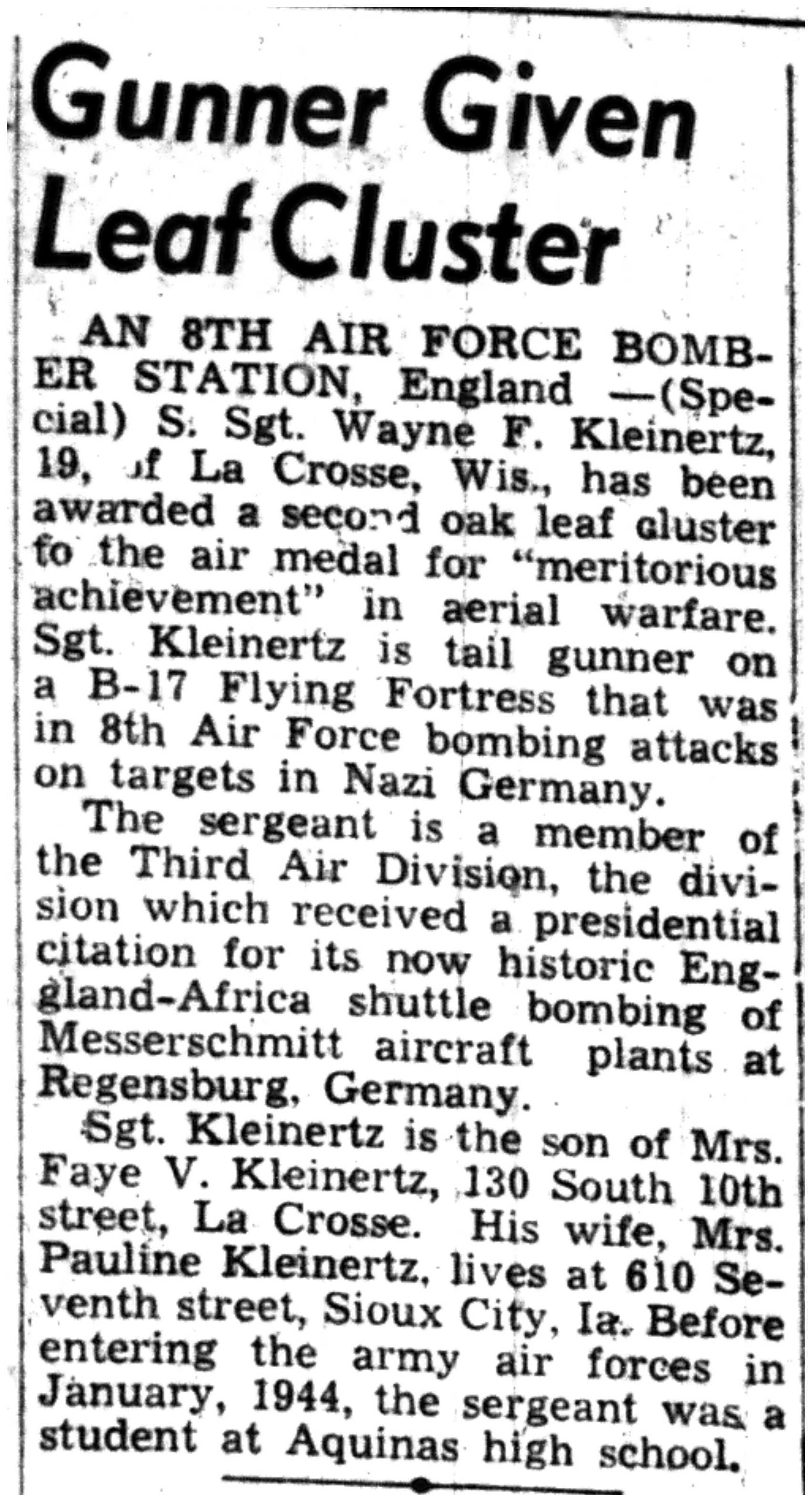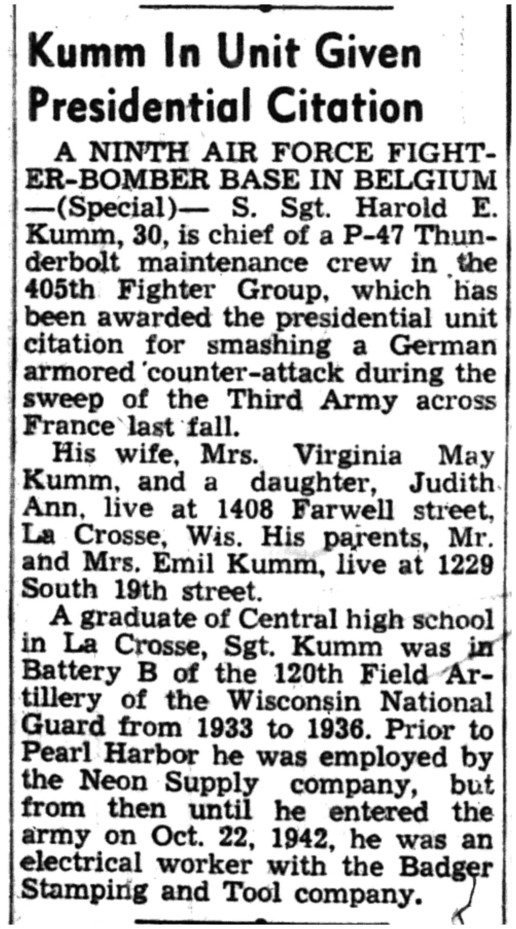 | 1945-5-2 | La Crosse Tribune p9 | |