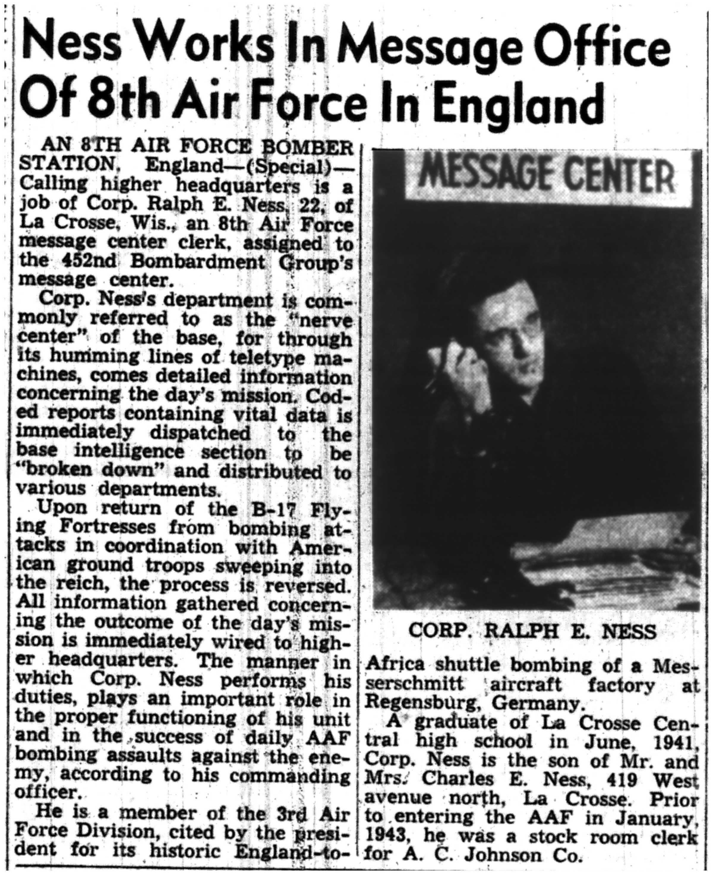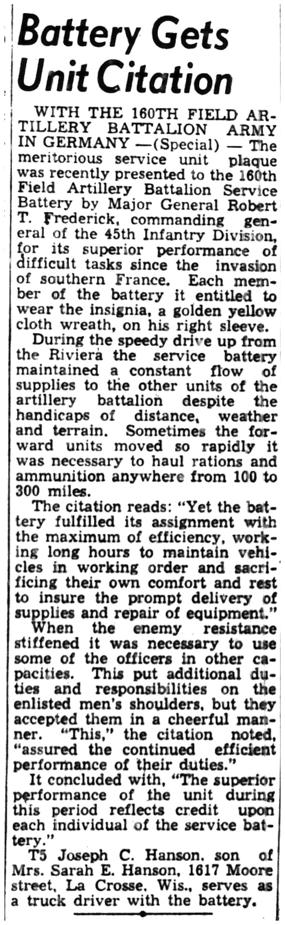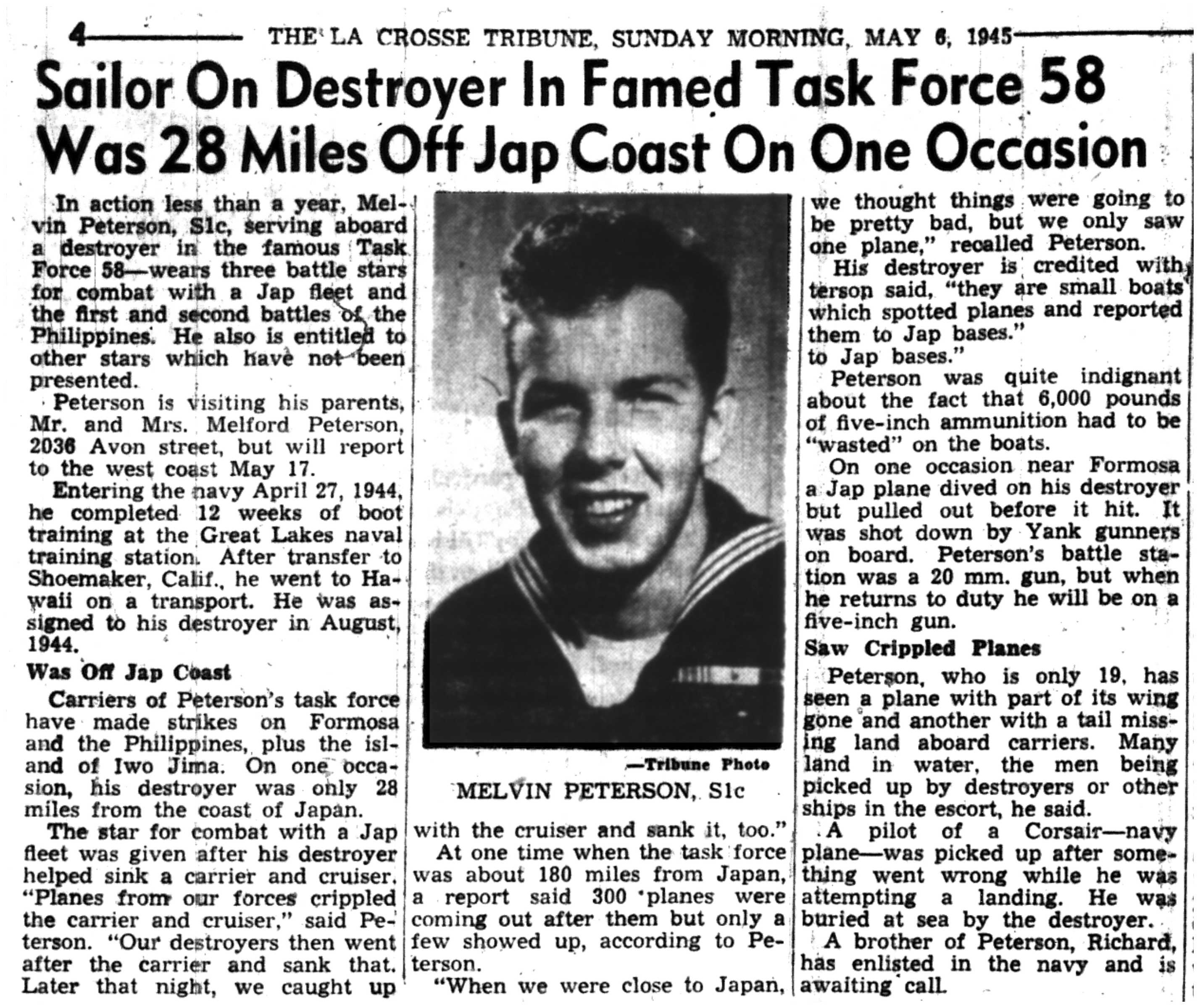 | 1945-5-6 | La Crosse Tribune p7 | |