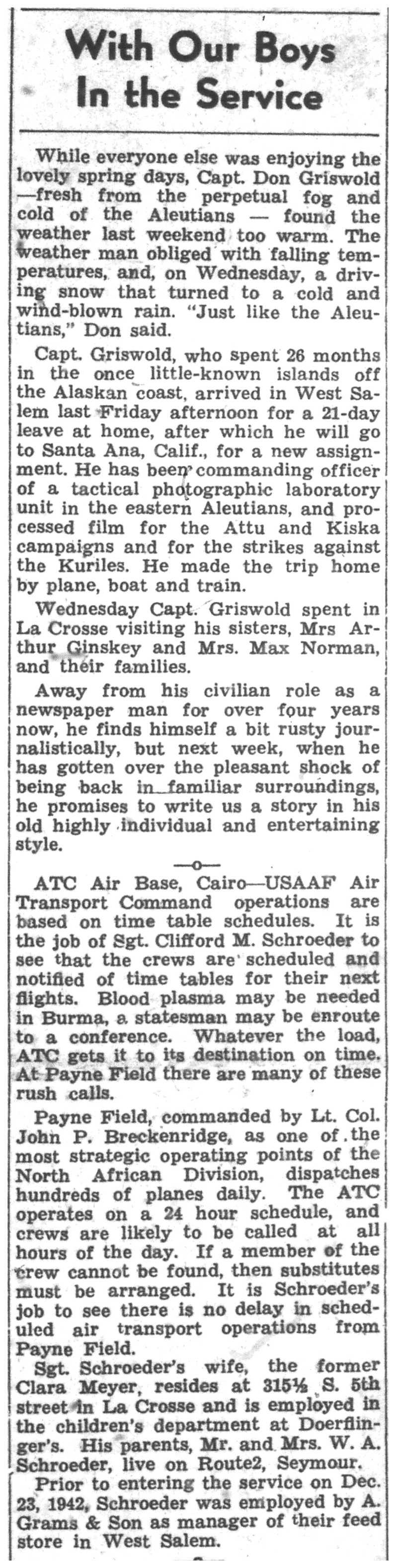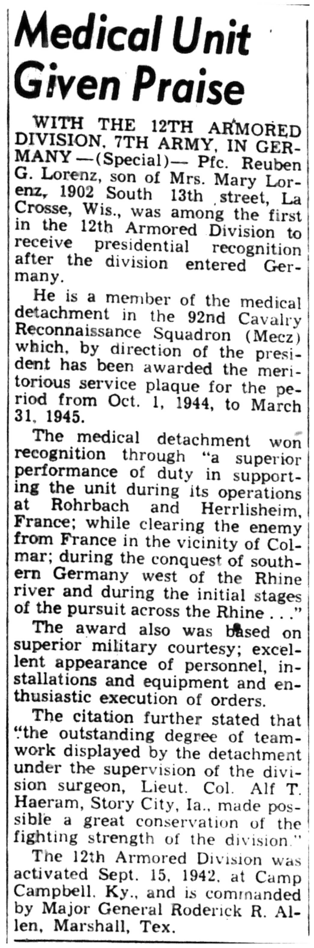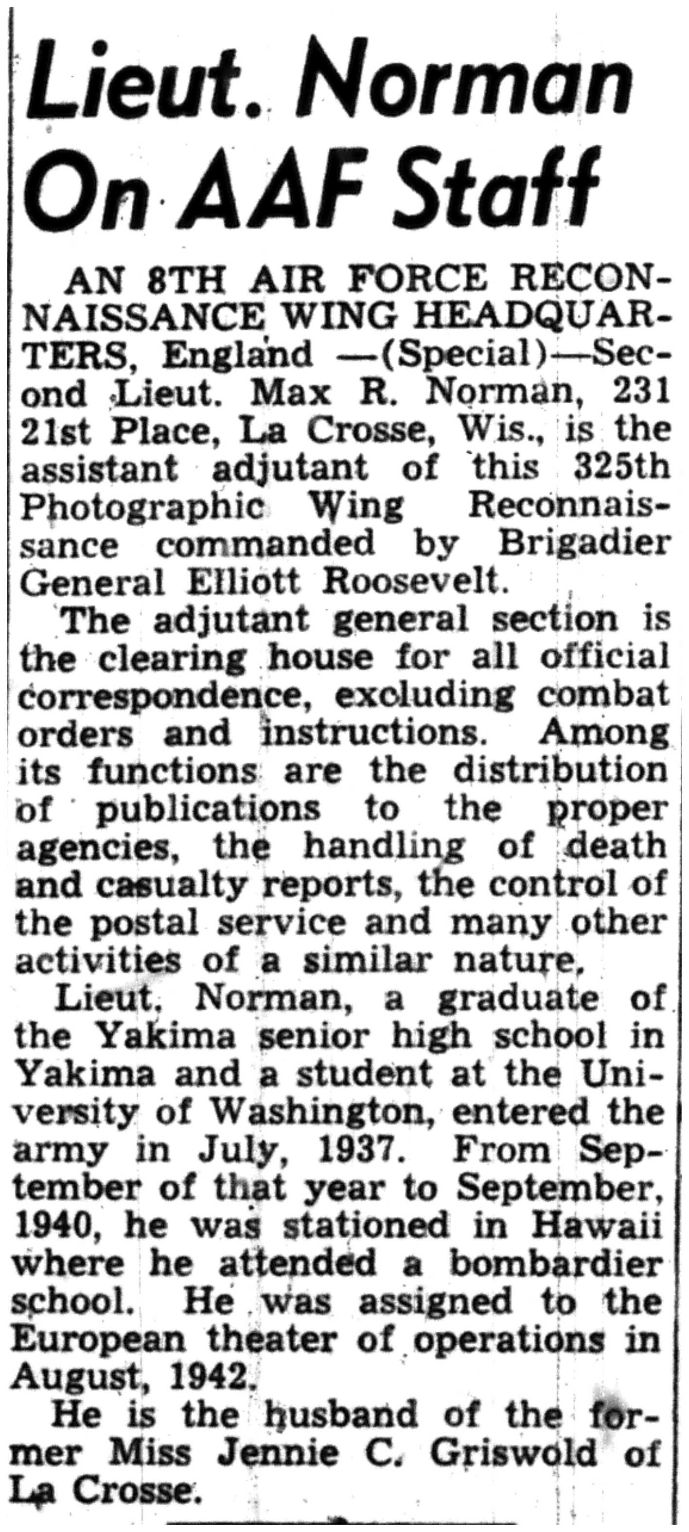 | 1945-5-2 | La Crosse Tribune p12 | |