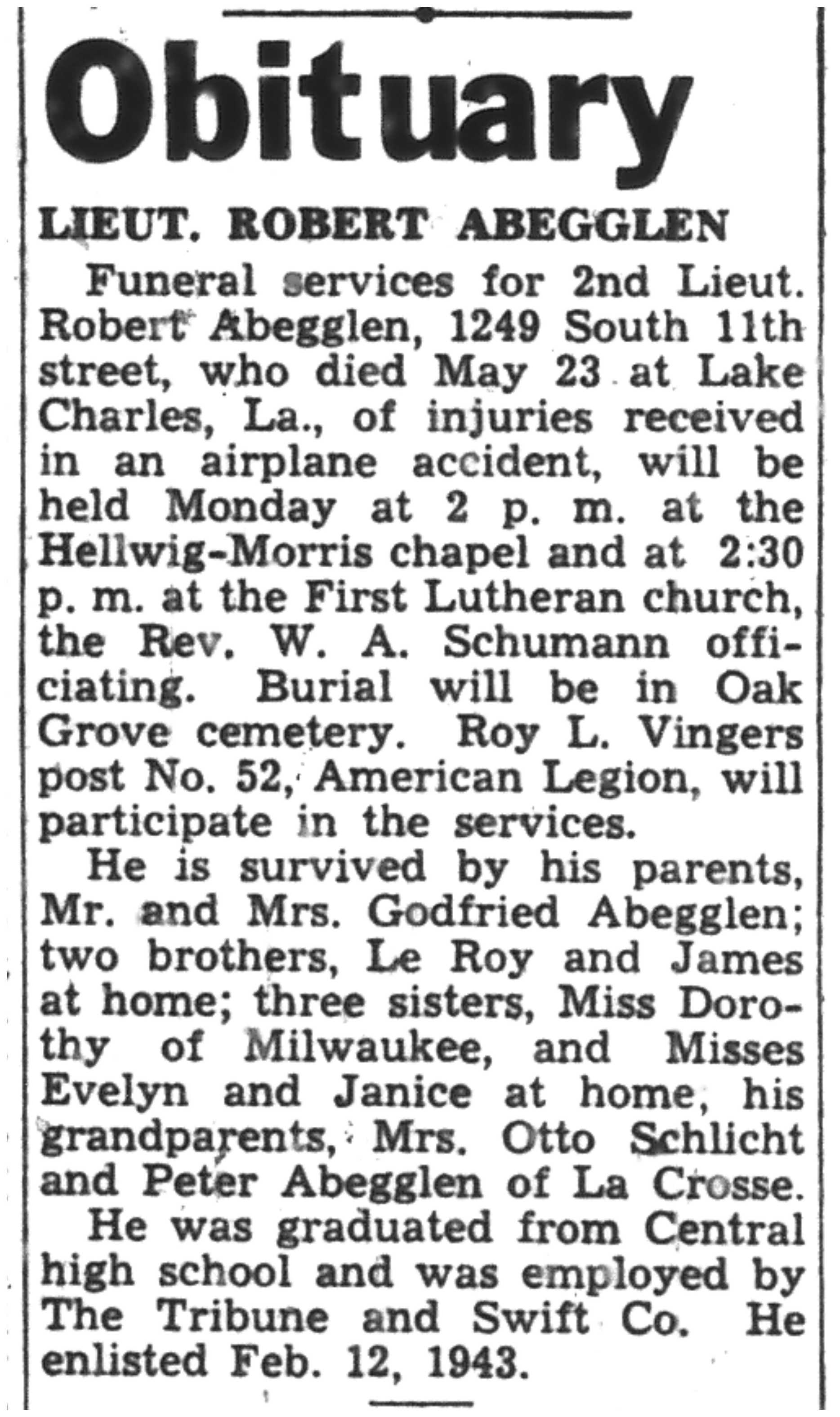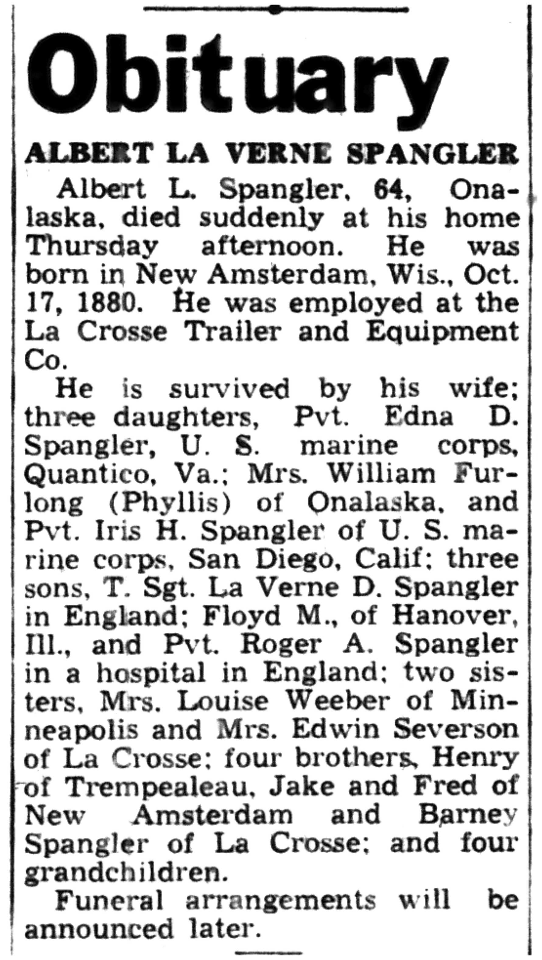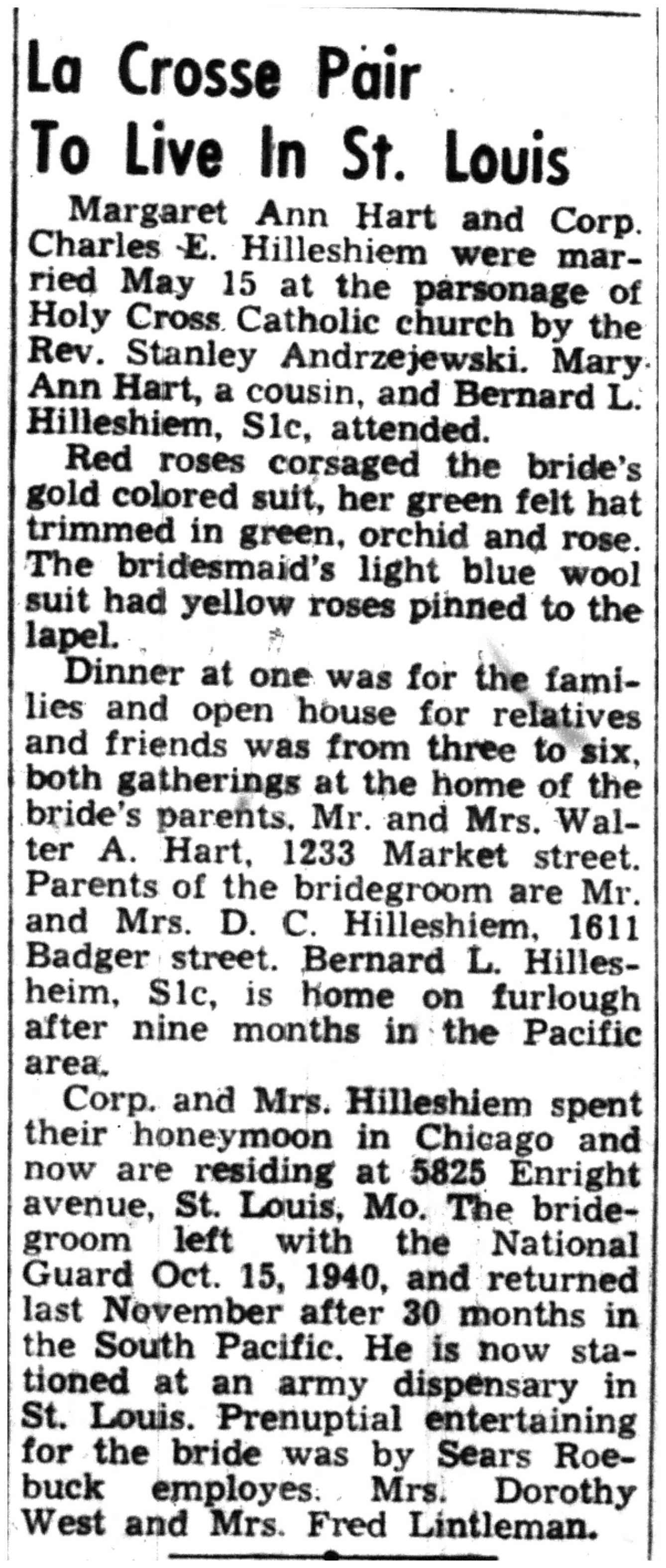 | 1945-5-6 | La Crosse Tribune p14 | |
