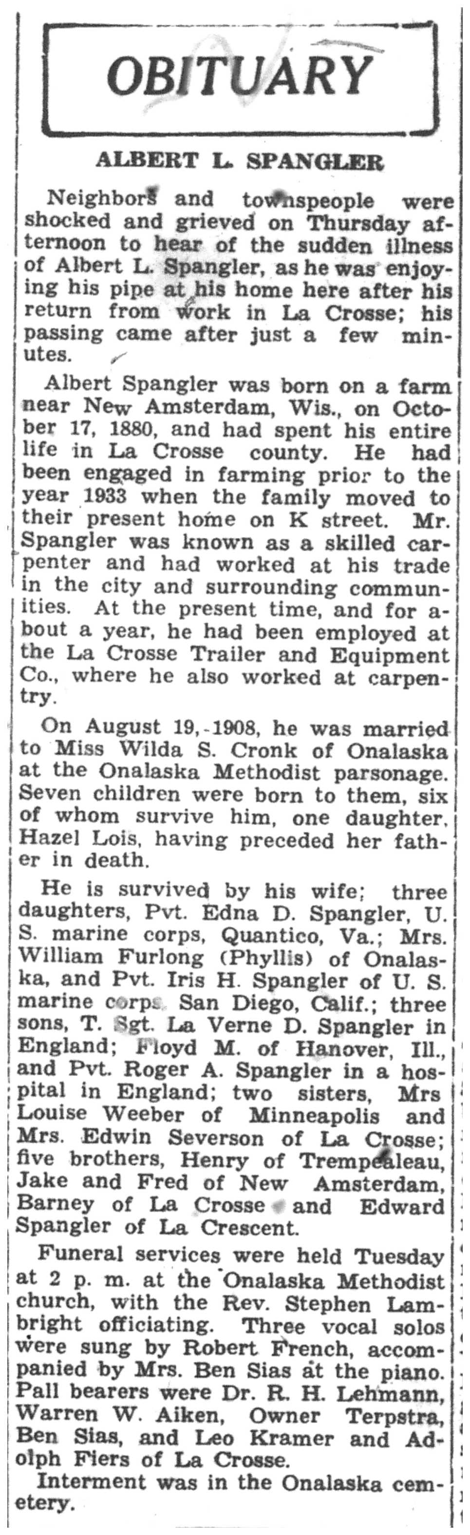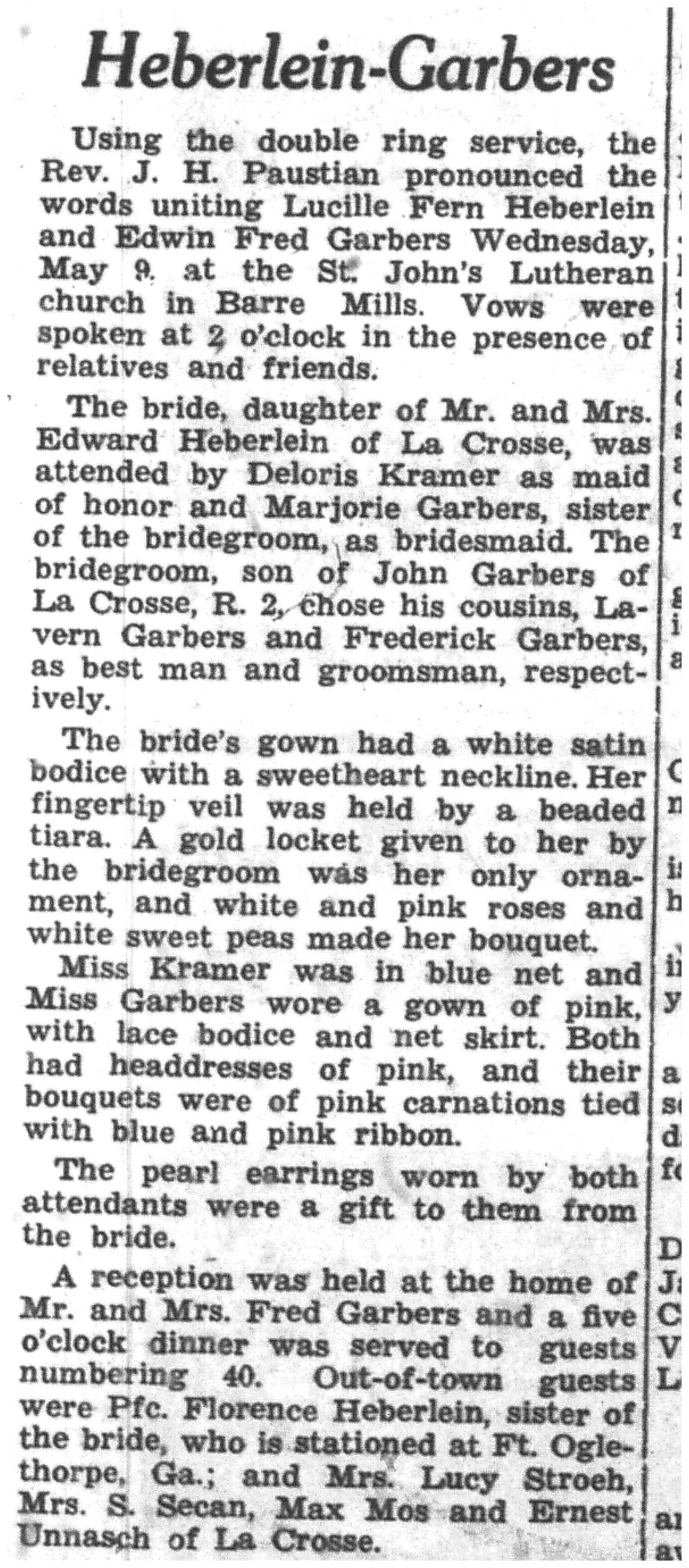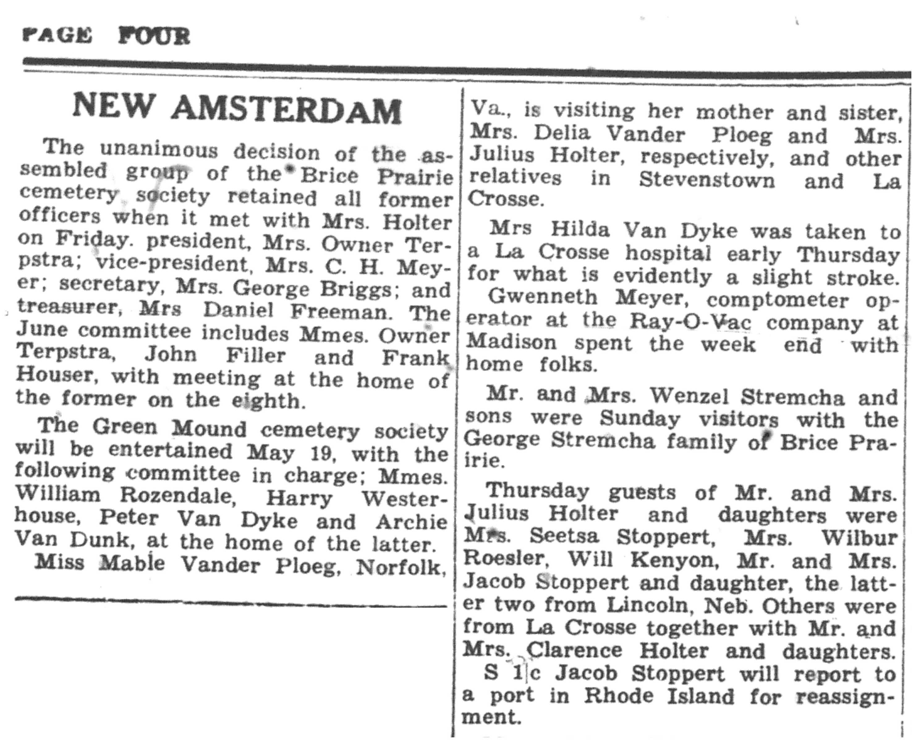 | 1945-5-6 | La Crosse Tribune p14 | |