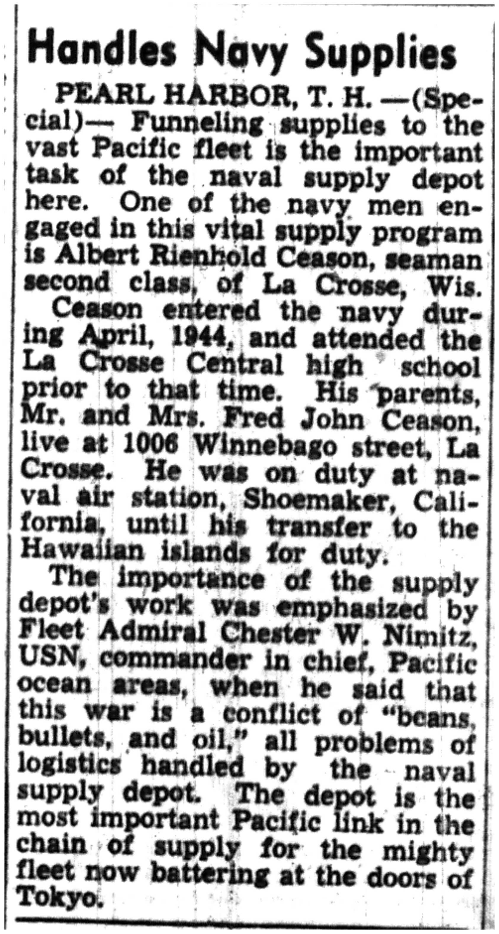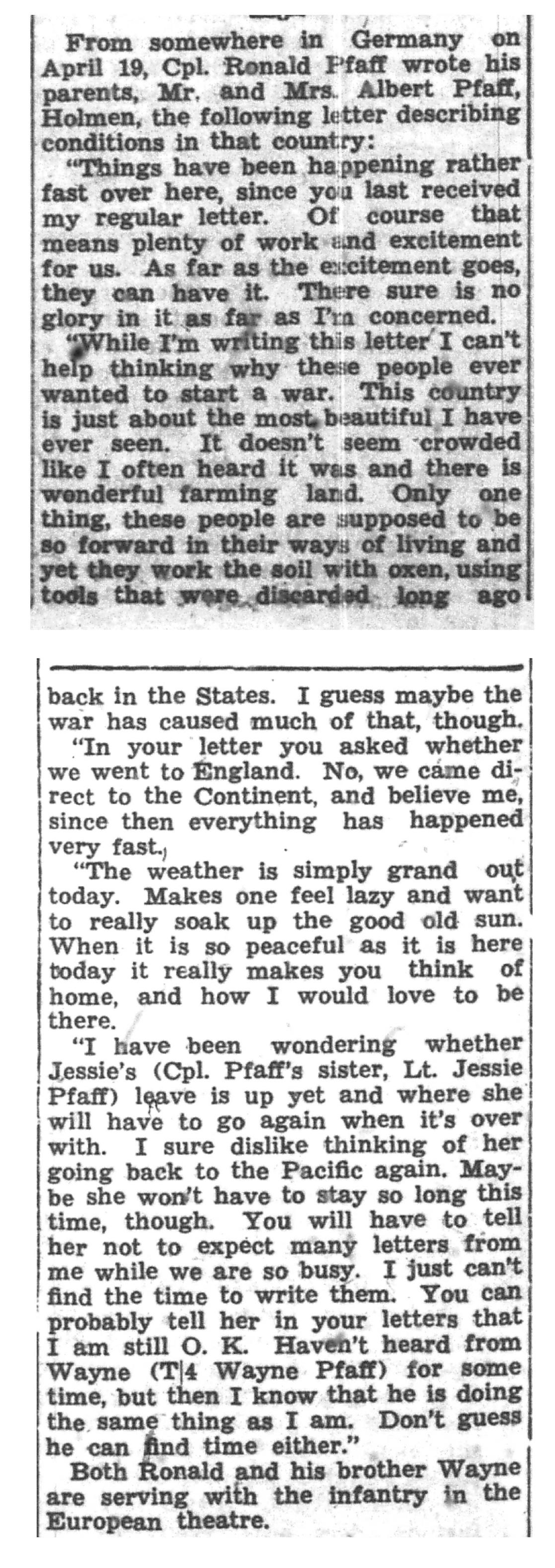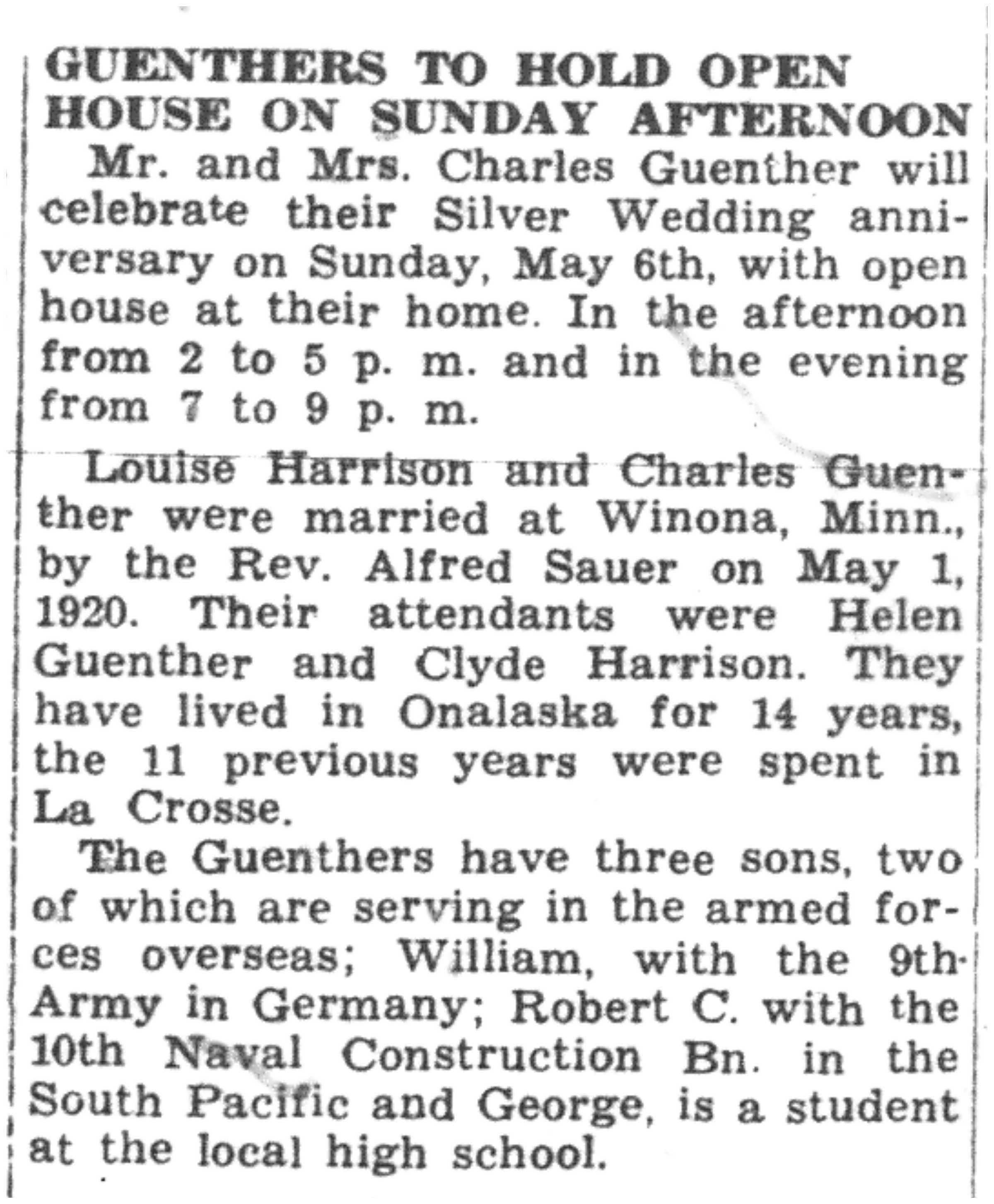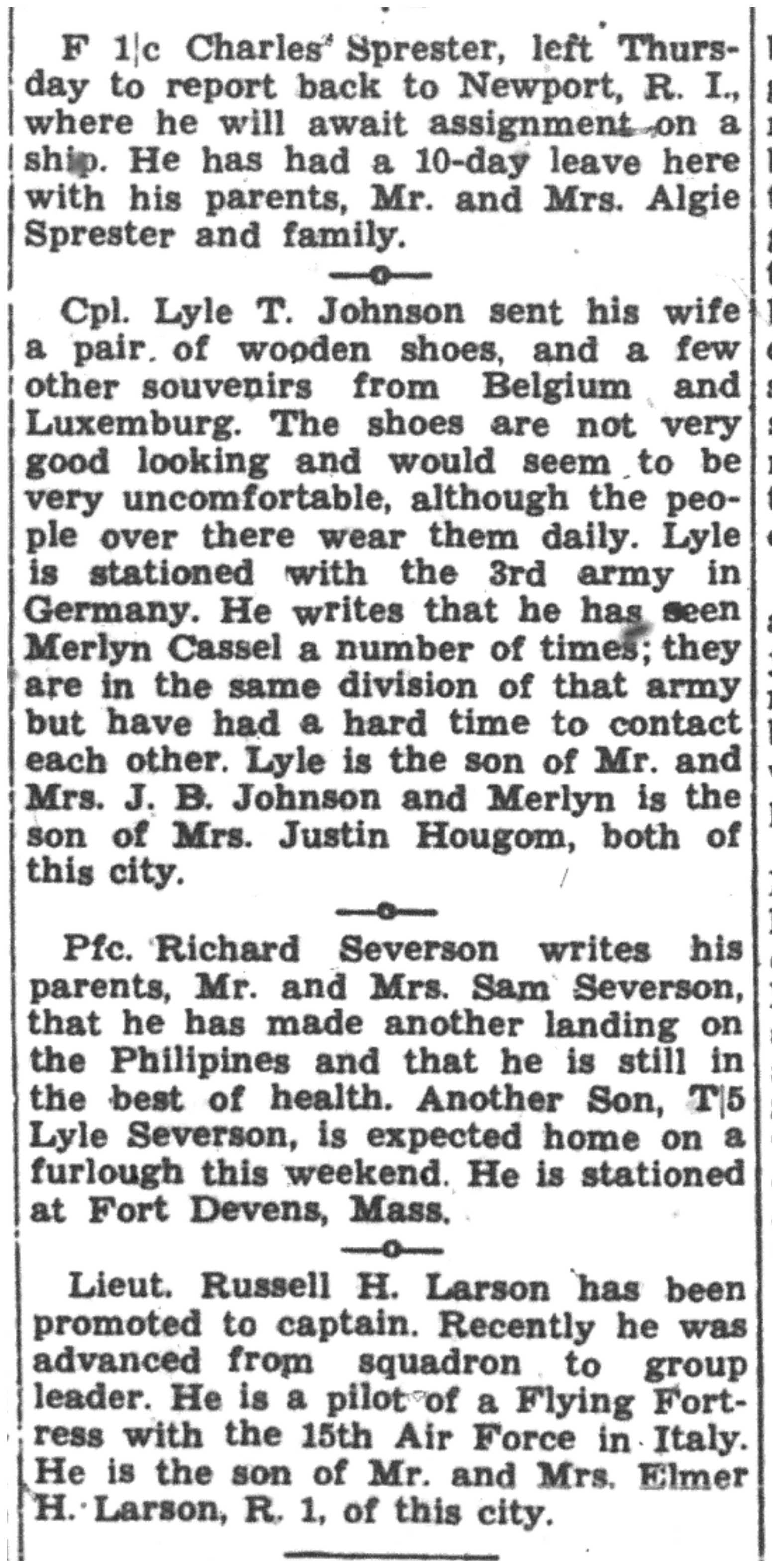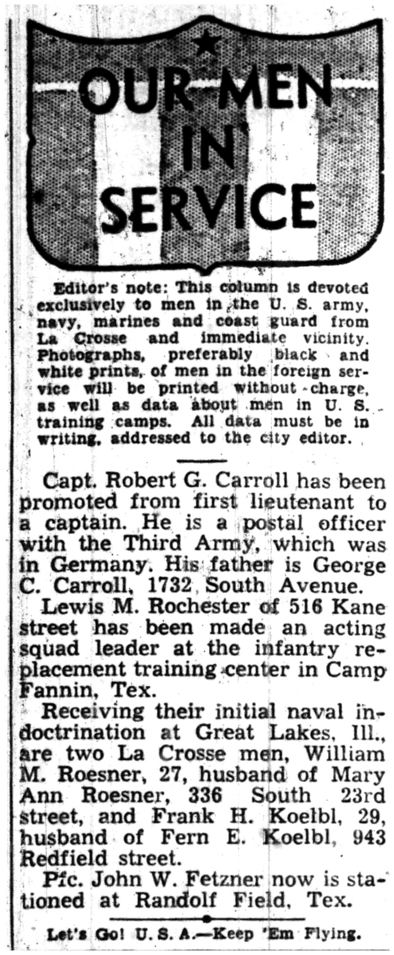 | 1945-5-18 | La Crosse Tribune p4 | |