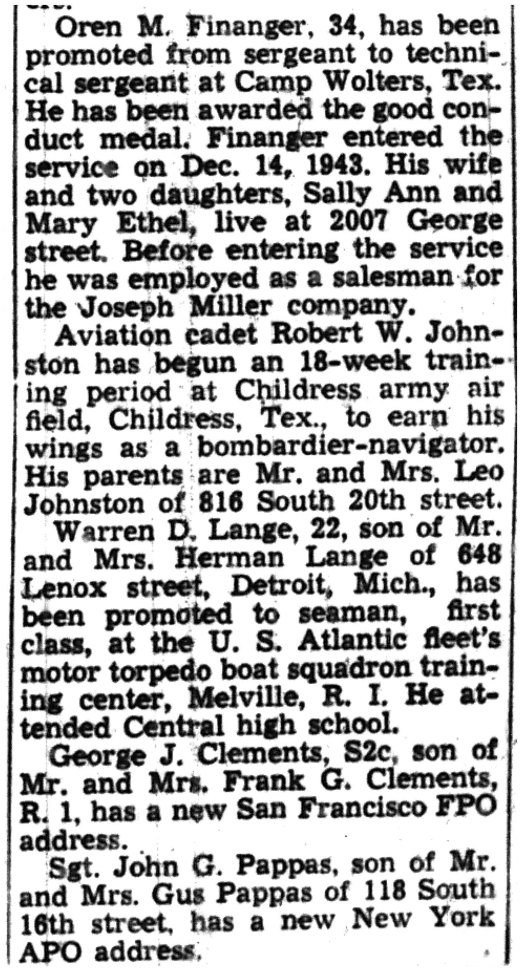 | 1945-5-3 | Non-Pareil Journal p8 |