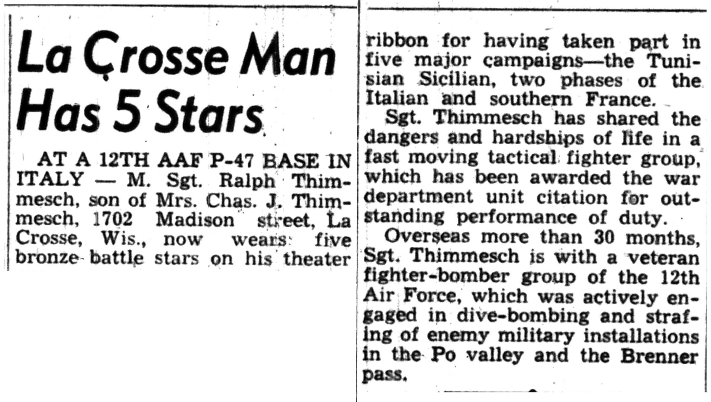 | 1945-5-6 | La Crosse Tribune p5 | |