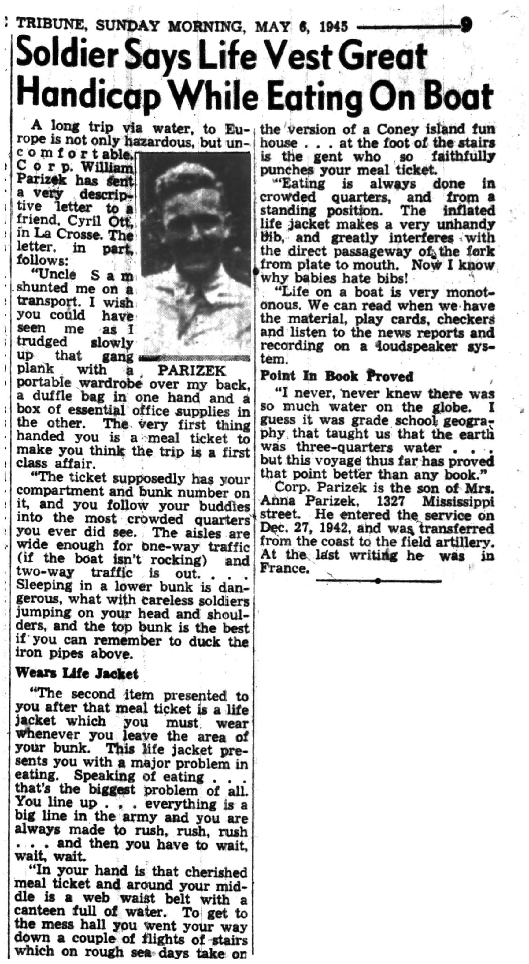 | 1945-5-3 | La Crosse Tribune p3 | |