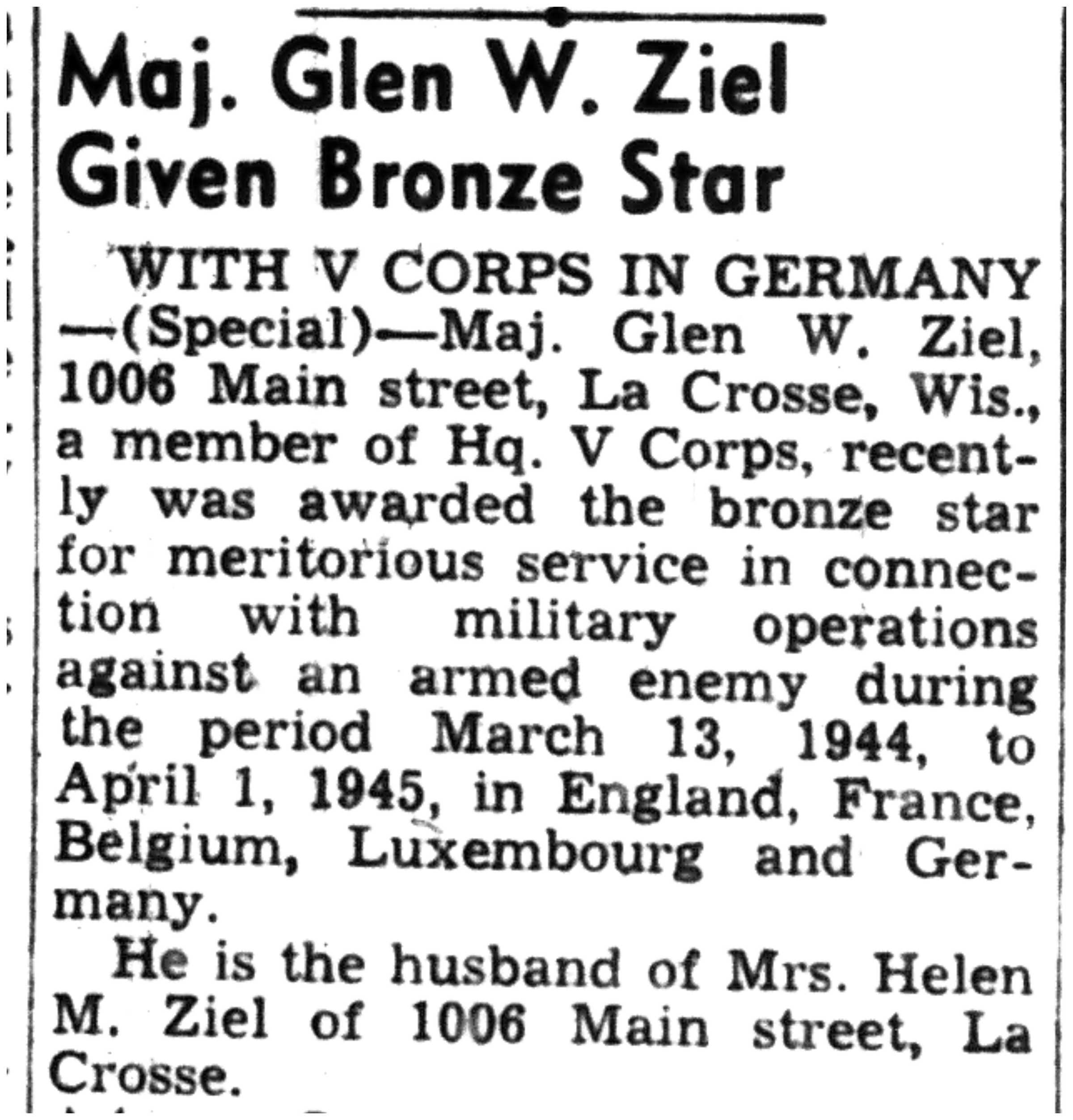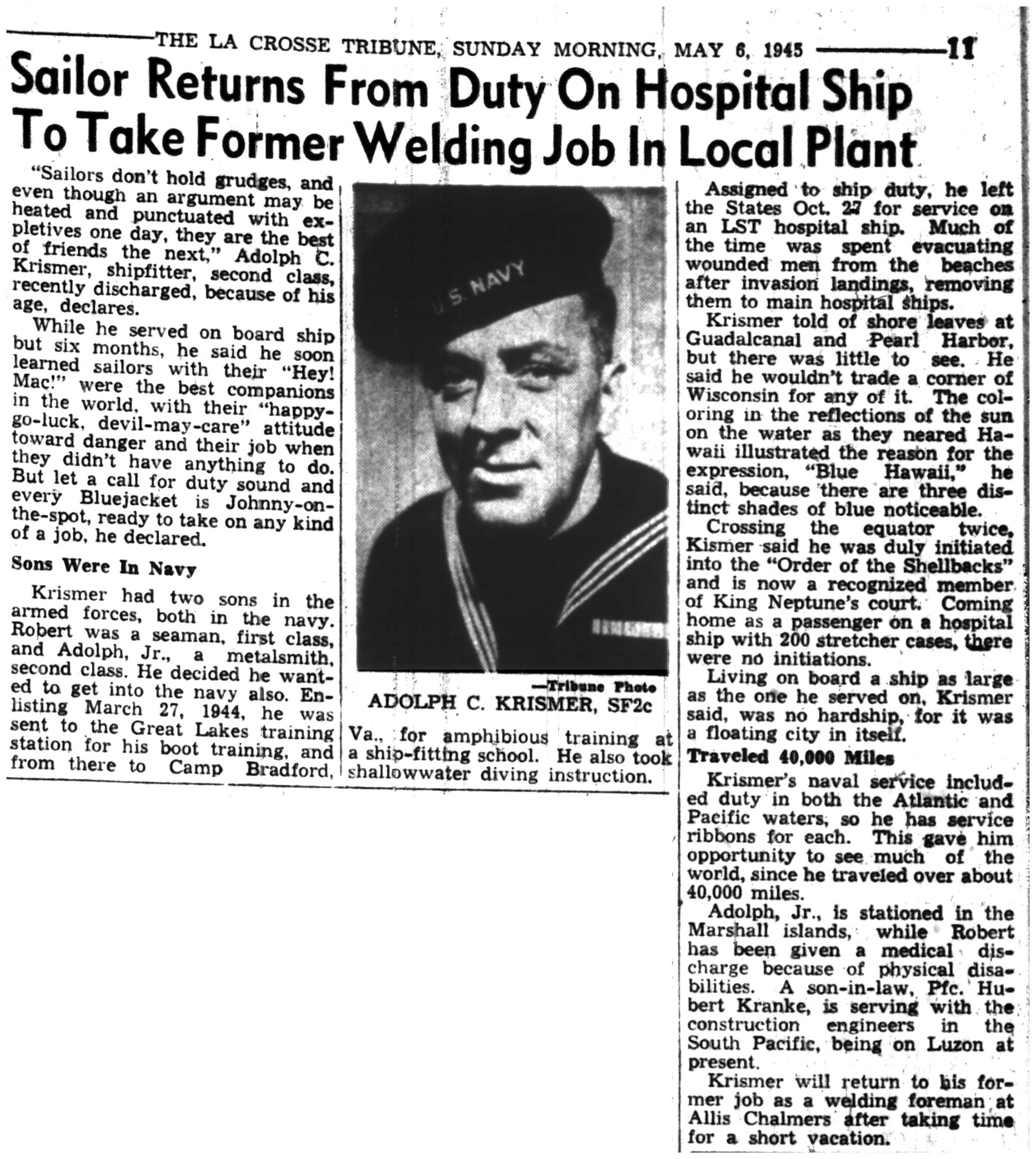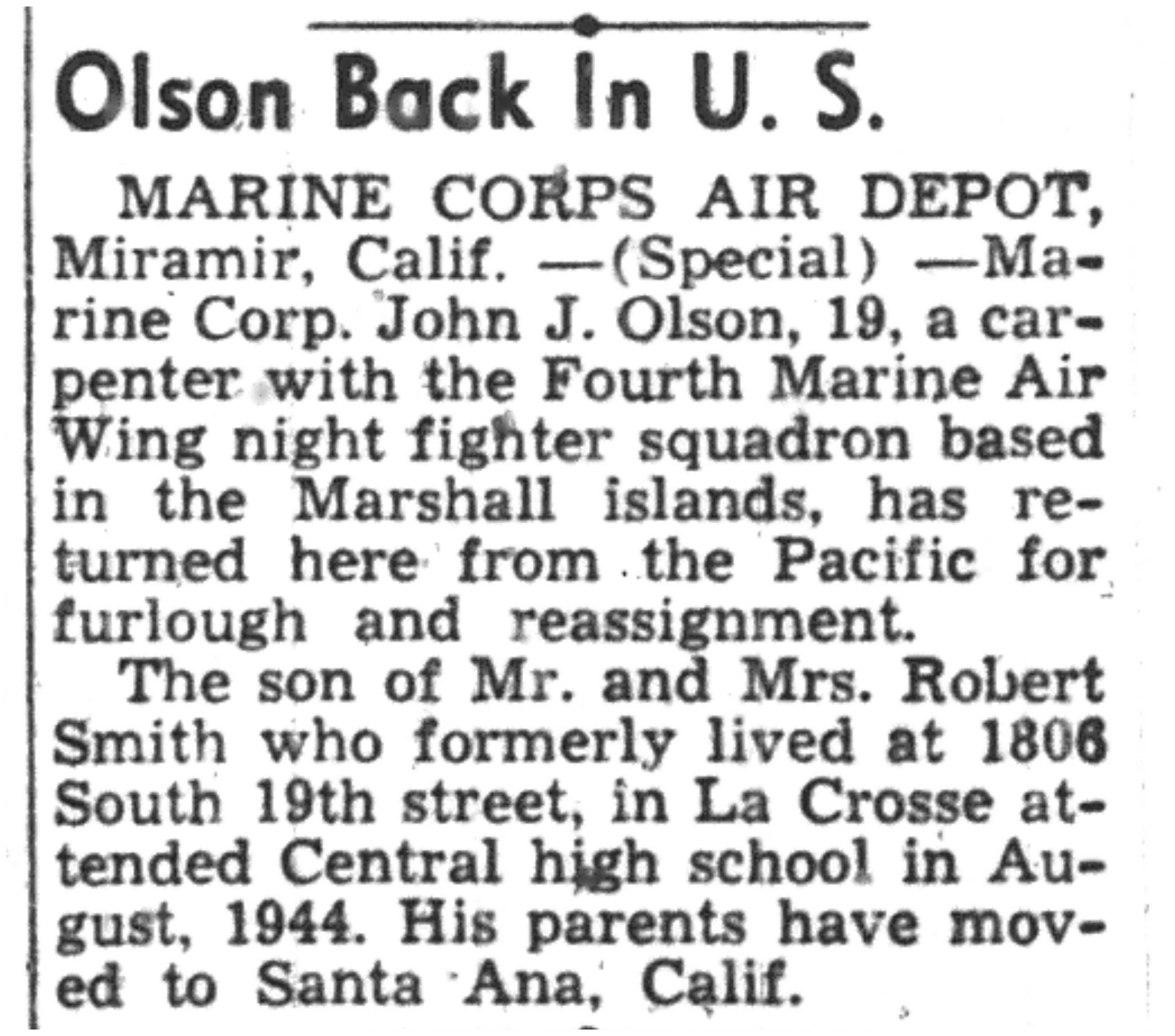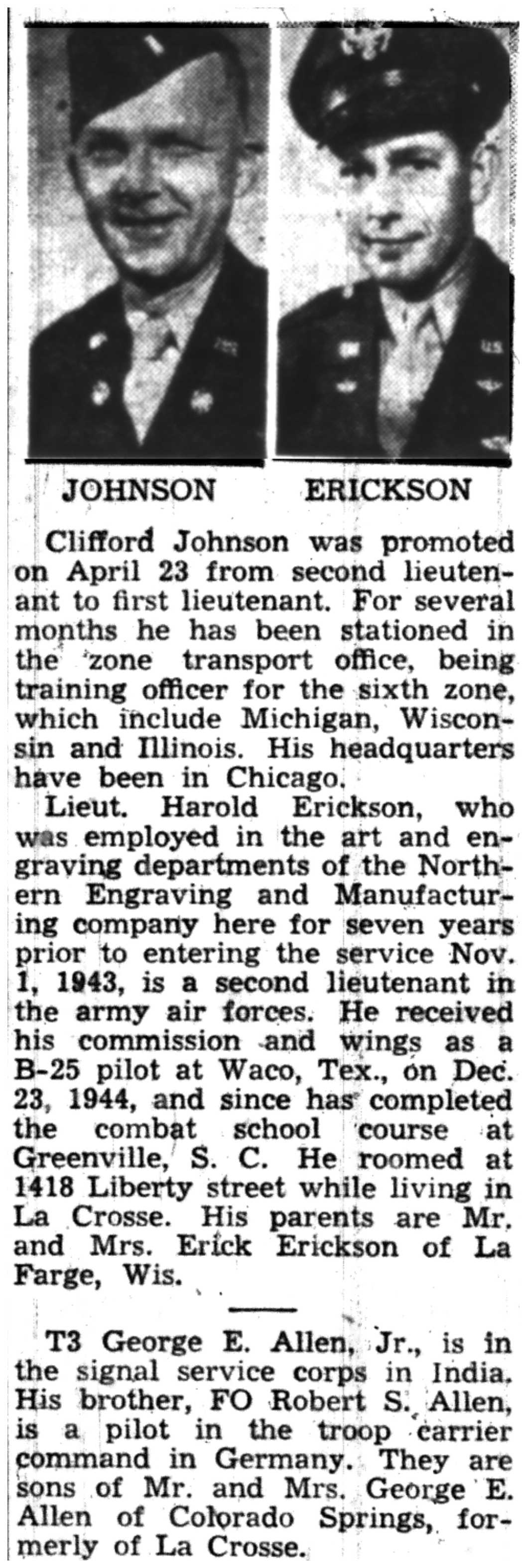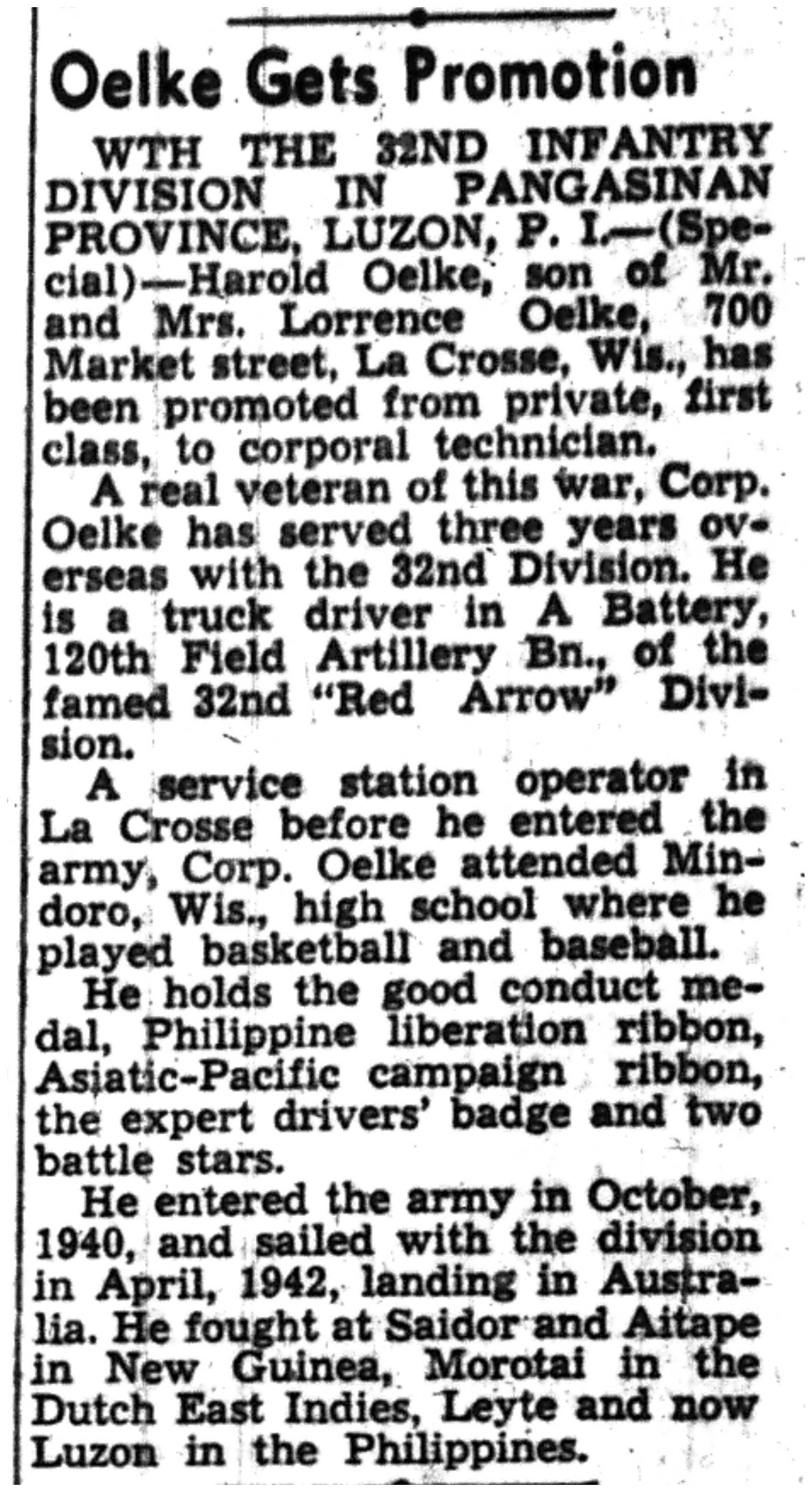 | 1945-5-6 | La Crosse Tribune p11 | |