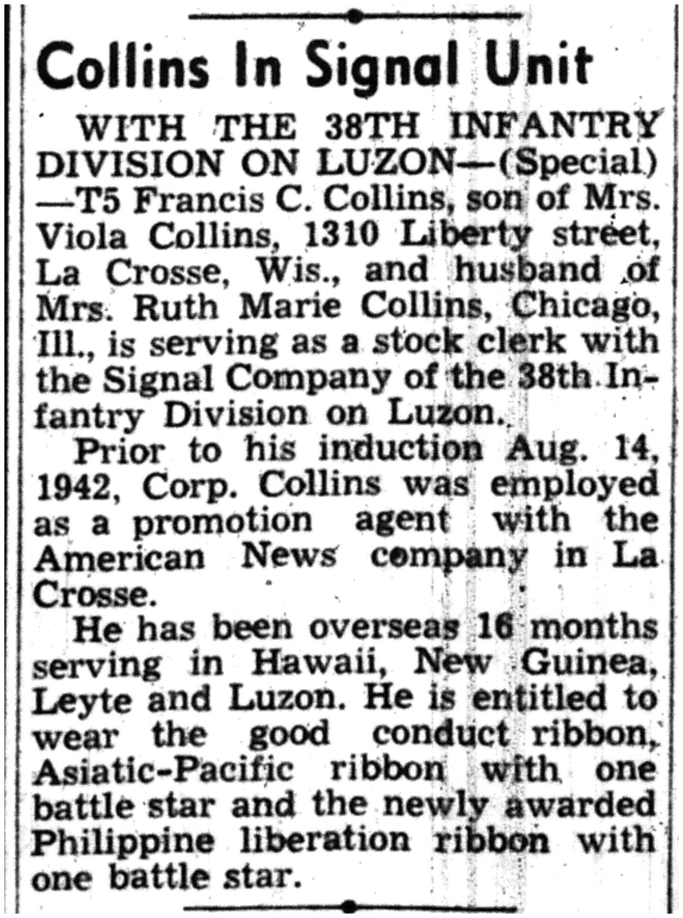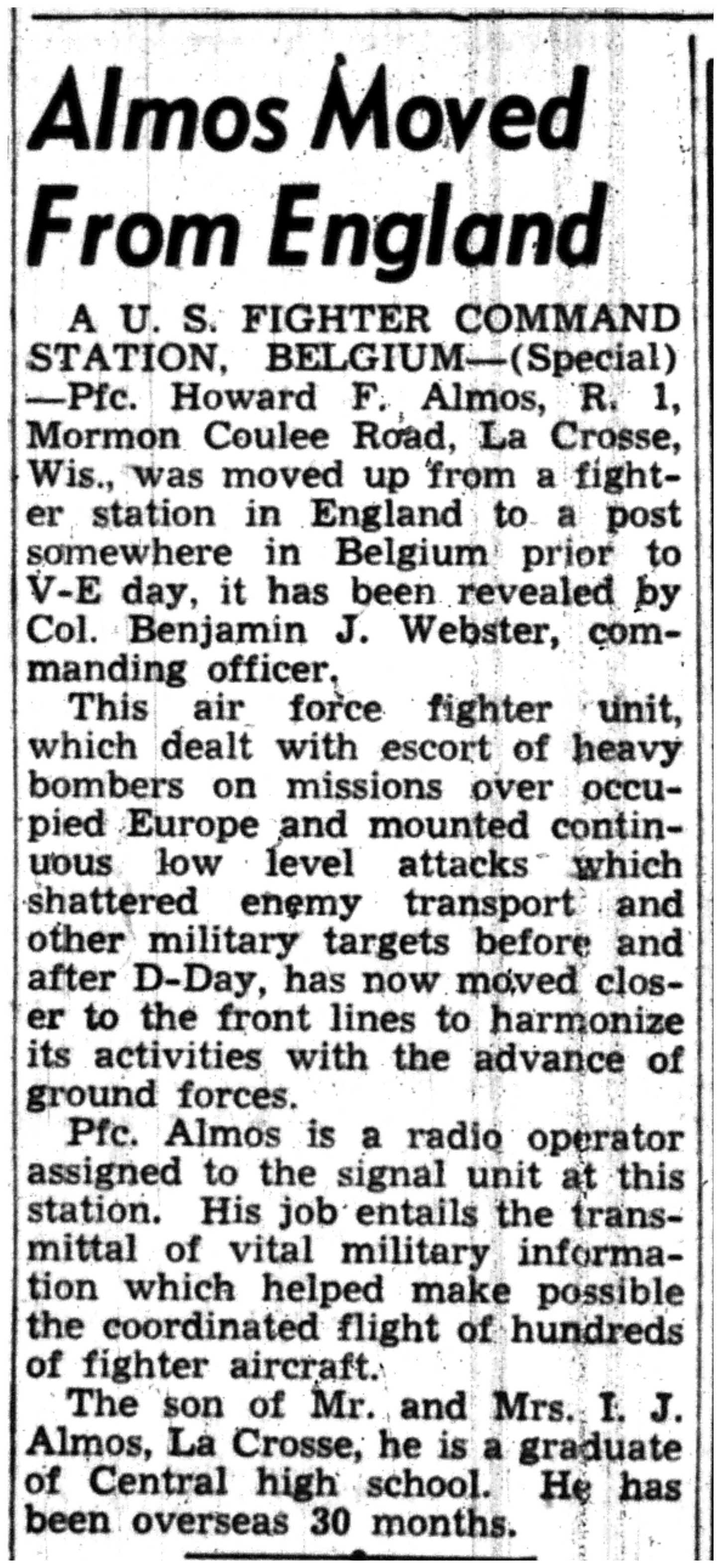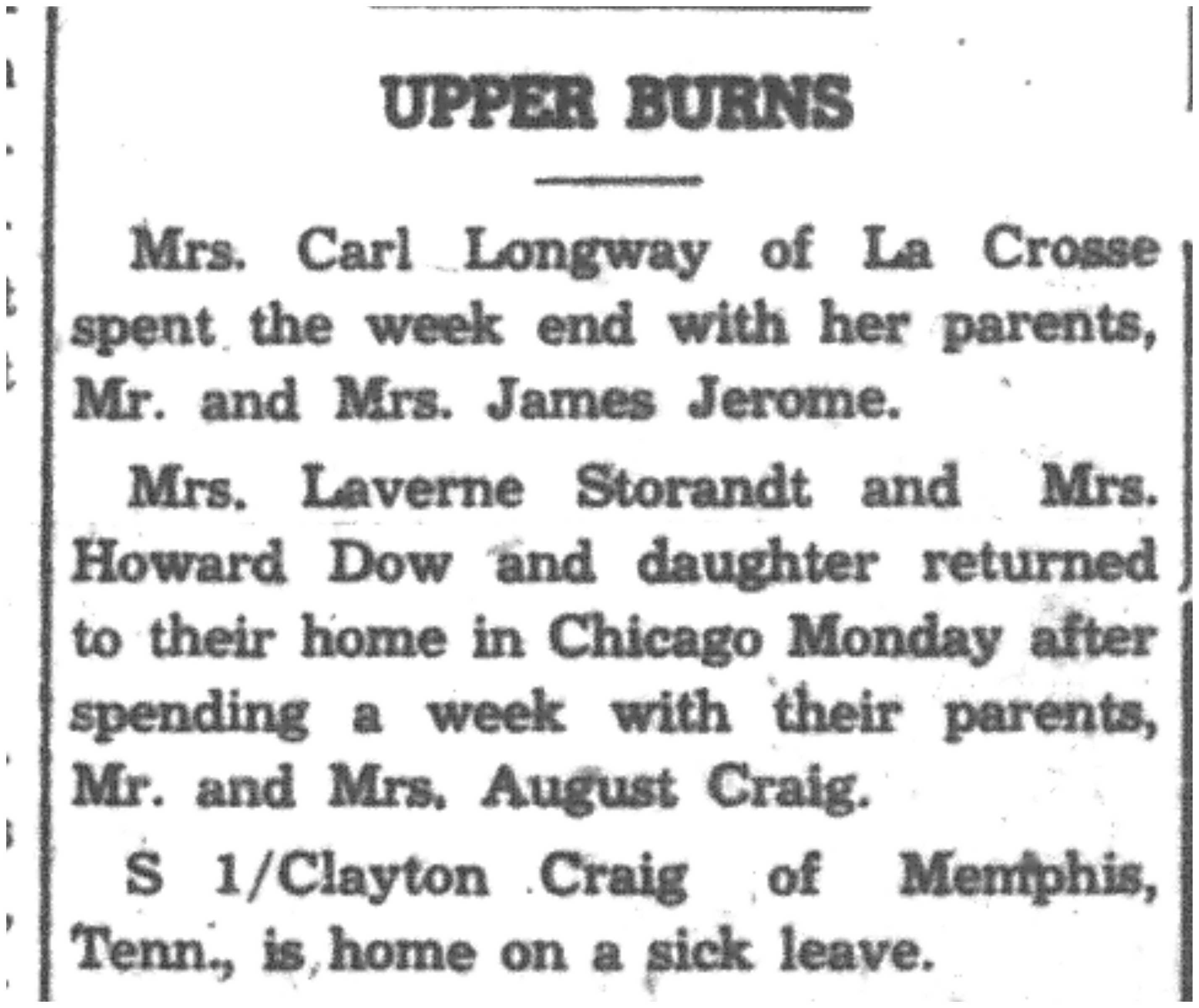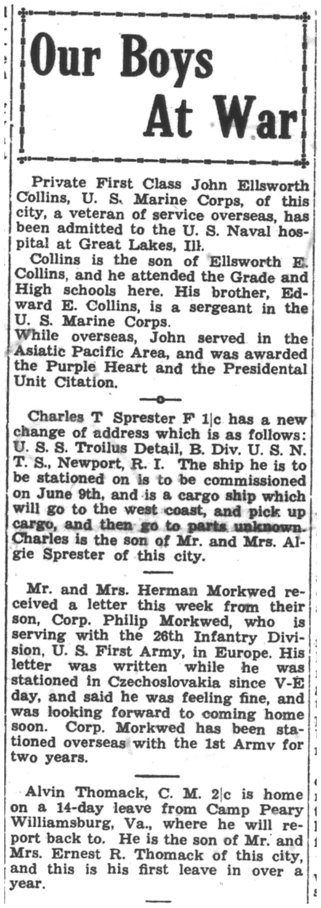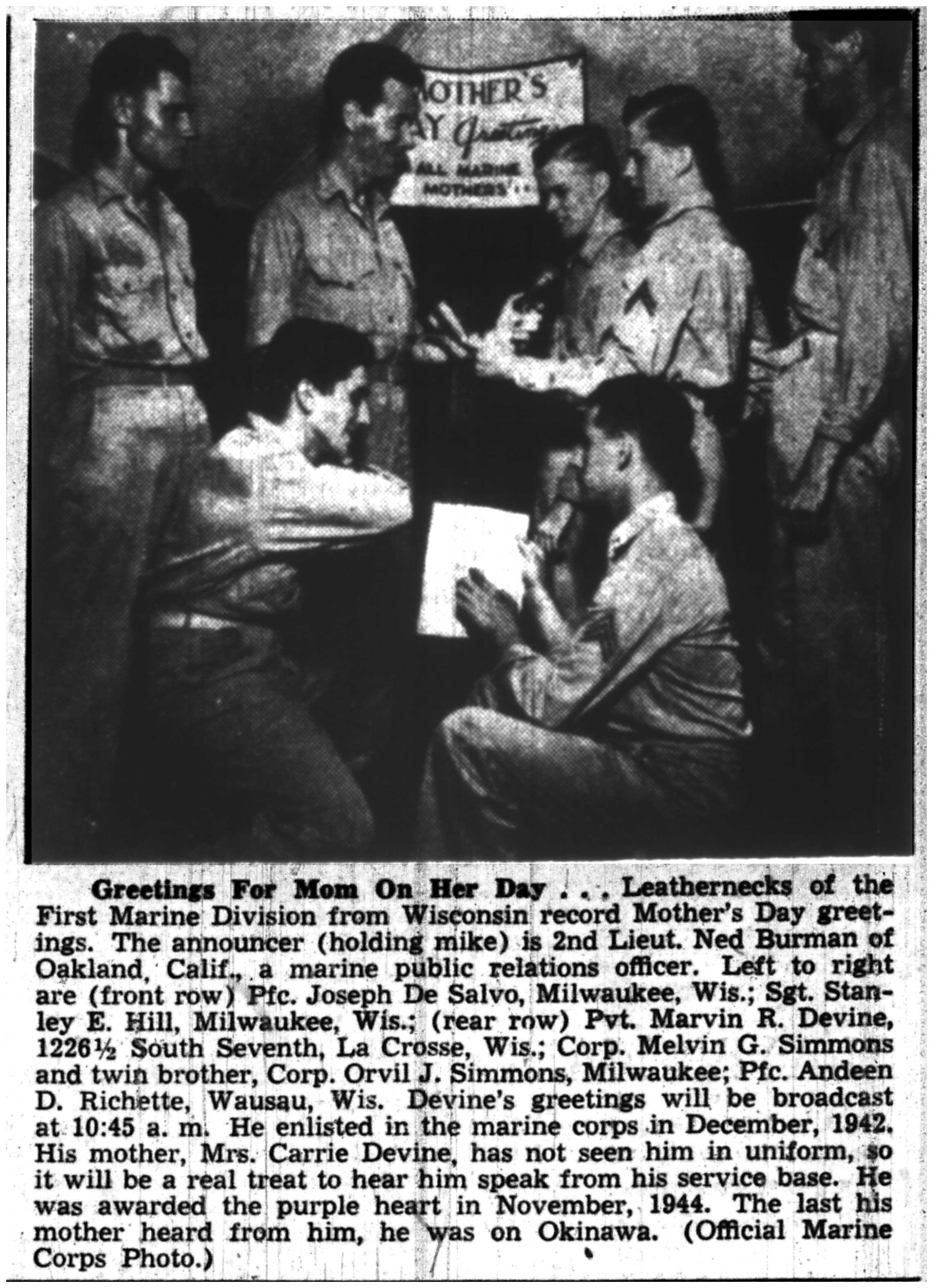 | 1945-5-6 | La Crosse Tribune p11 | |