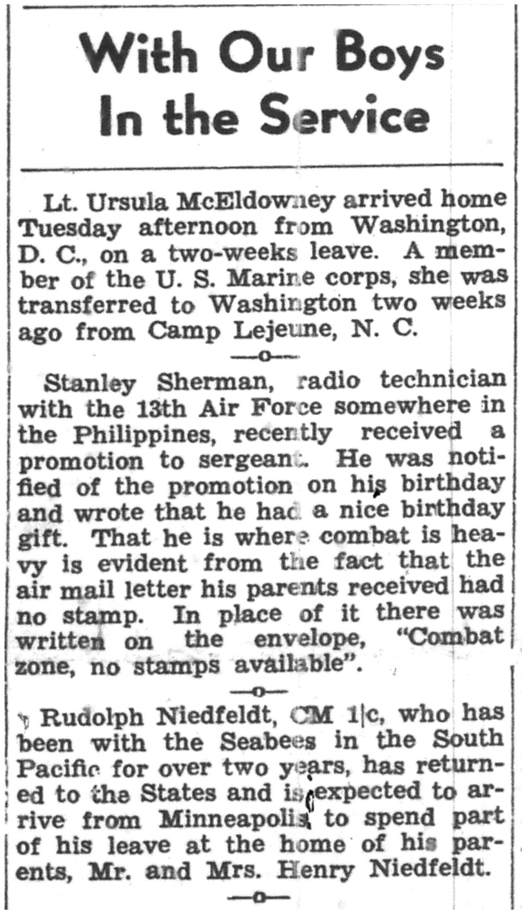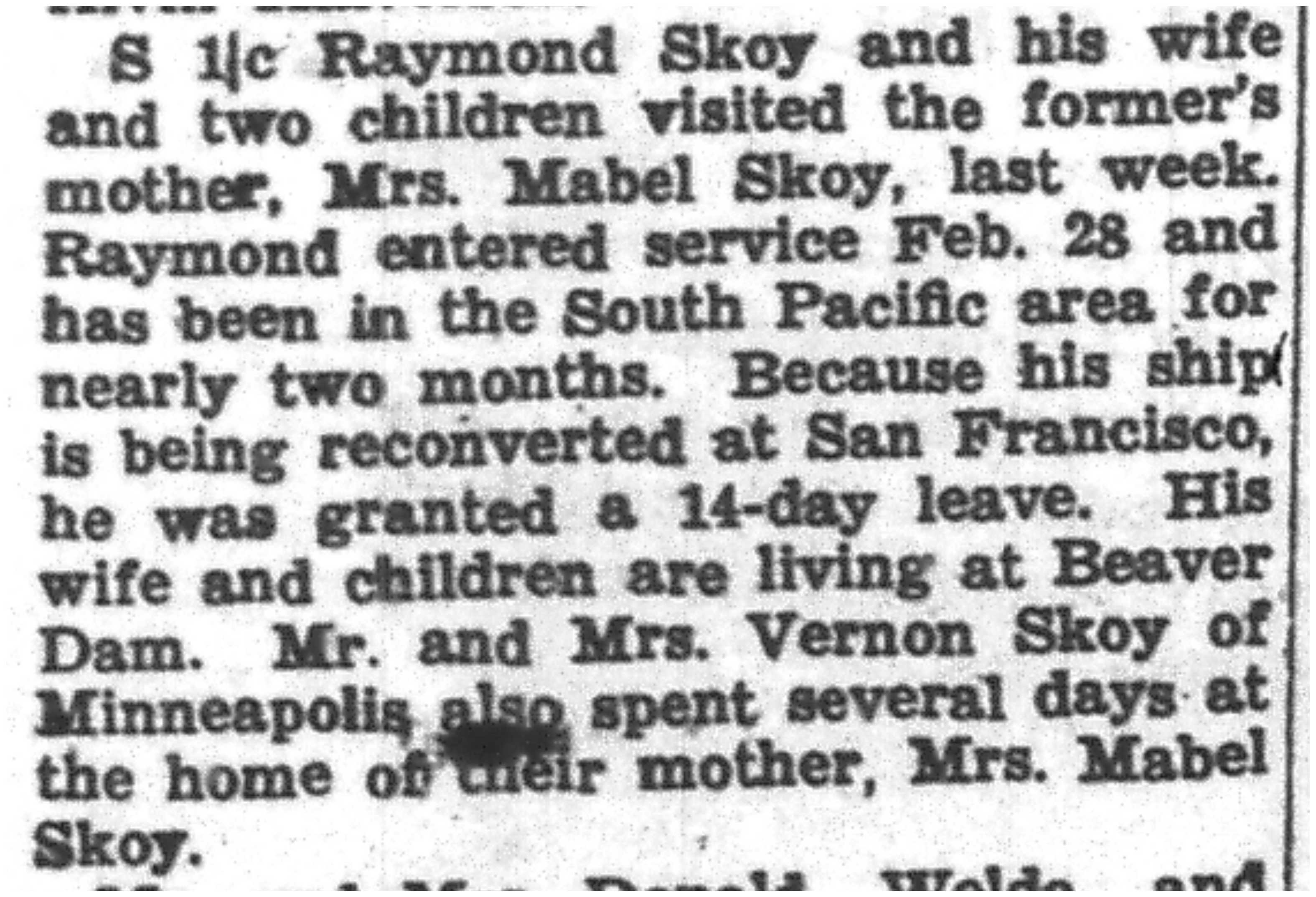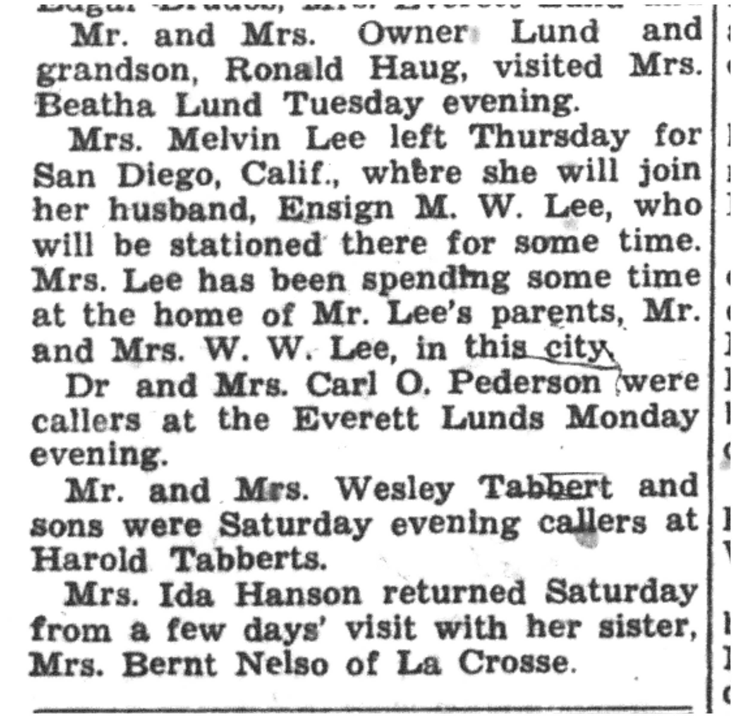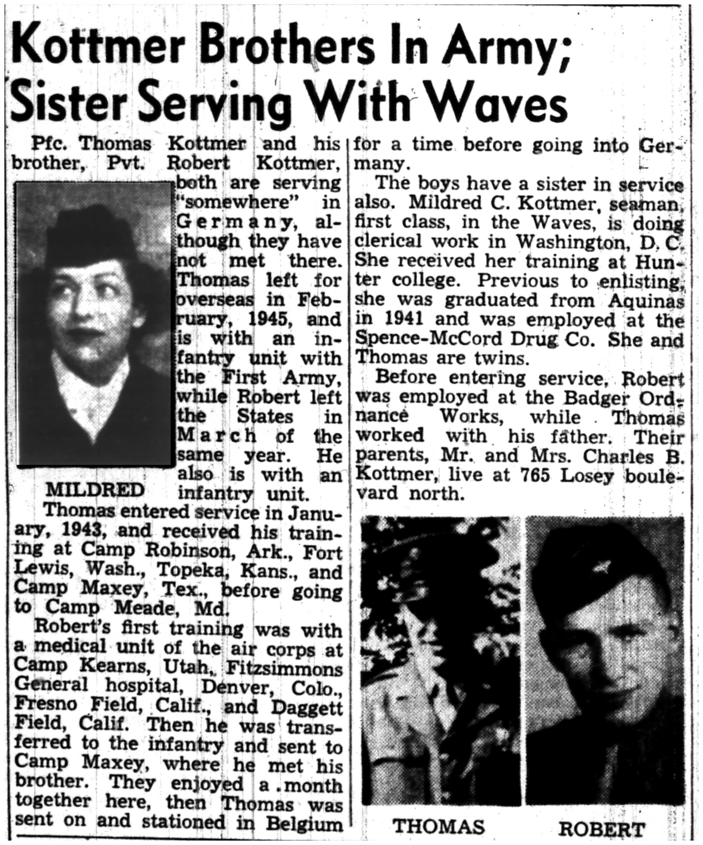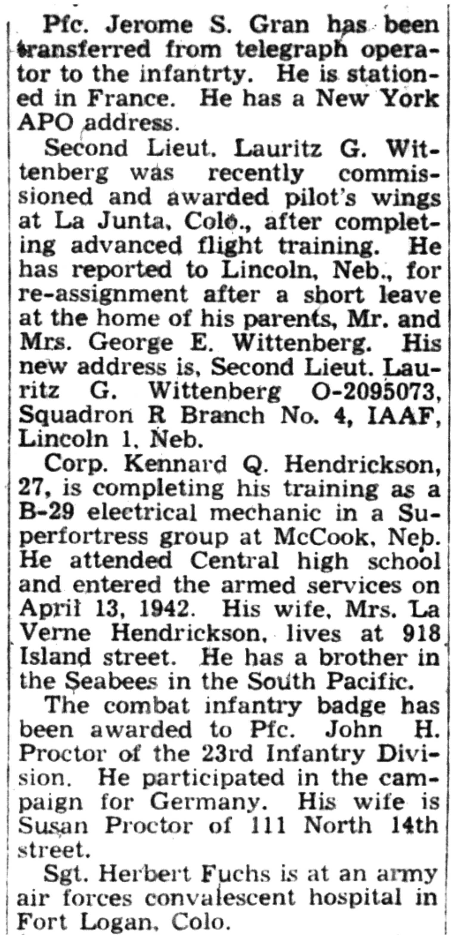 | 1945-5-6 | La Crosse Tribune p11 | |