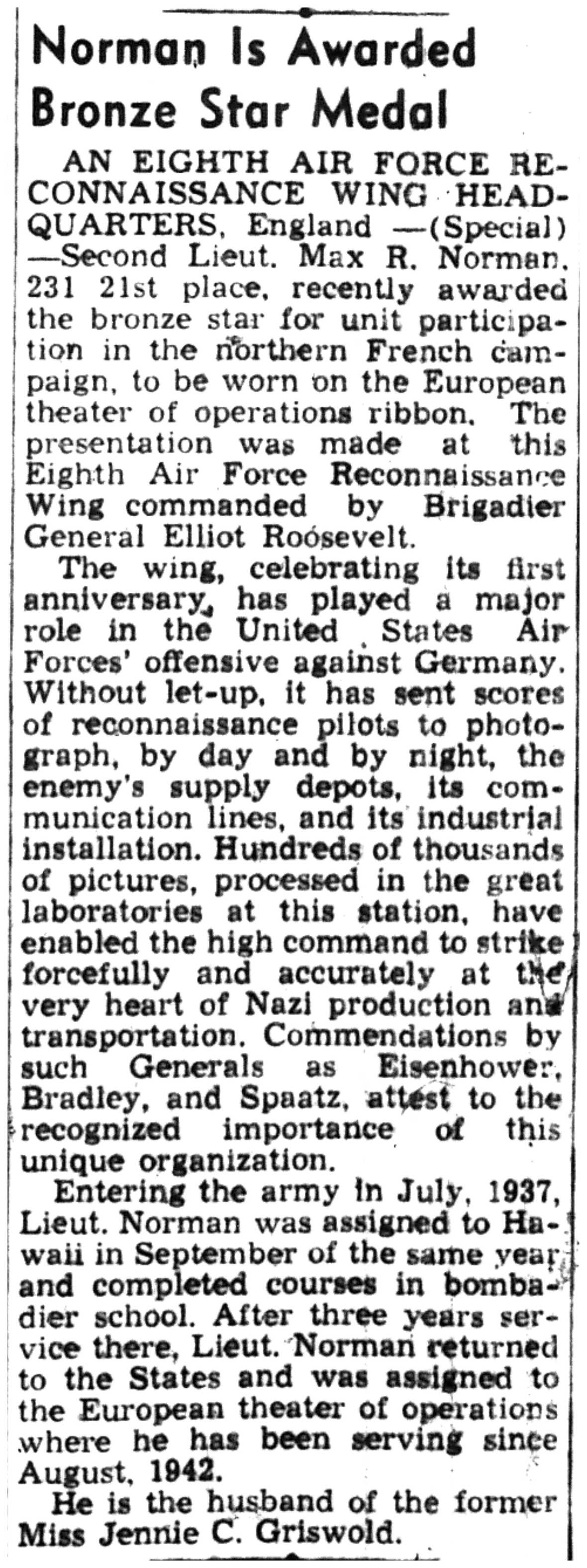 | 1945-5-25 | La Crosse Tribune p8 | |