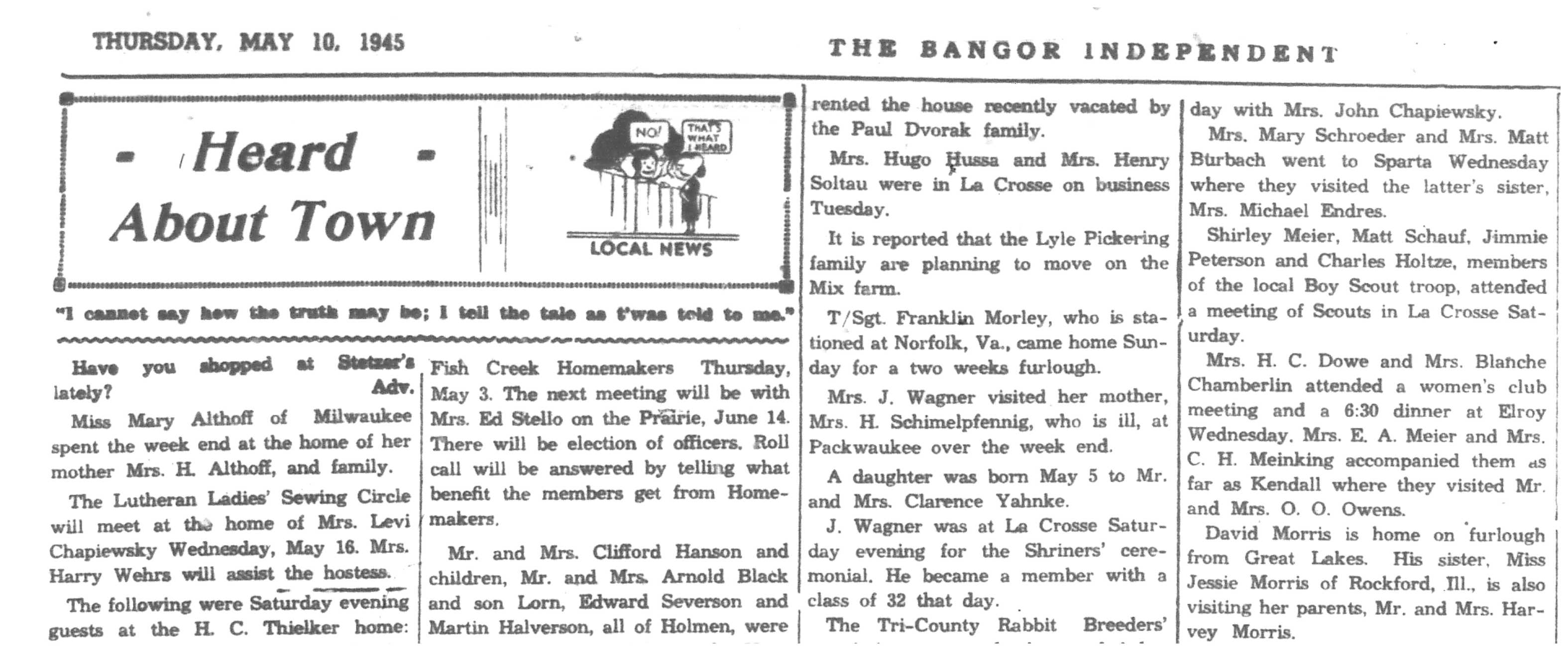 | 1945-5-10 | La Crosse Tribune p7 | |
