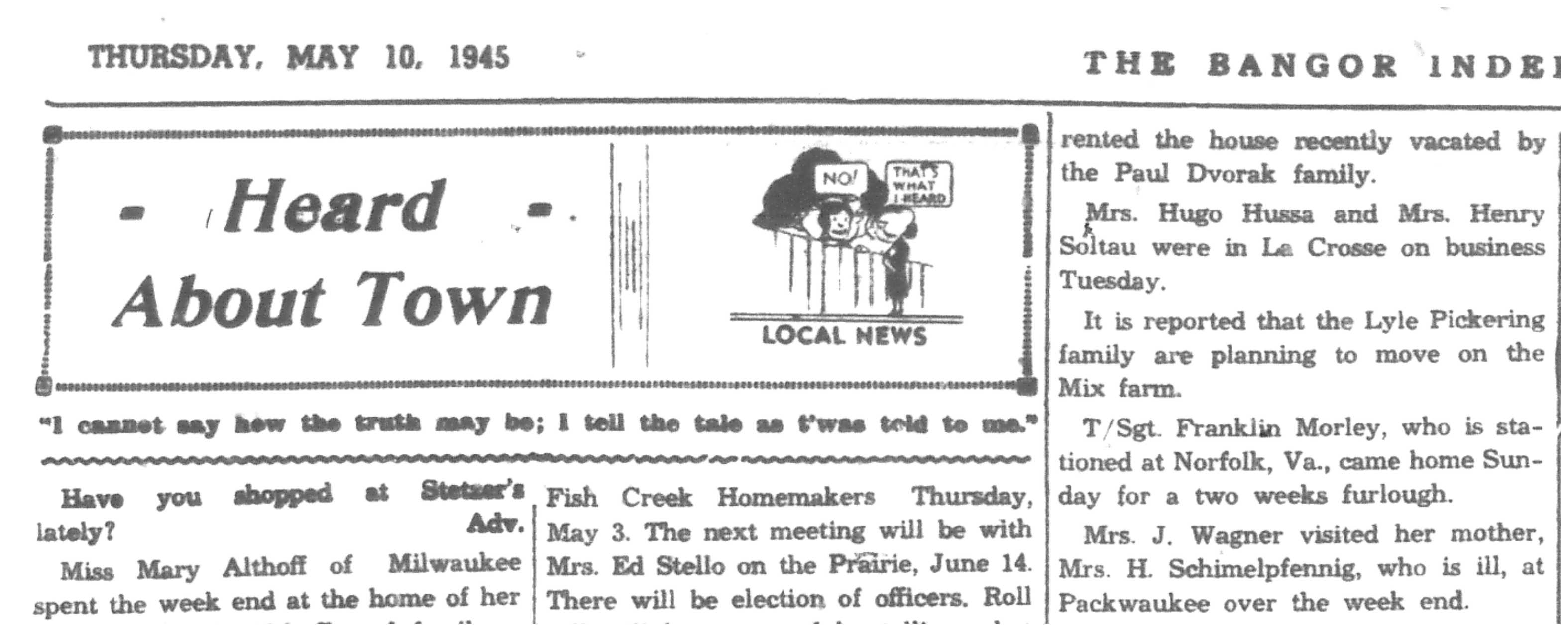 | 1945-5-10 | La Crosse Tribune p8 | |