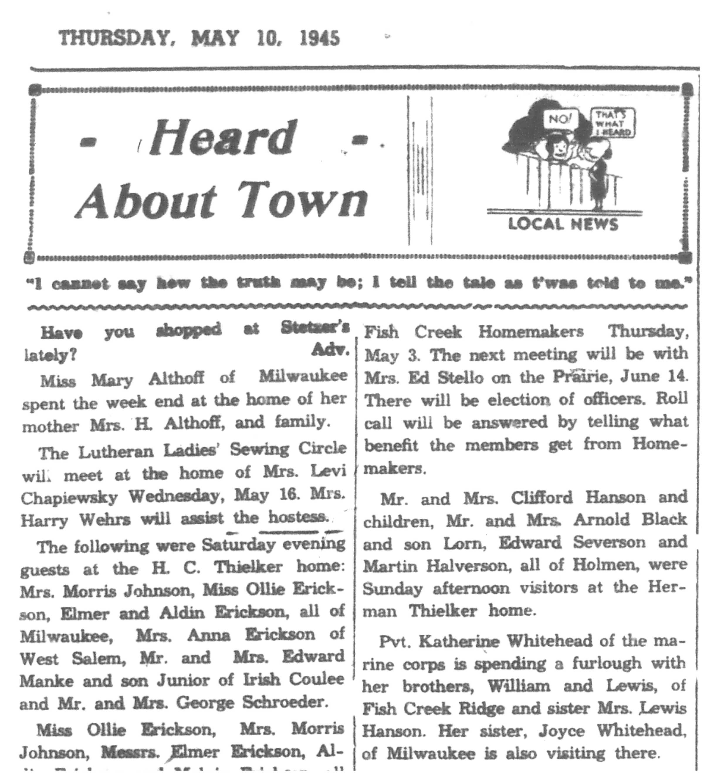 | 1945-5-20 | La Crosse Tribune p10 | |