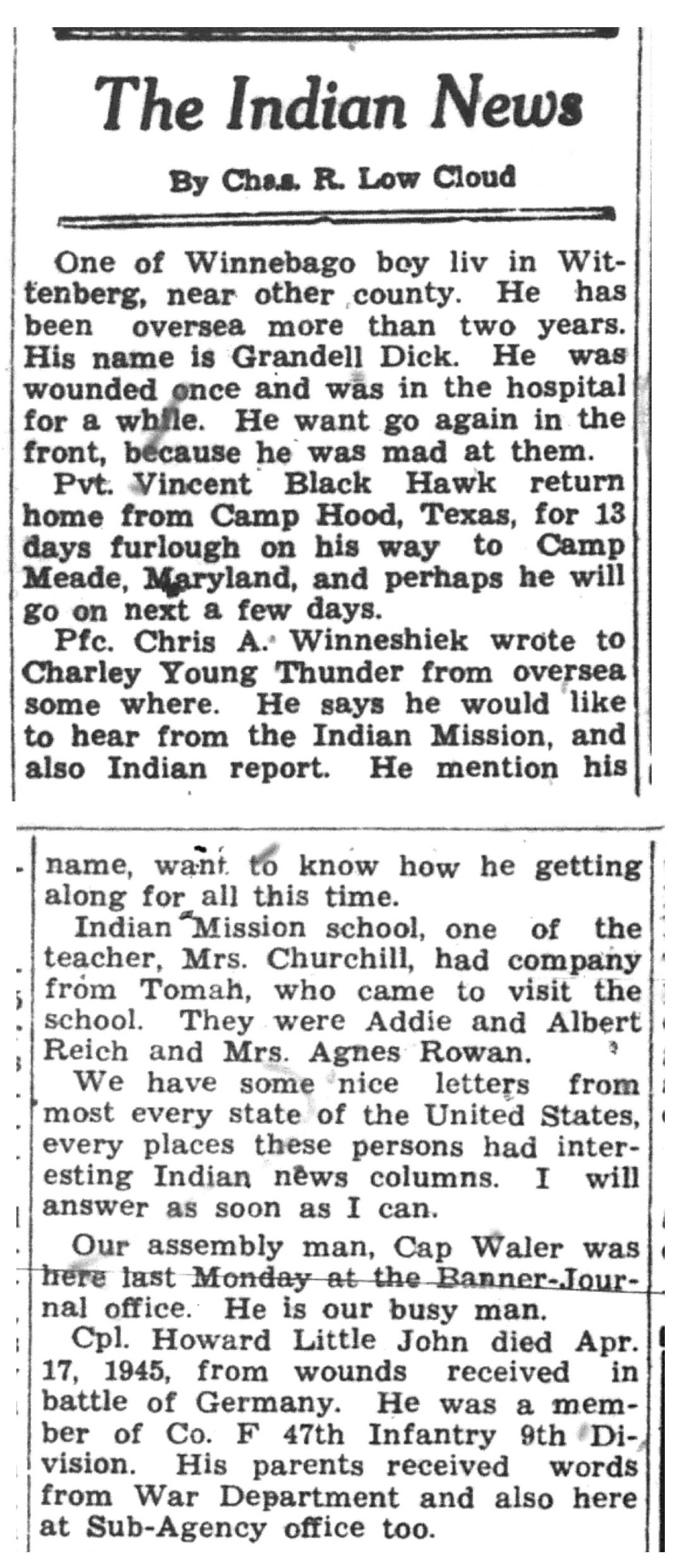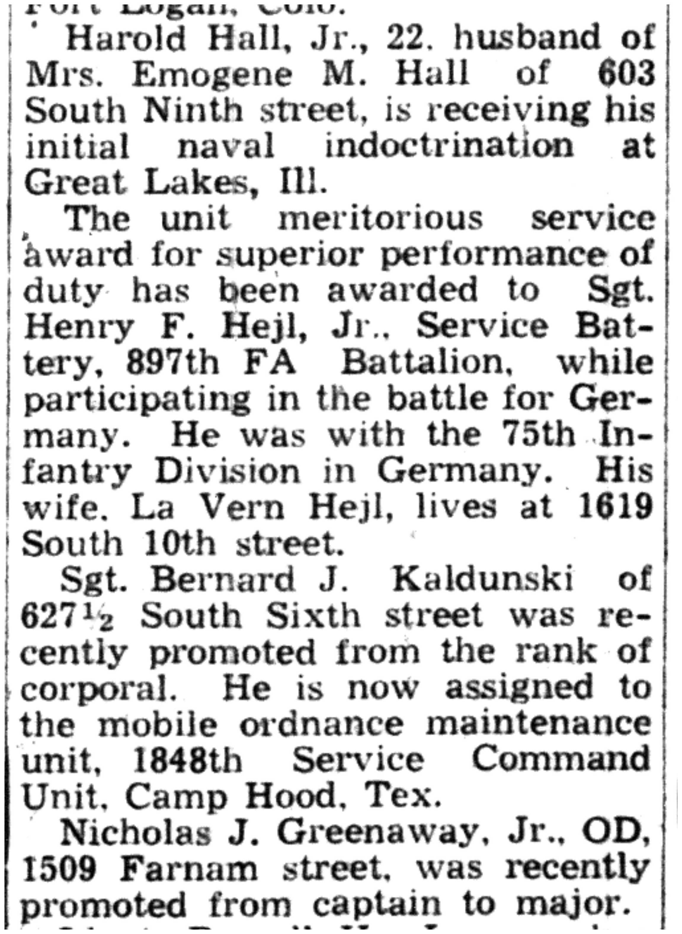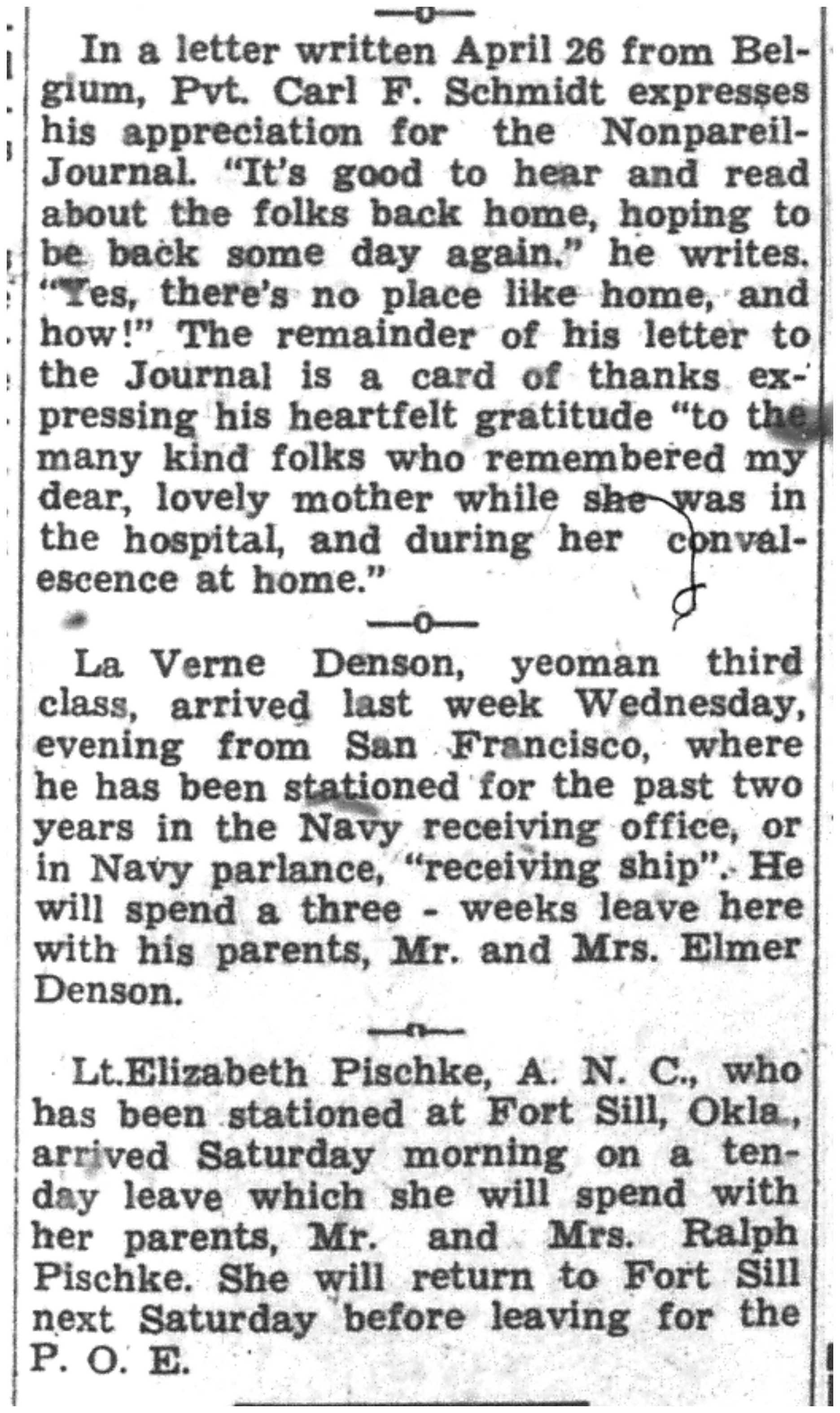 | 1945-5-31 | Non-Pareil Journal p5 |
