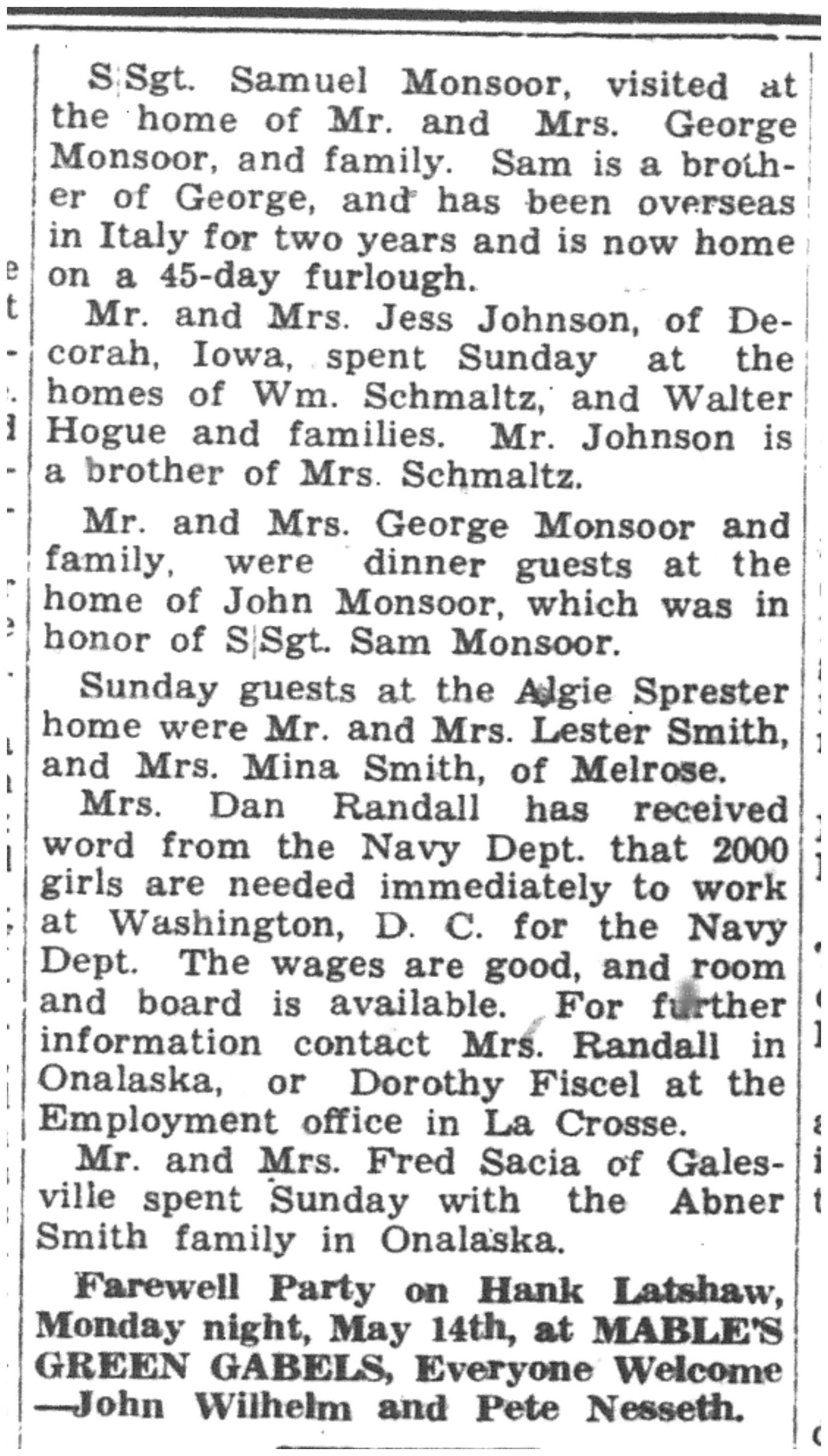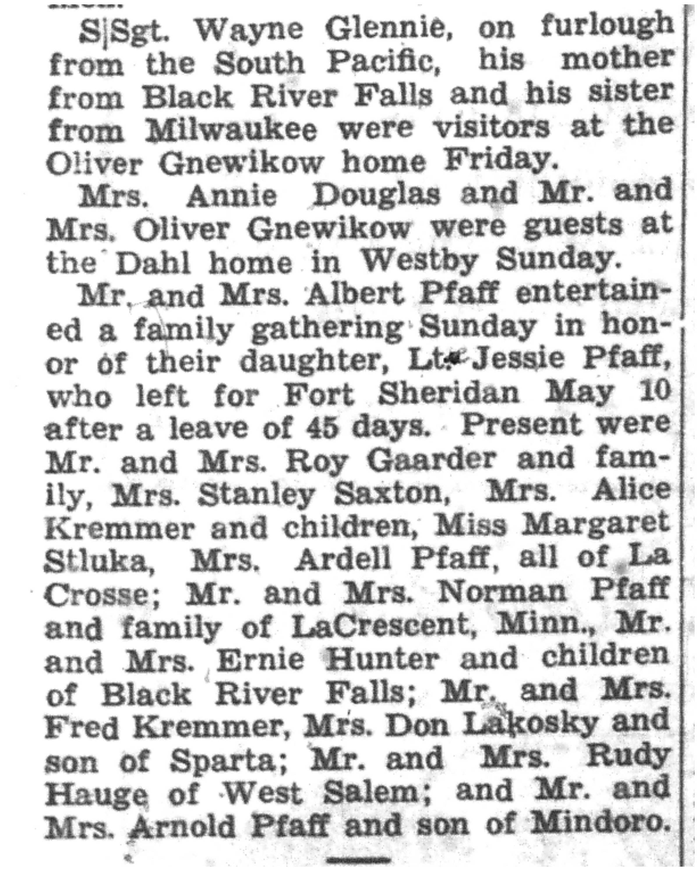 | 1945-5-6 | La Crosse Tribune p9 | |