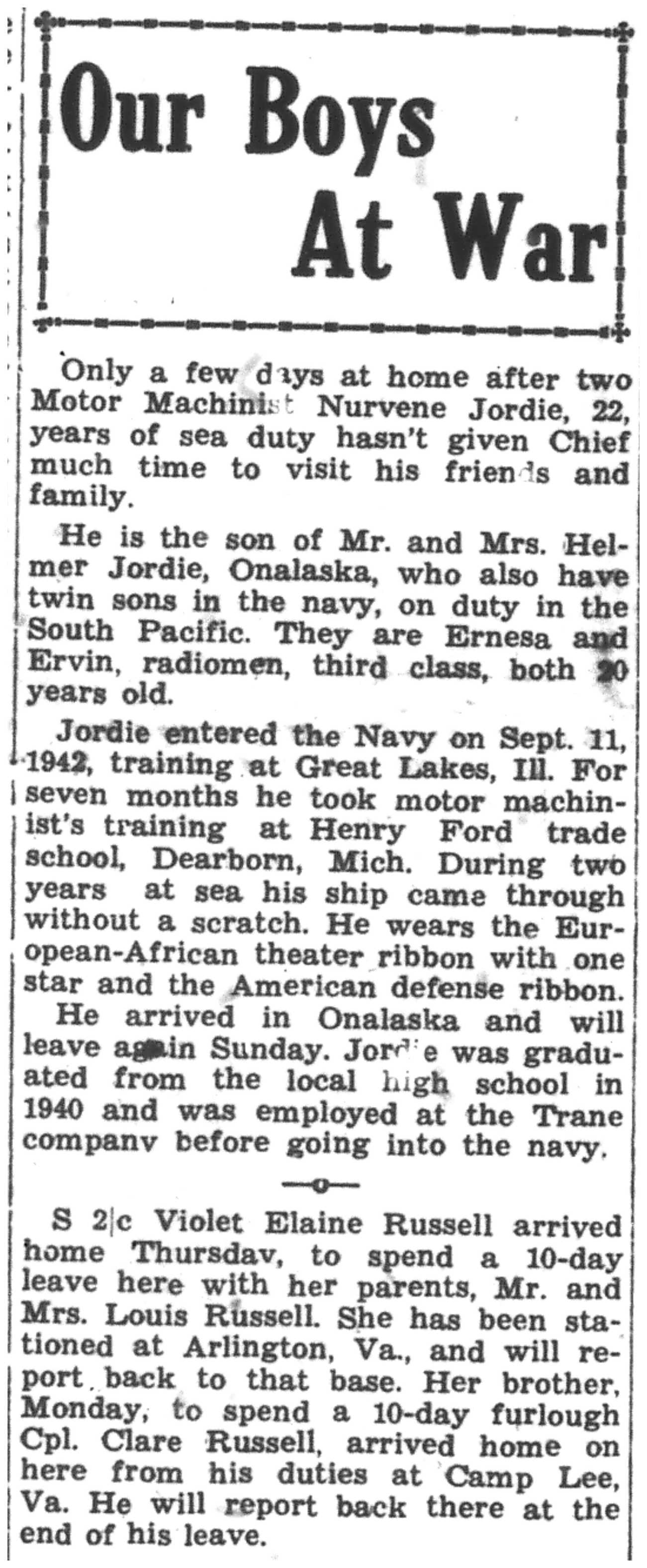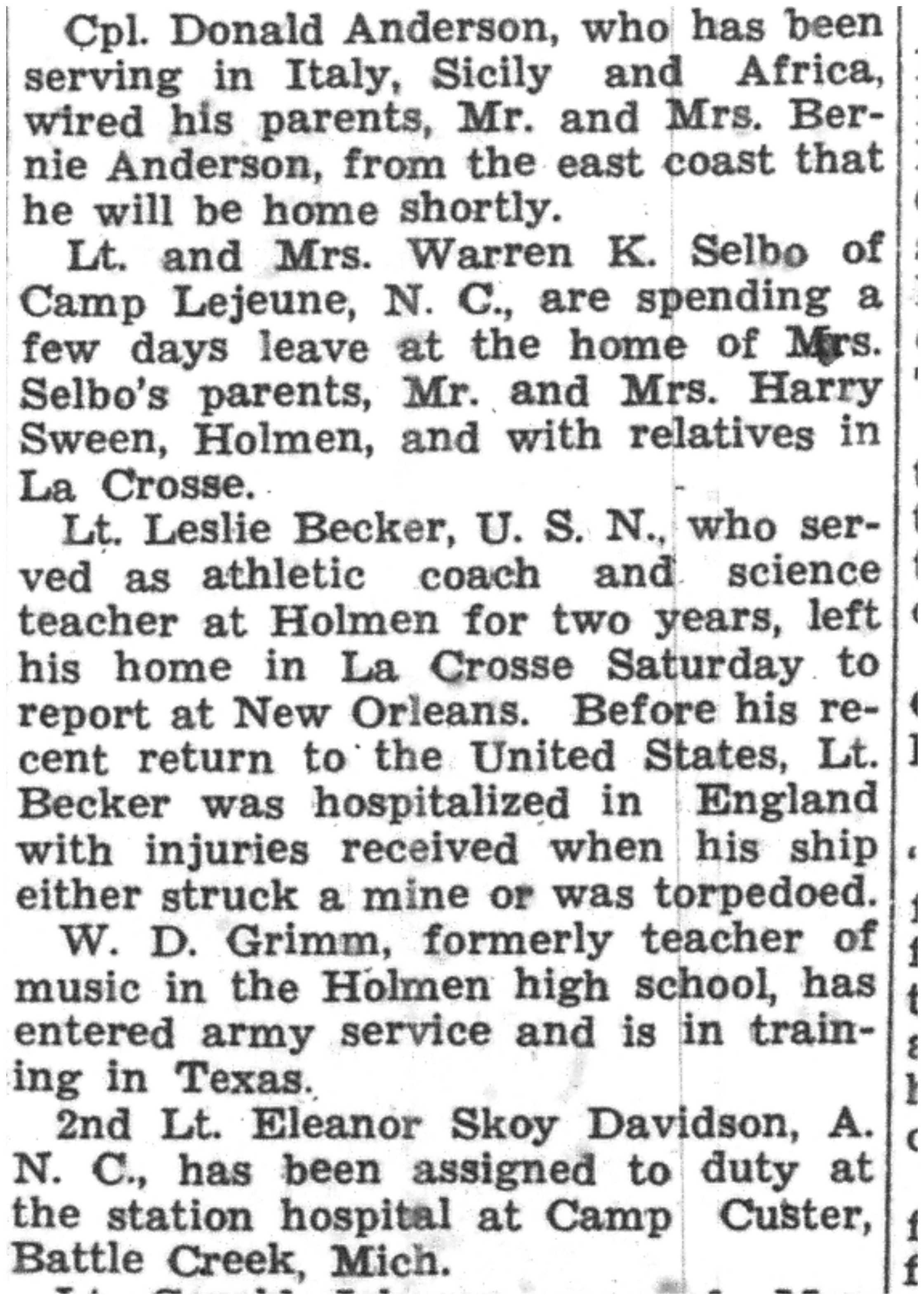 | 1945-5-31 | La Crosse Tribune p12 | |