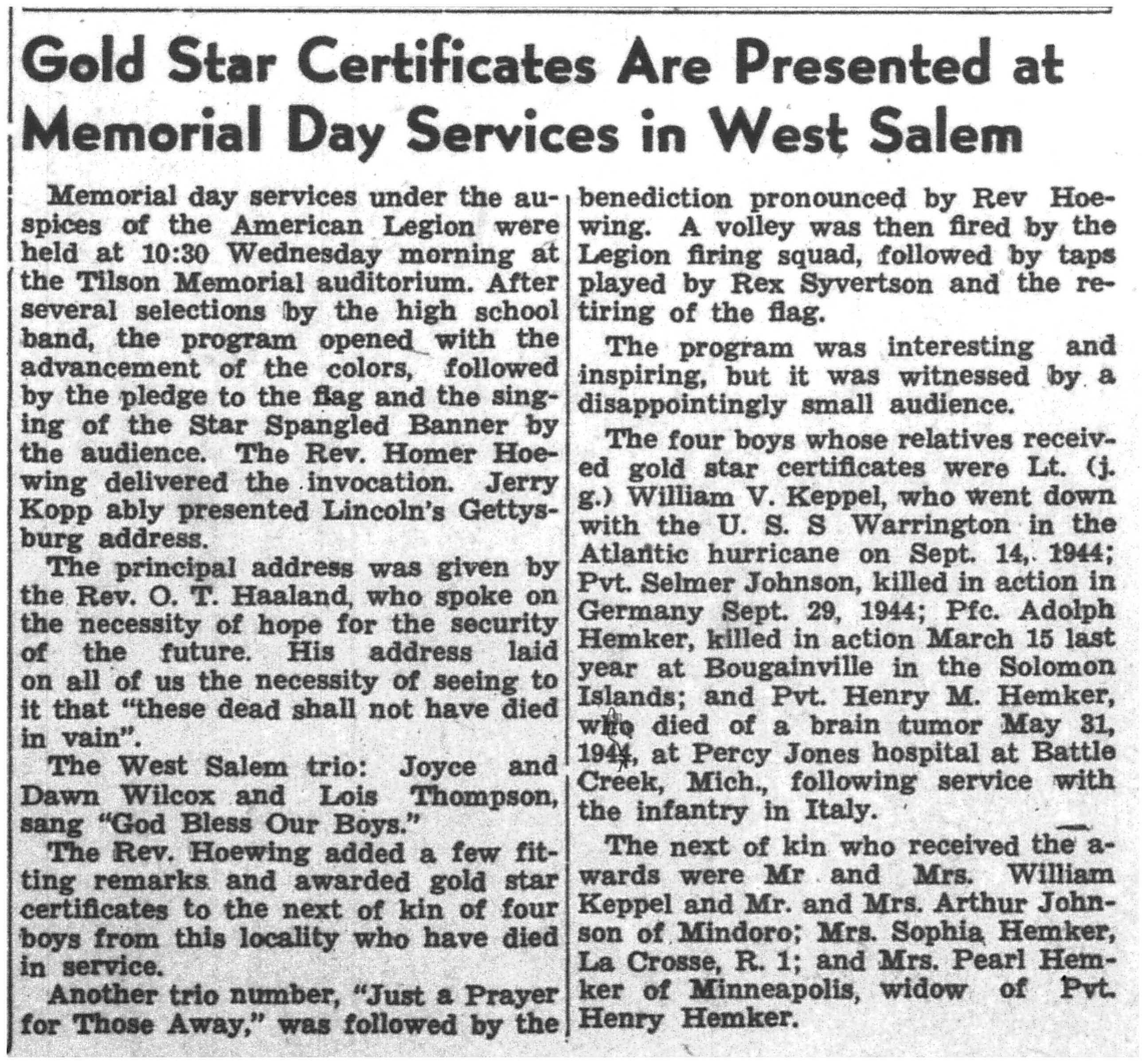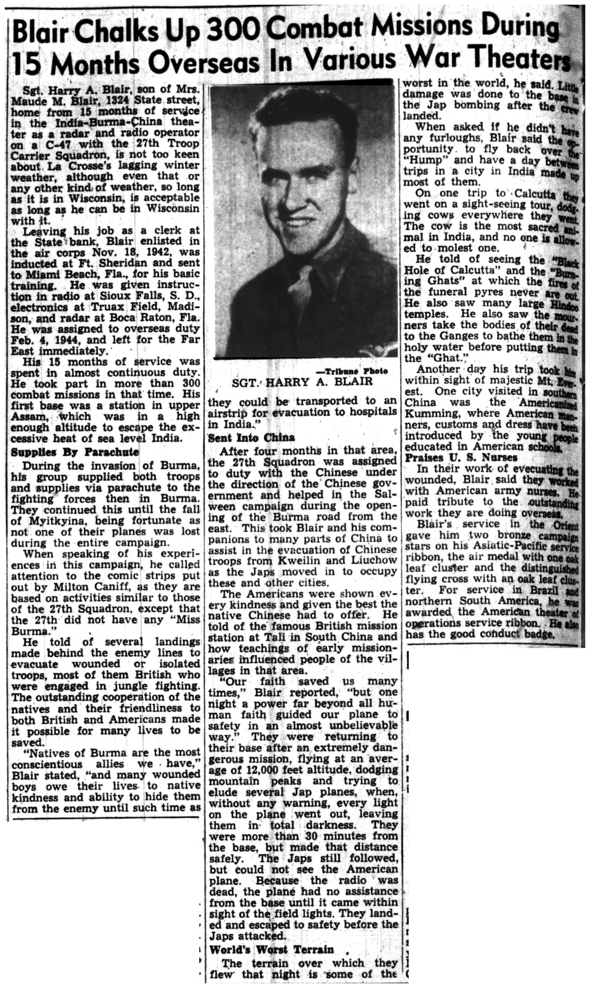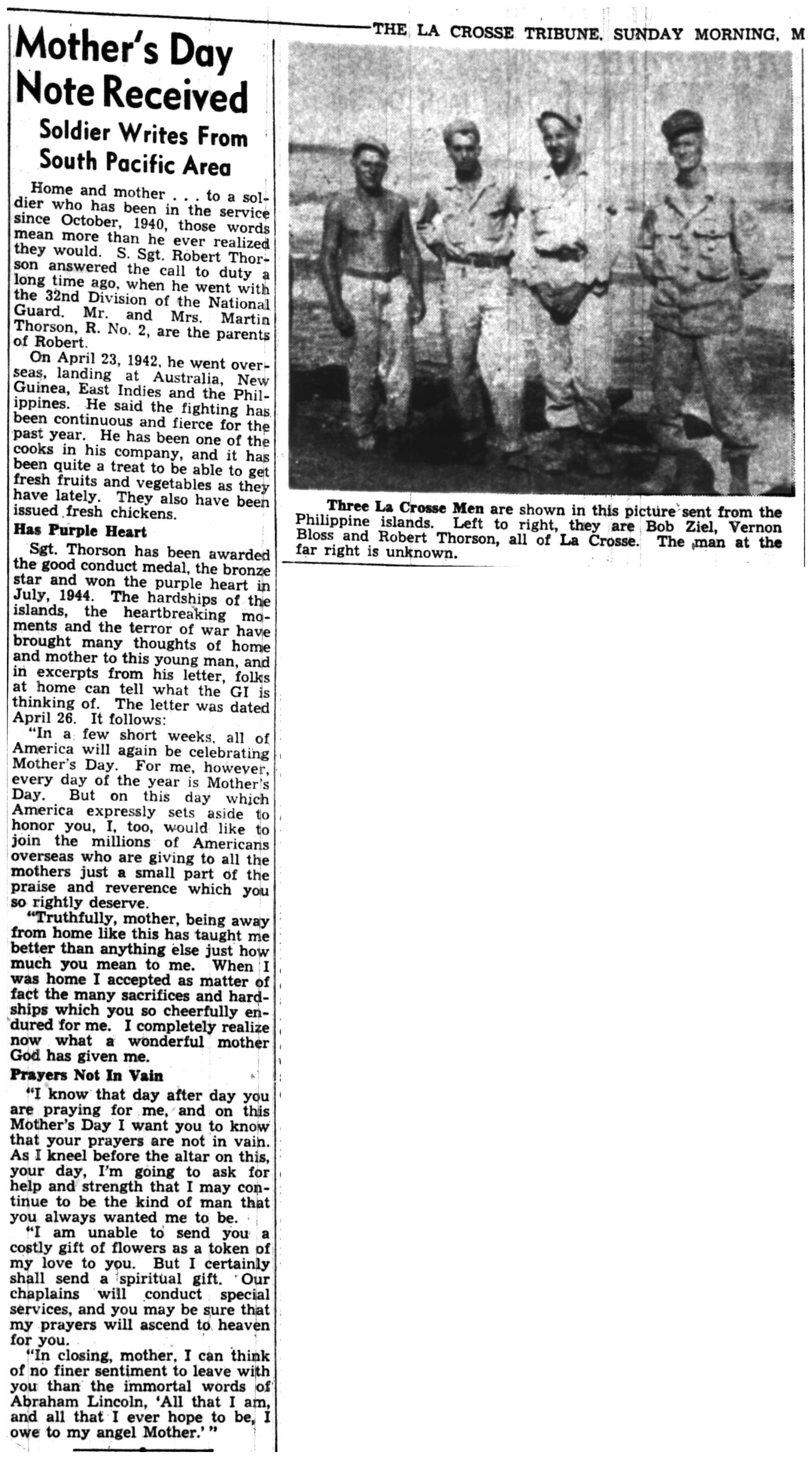 | 1945-5-6 | La Crosse Tribune p3 | |