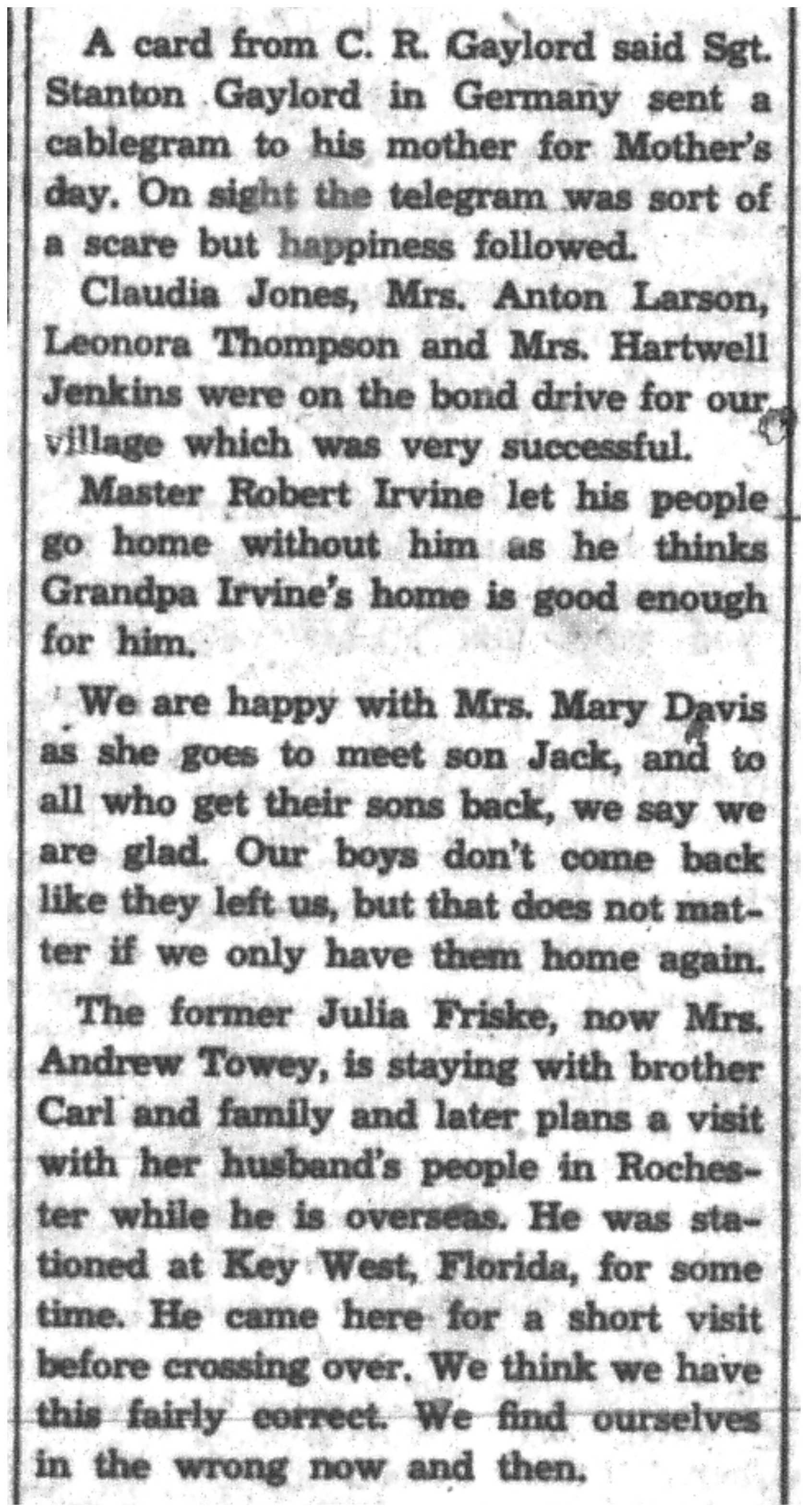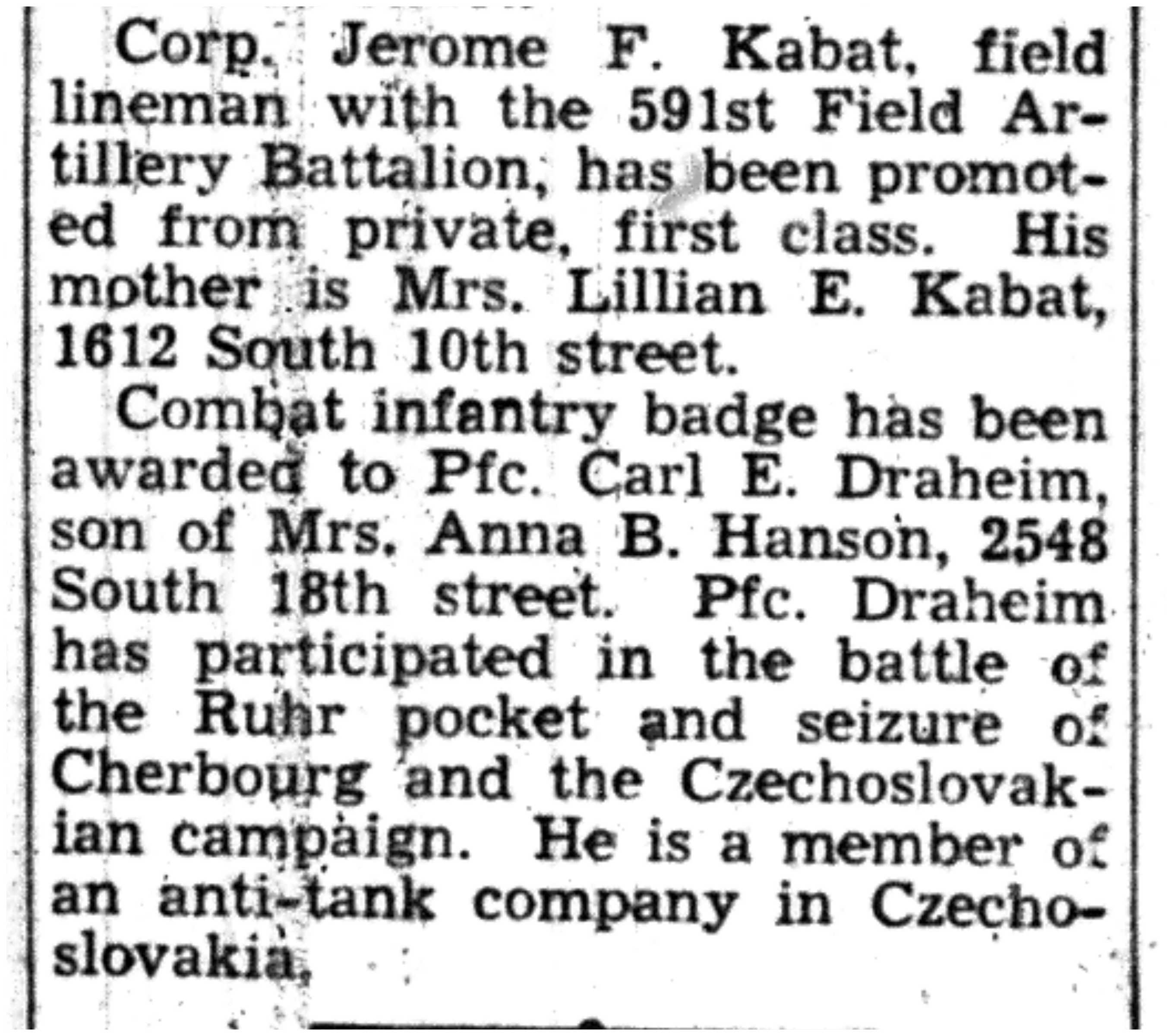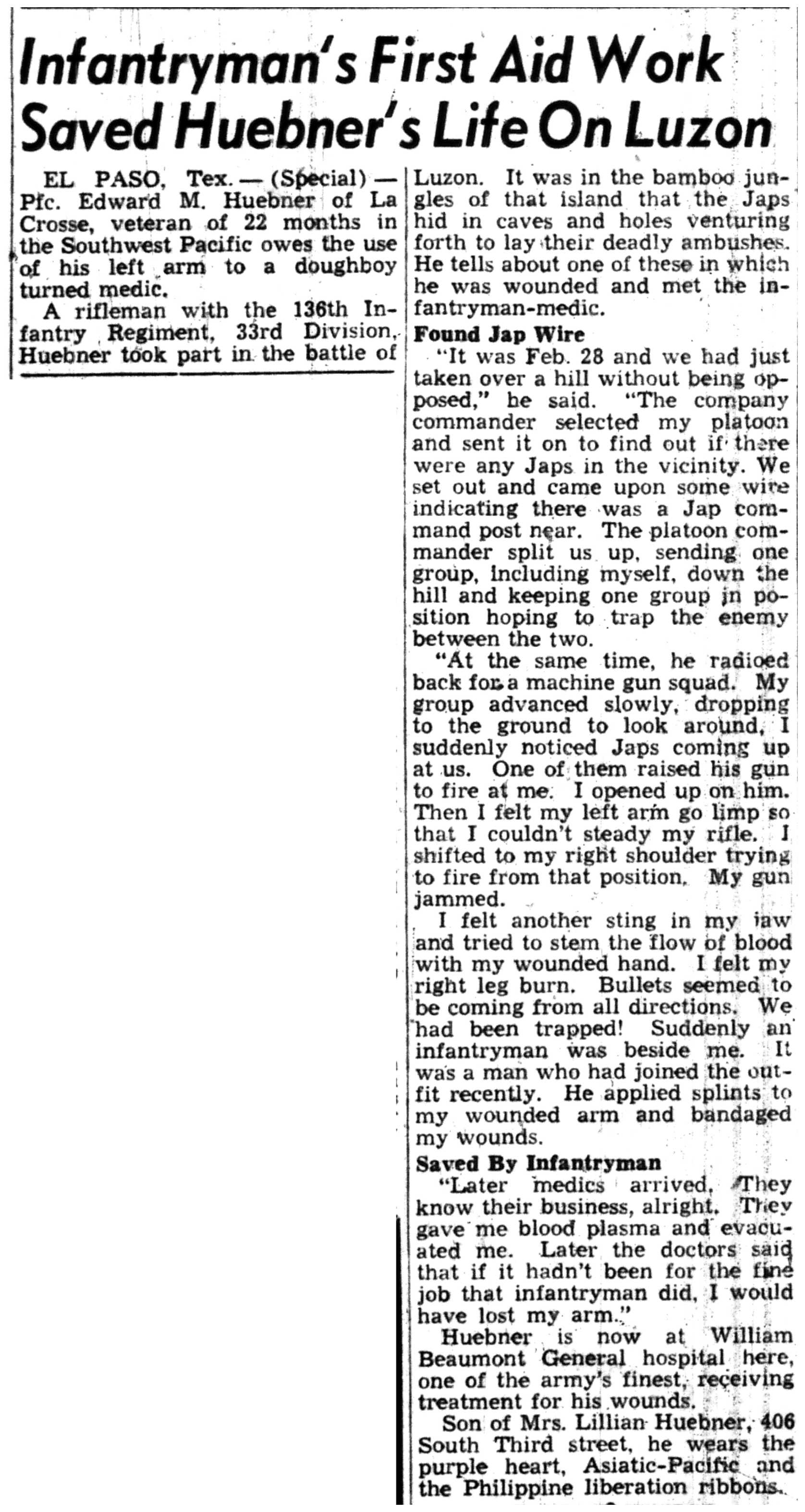 | 1945-5-6 | La Crosse Tribune p3 | |