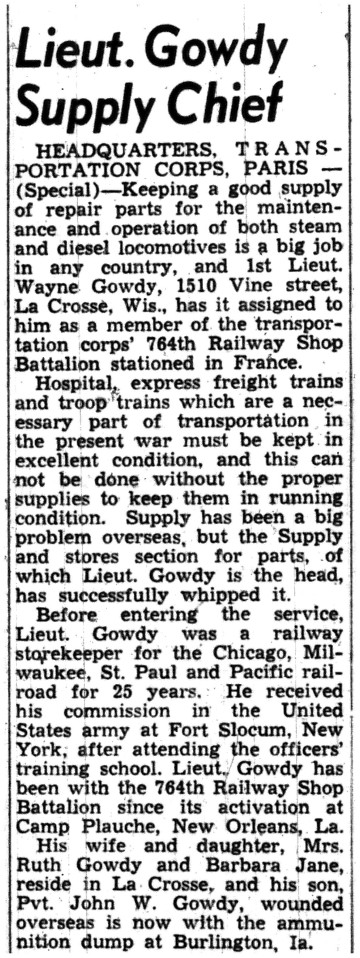 | 1945-5-3 | La Crosse Tribune p15 | |