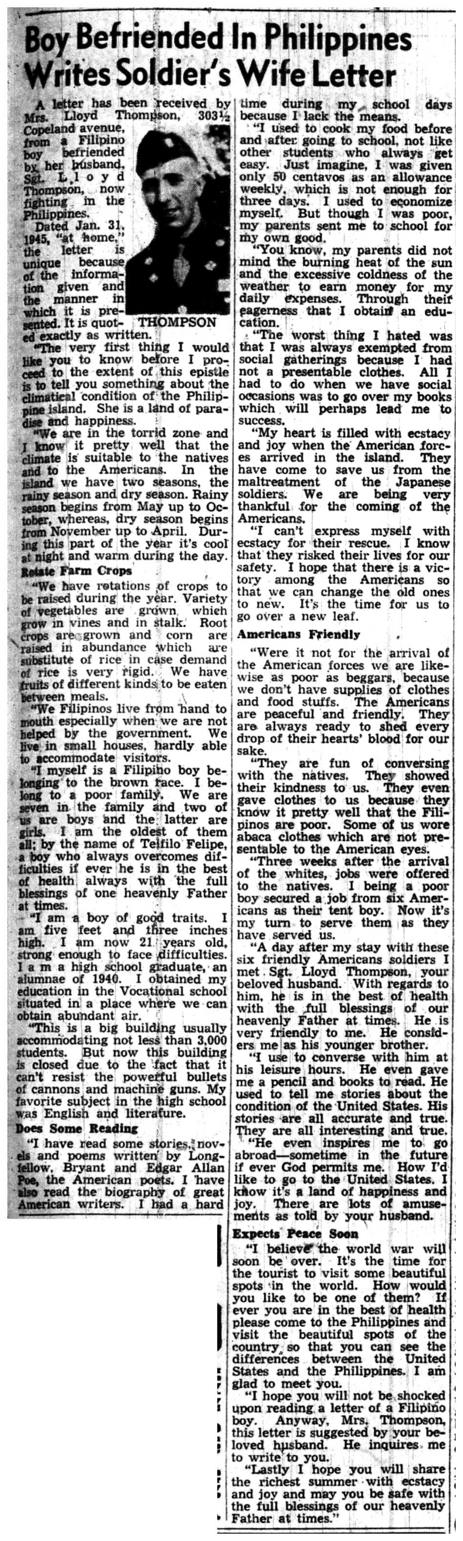| 1945-5-10 | Non-Pareil Journal p5 | |