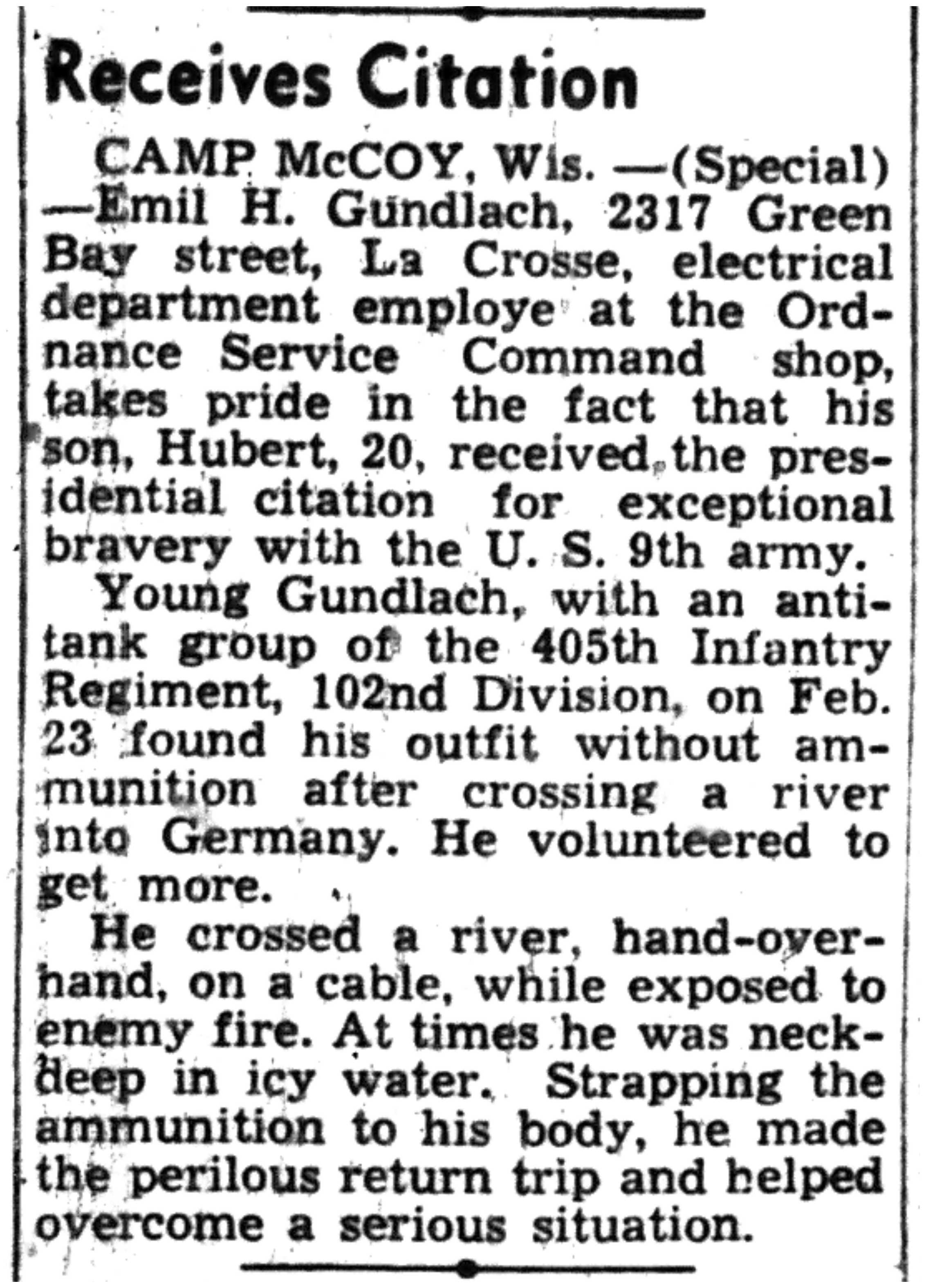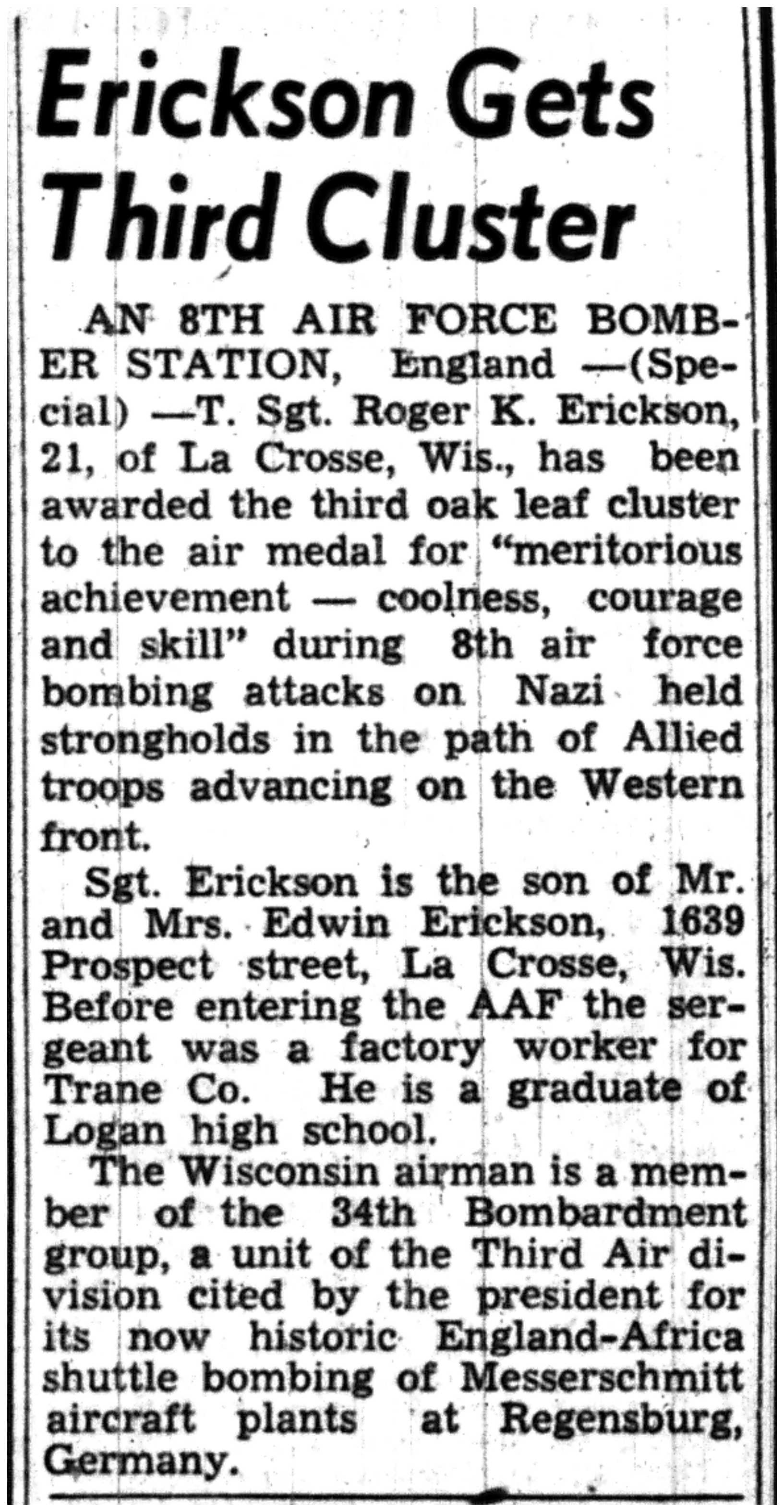 | 1945-5-2 | La Crosse Tribune p10 | |
