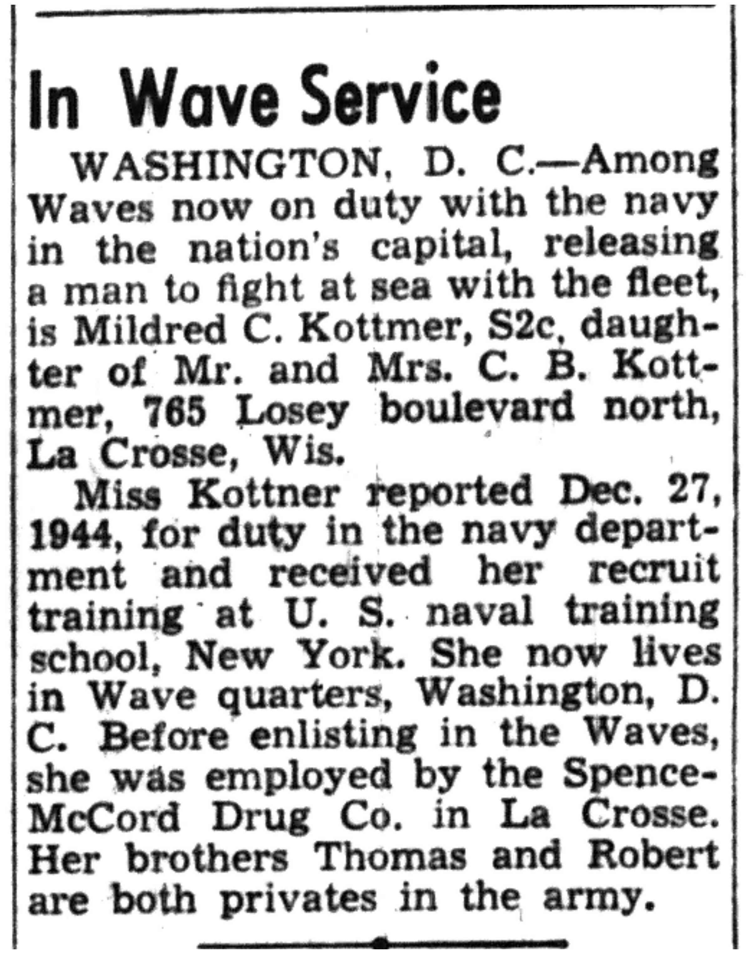 | 1945-5-11 | La Crosse Tribune p9 | |