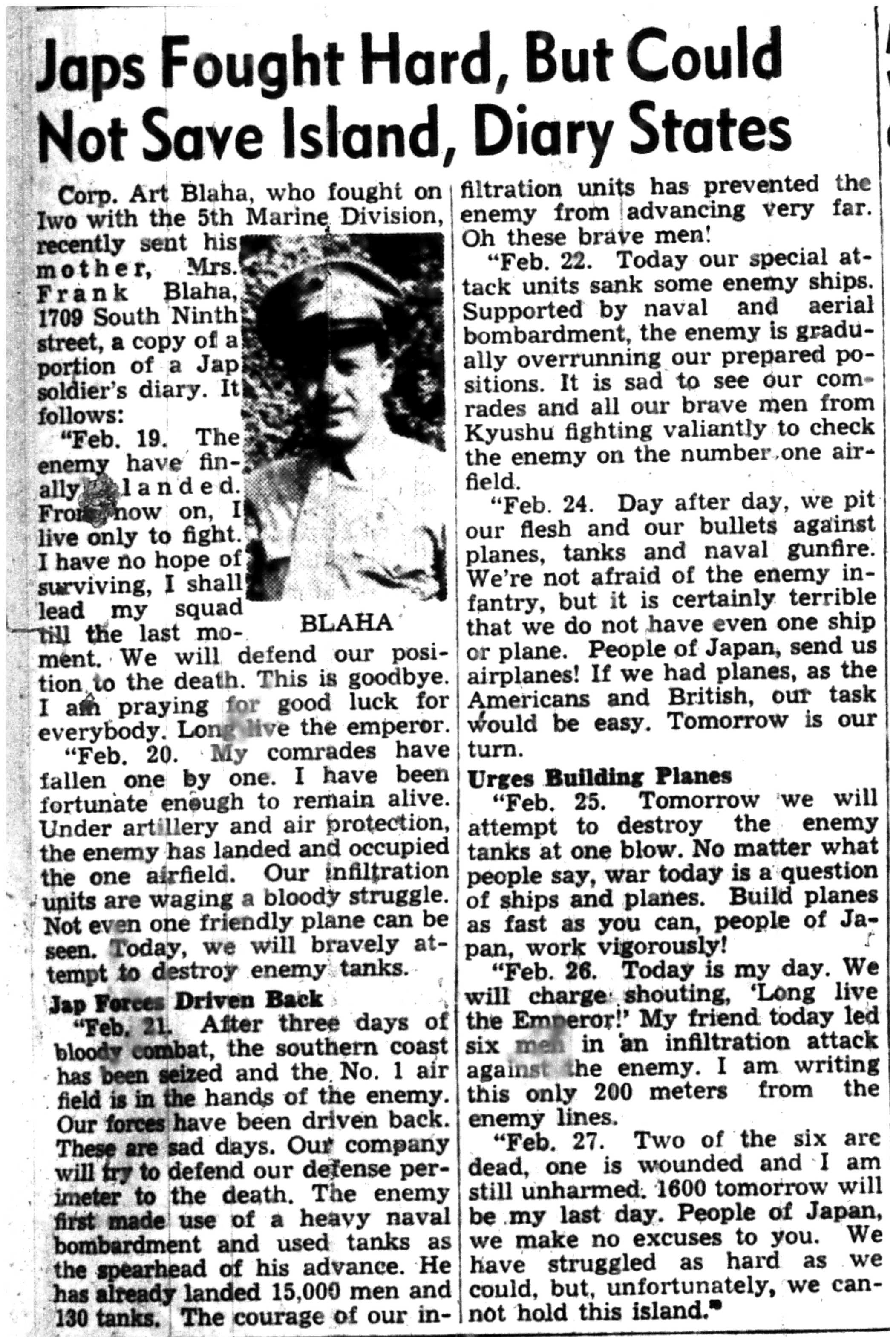 | 1945-5-10 | Non-Pareil Journal p1 | |