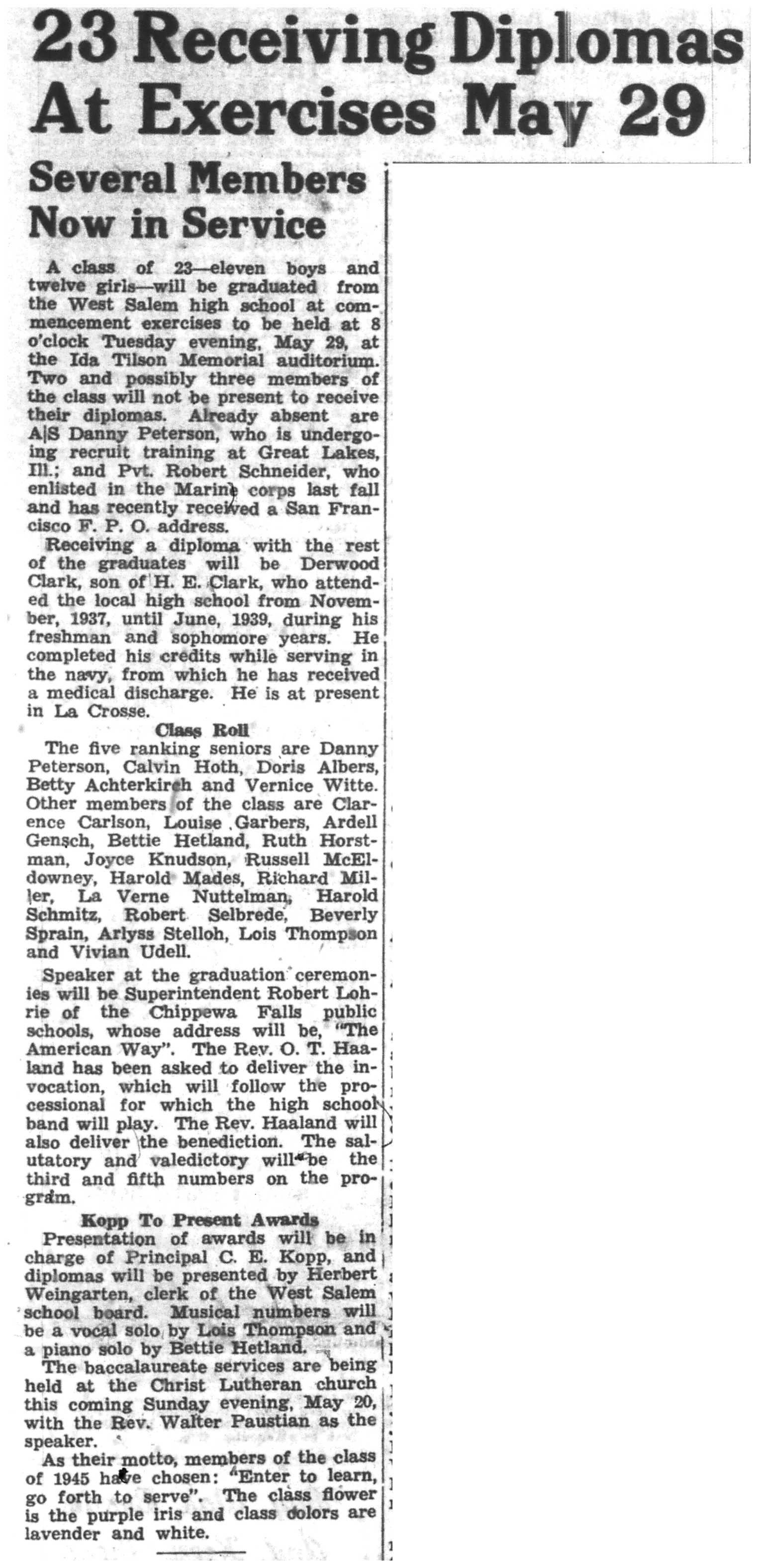 | 1945-5-23 | La Crosse Tribune p10 | |