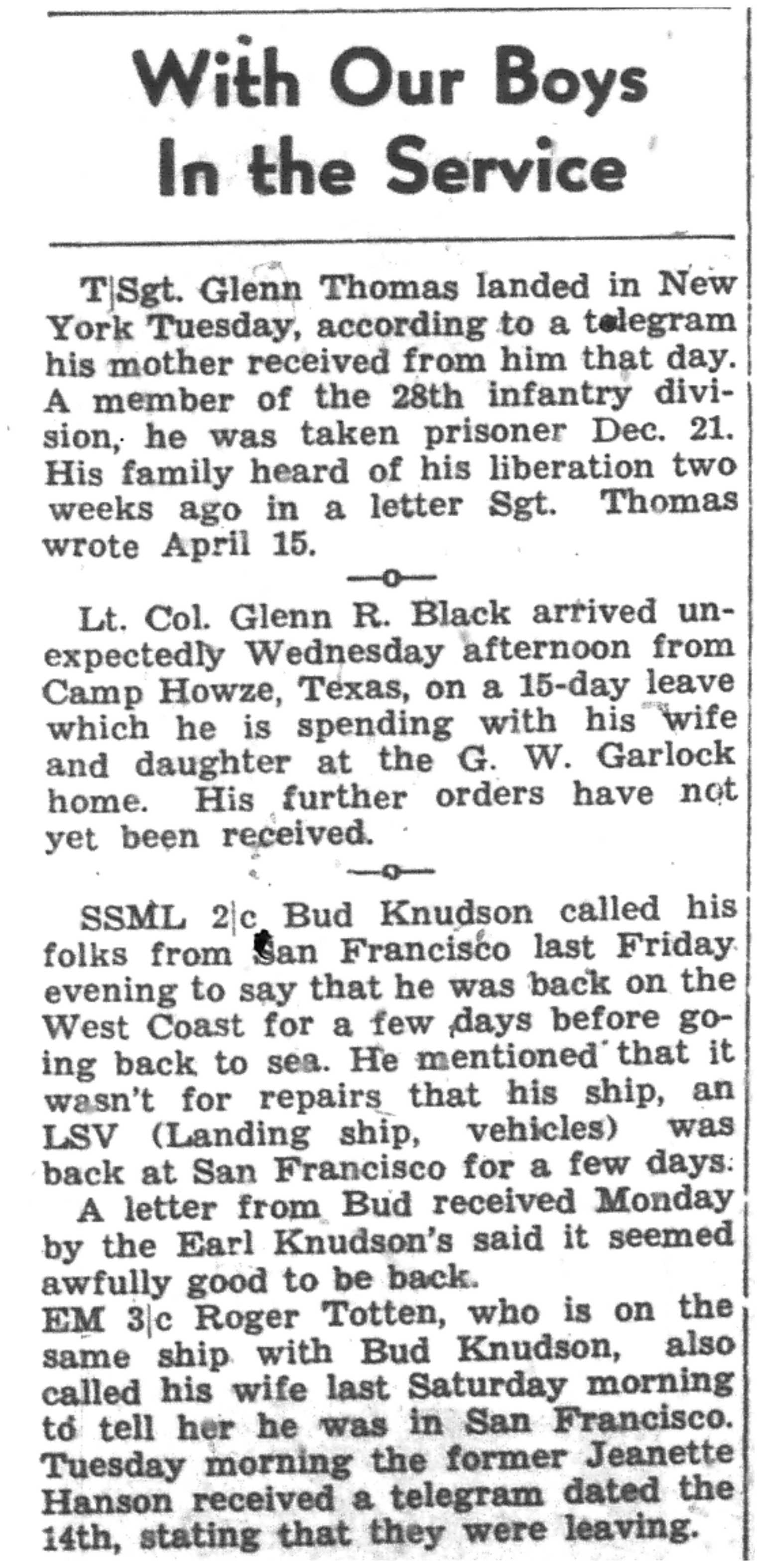 | 1945-5-3 | La Crosse Tribune p4 | |