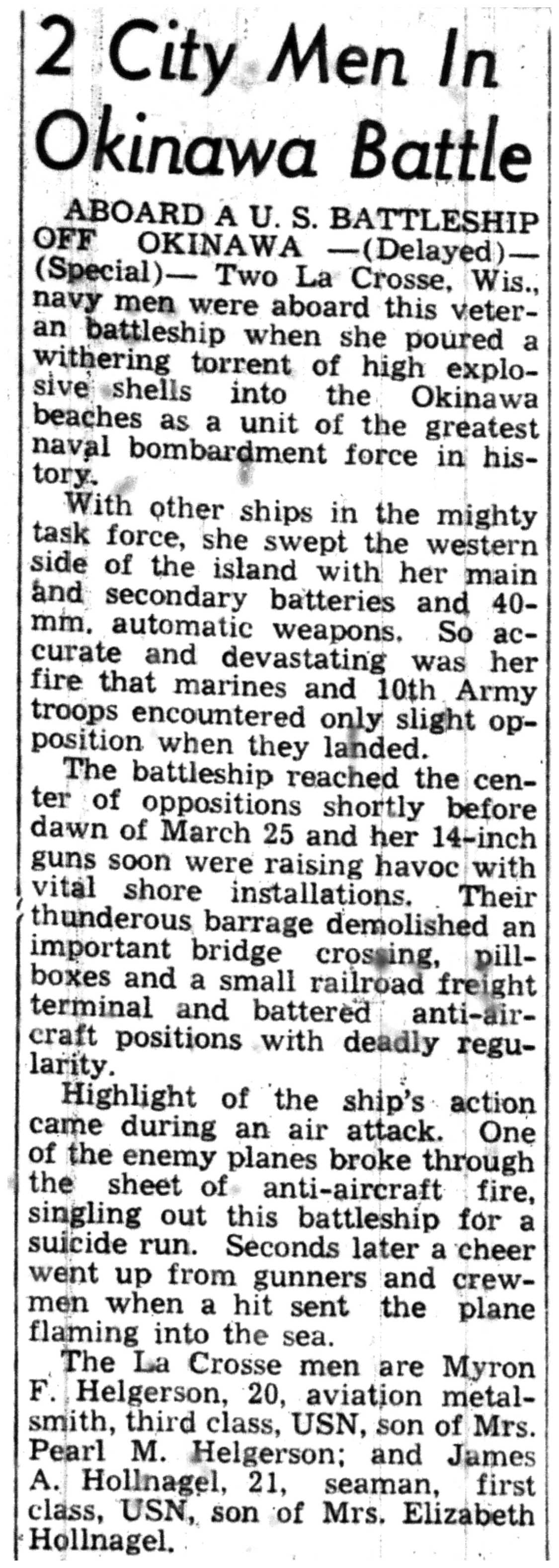 | 1945-5-4 | La Crosse Tribune p2 | |