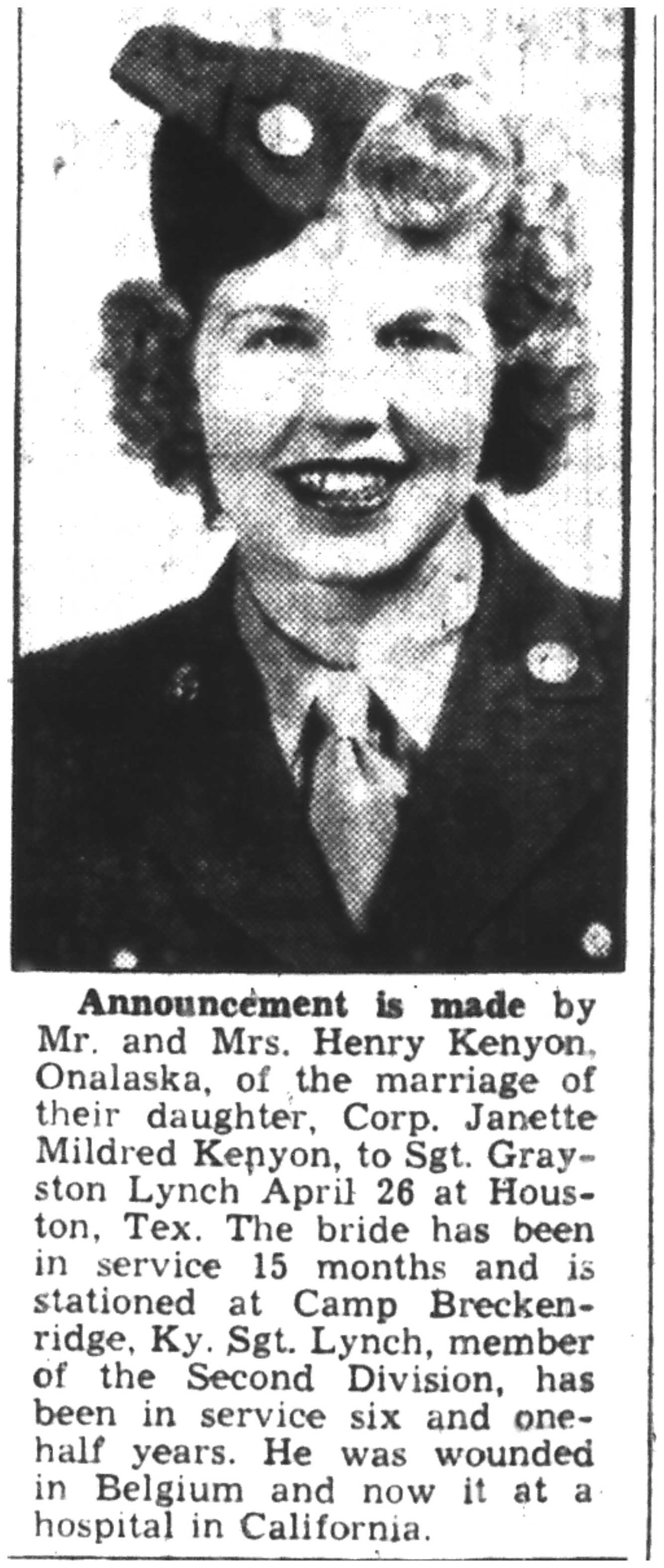 | 1945-5-11 | La Crosse Tribune p12 | |