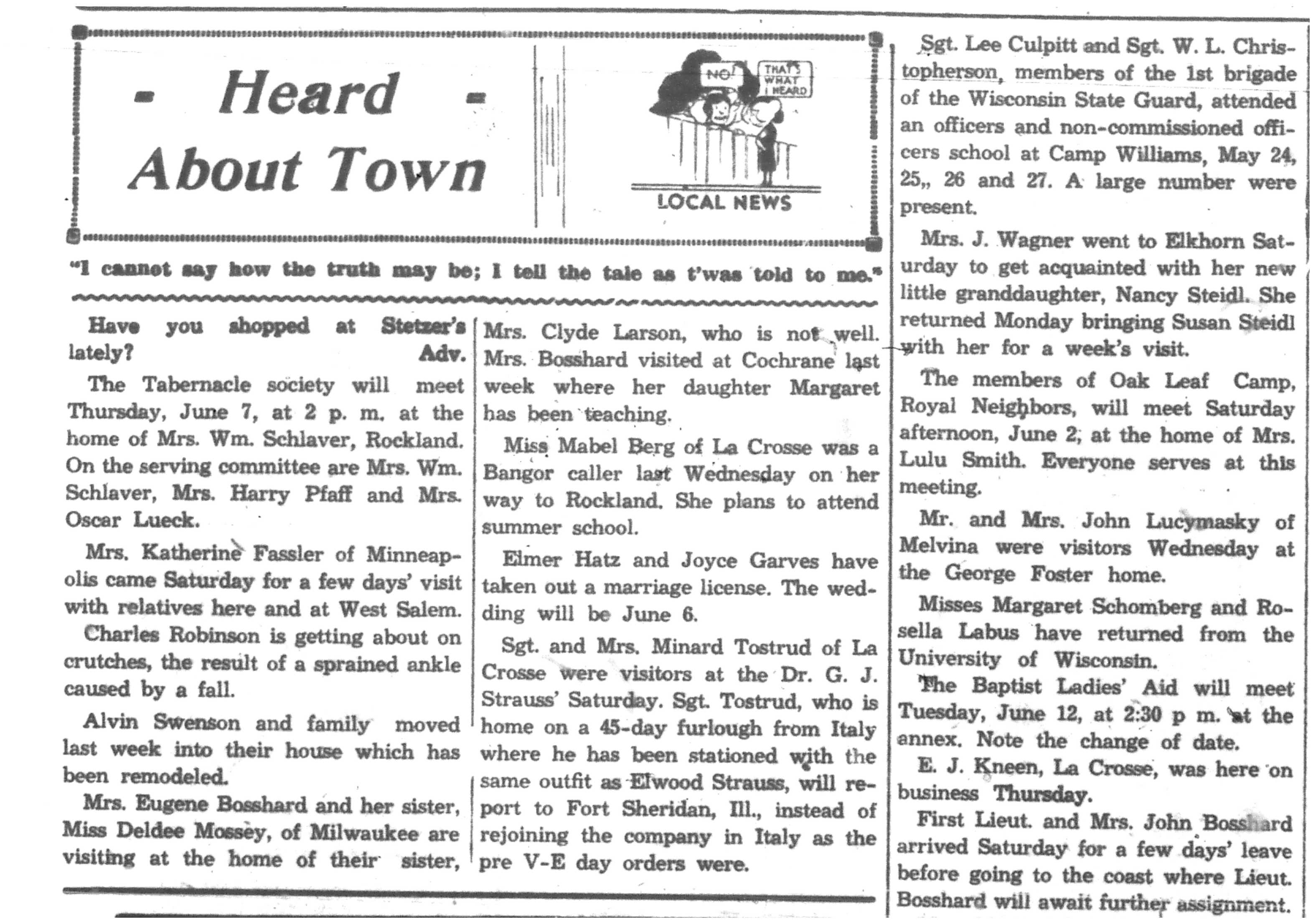 | 1945-5-31 | La Crosse Tribune p16 | |